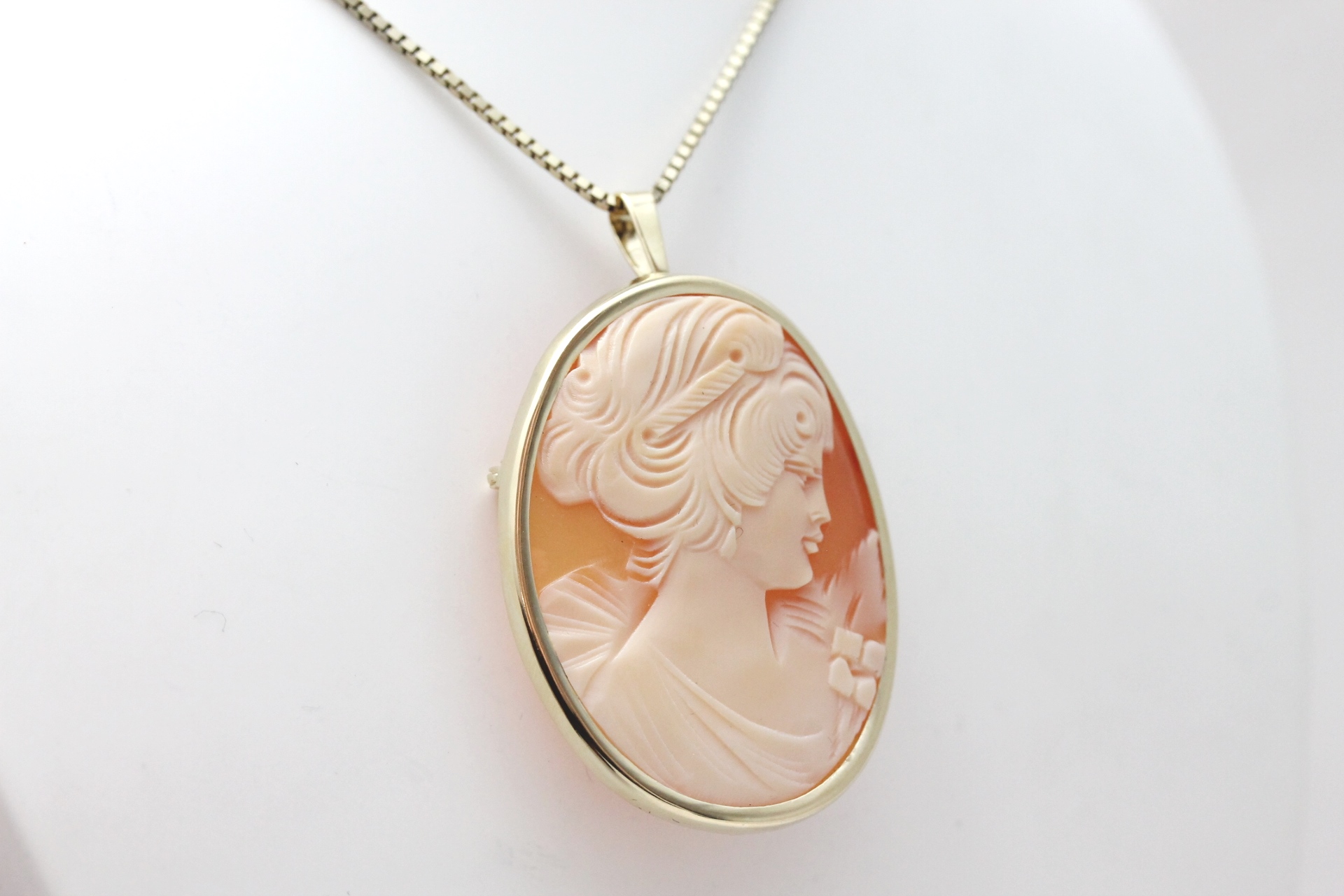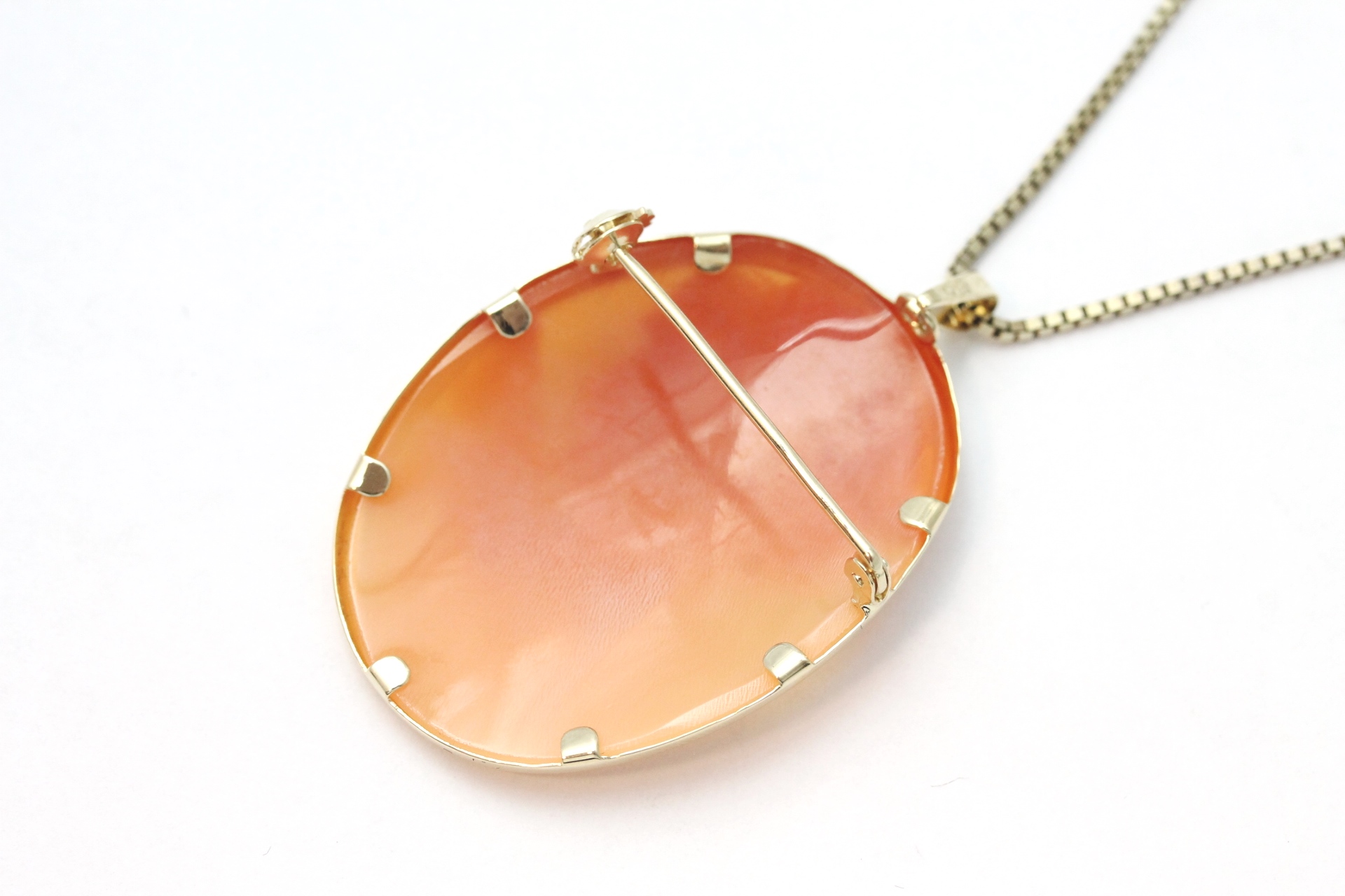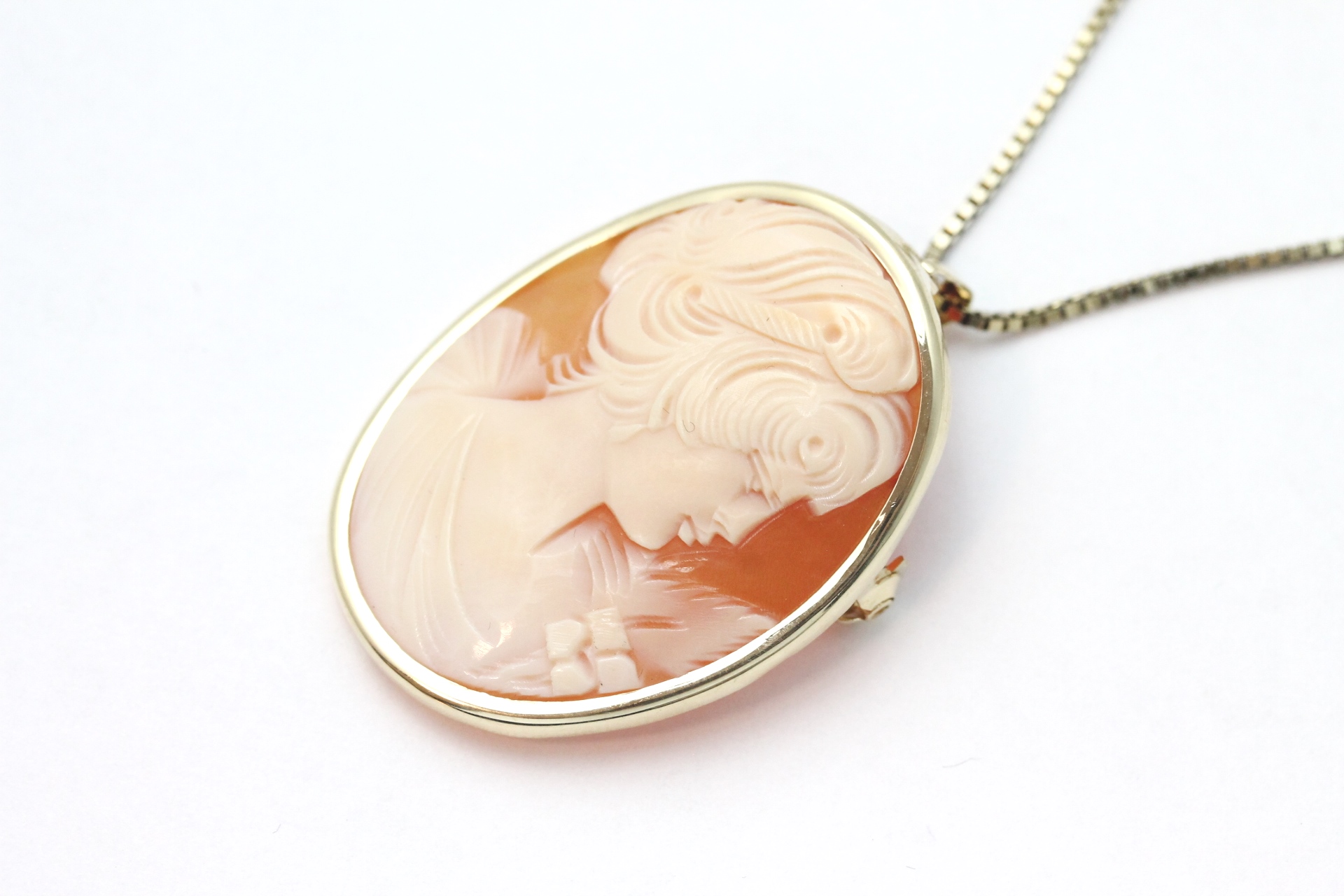 Anheng/brosje camè i gult gull