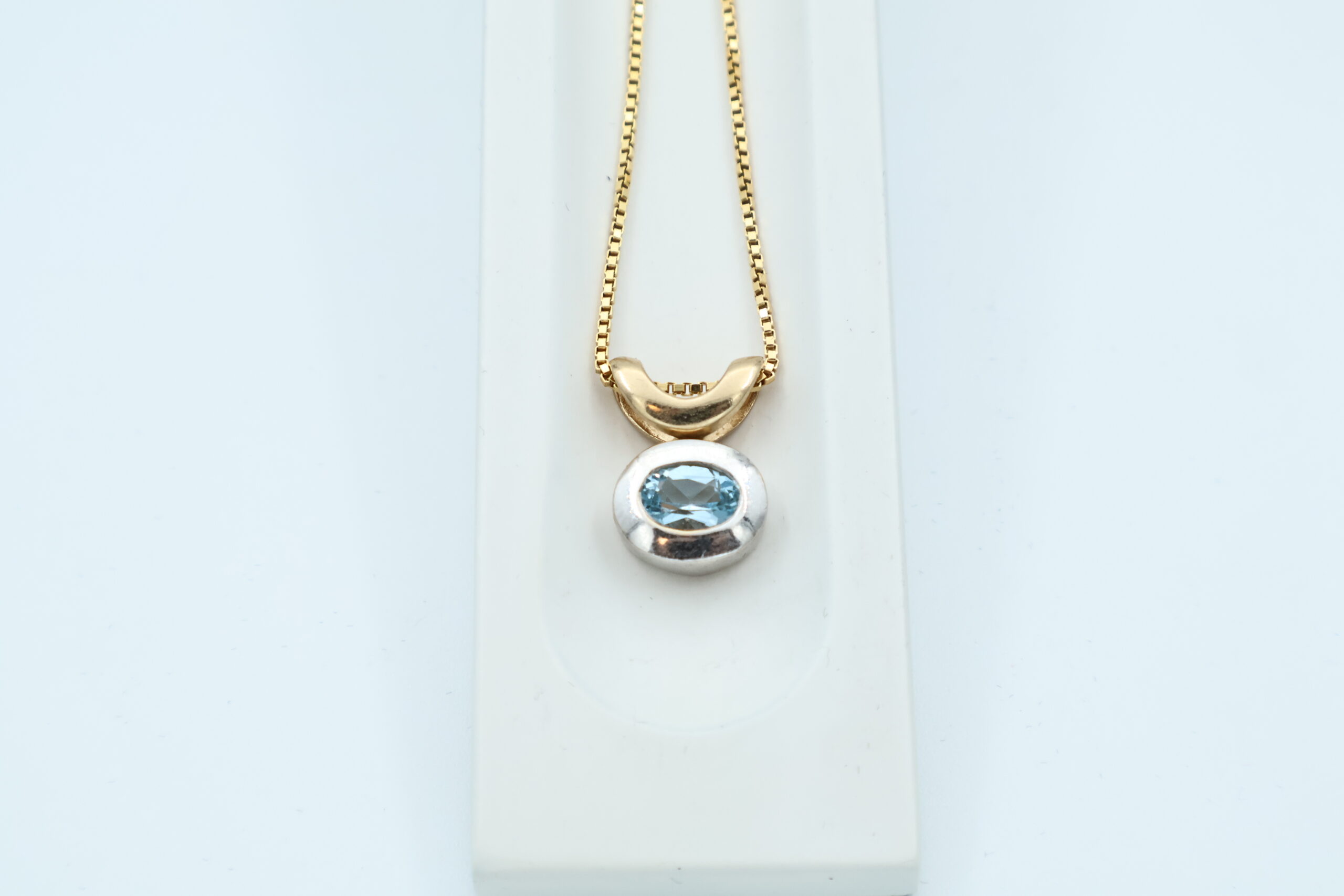Anheng i gult gull med blå stein