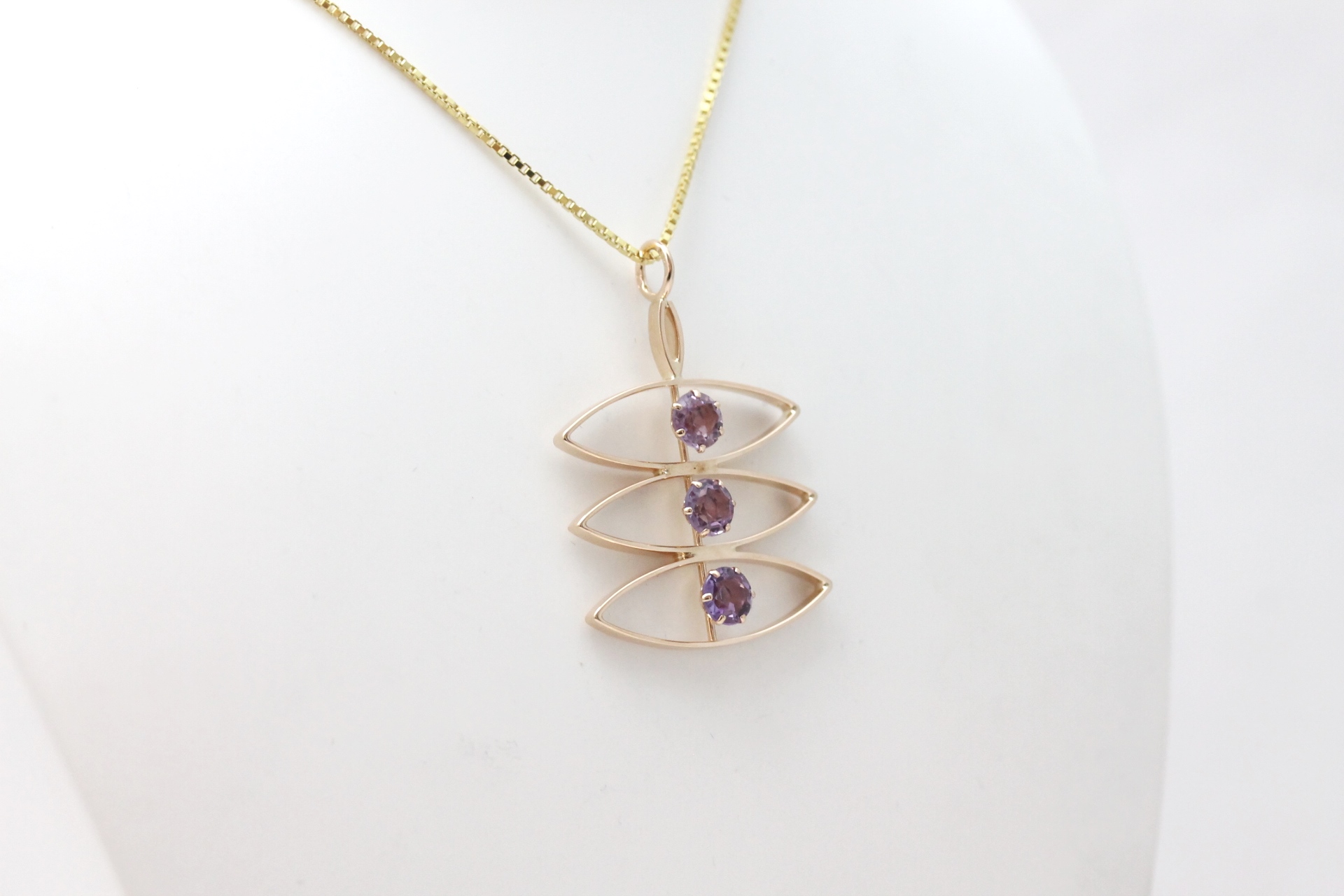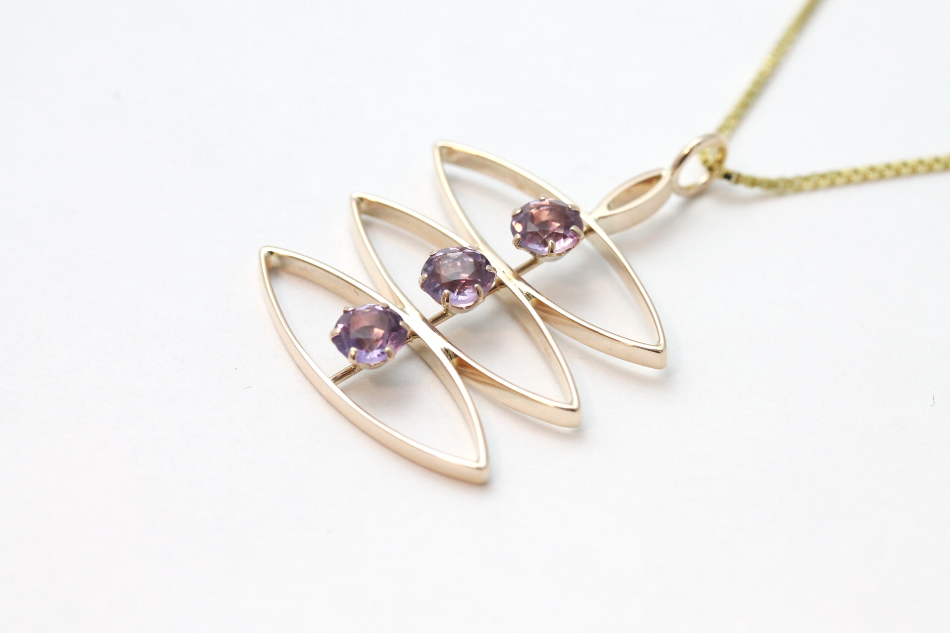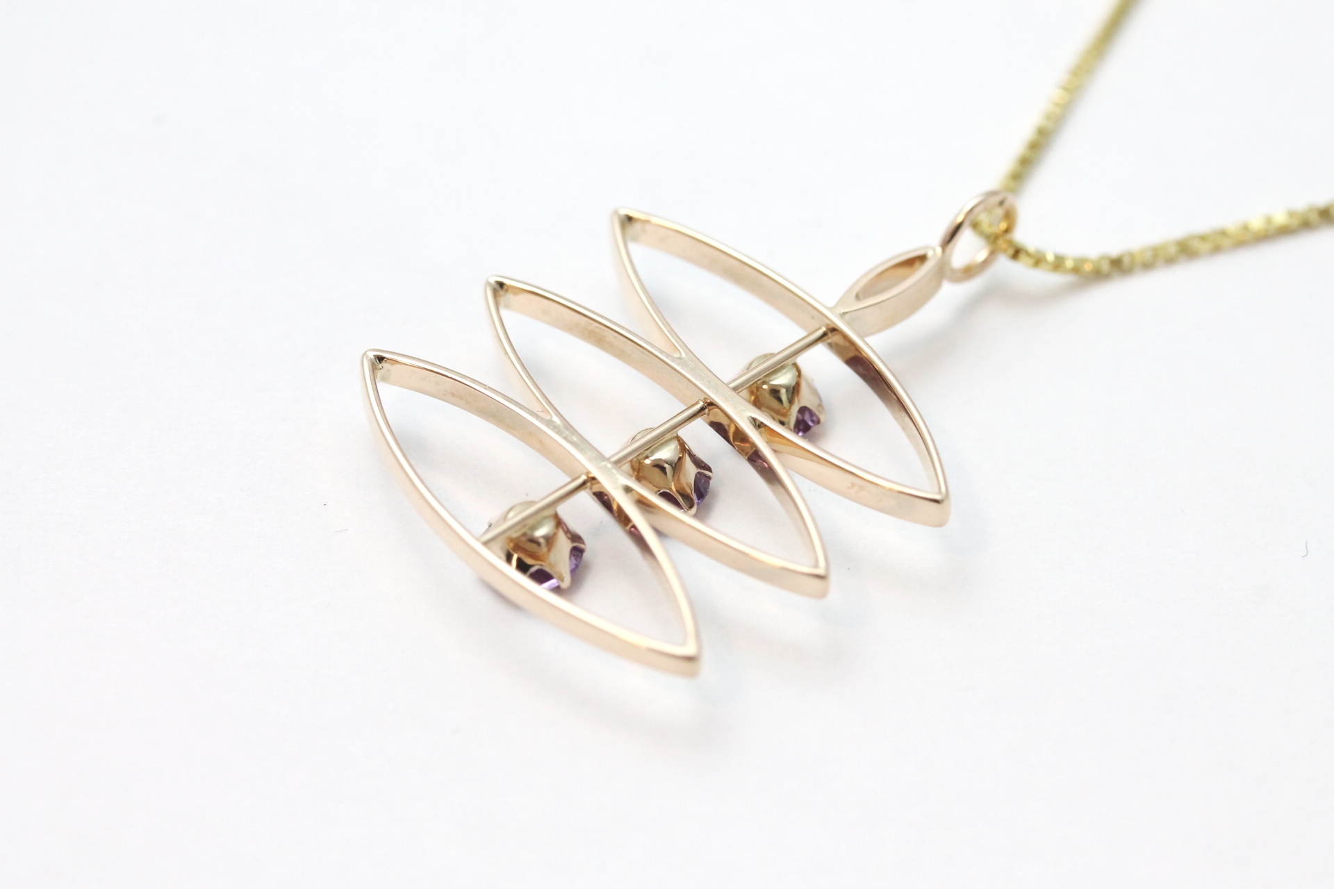 Anheng i gult gull med lilla stener