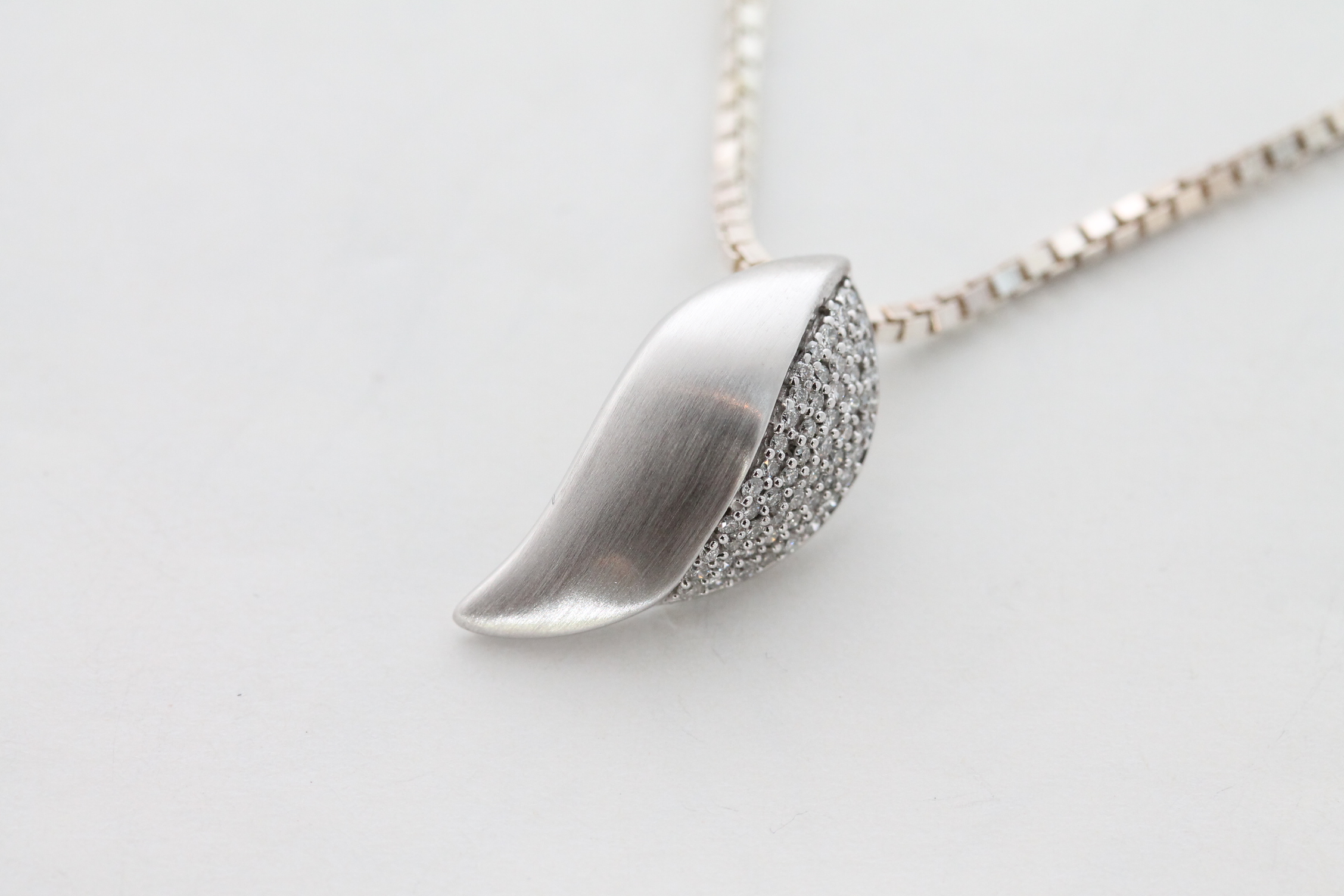 Anheng i hvitt gull med diamanter