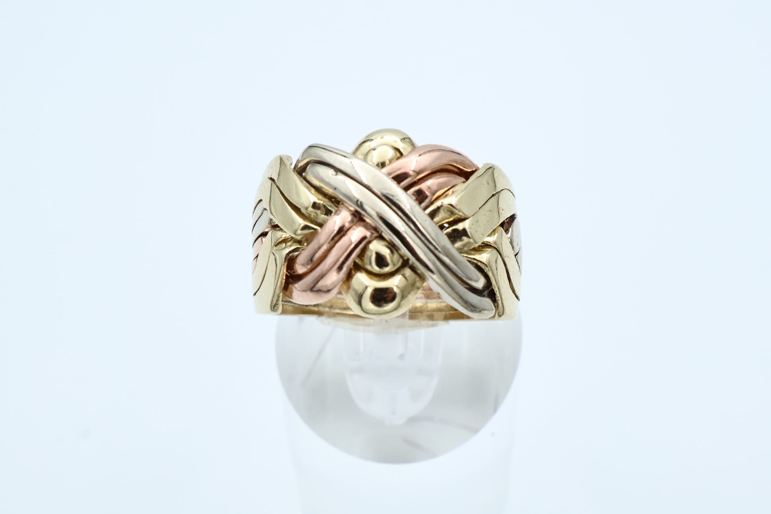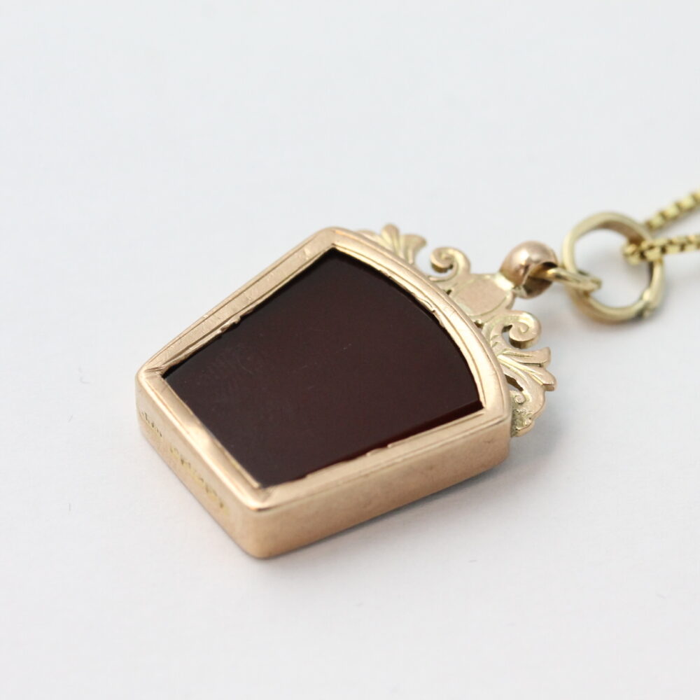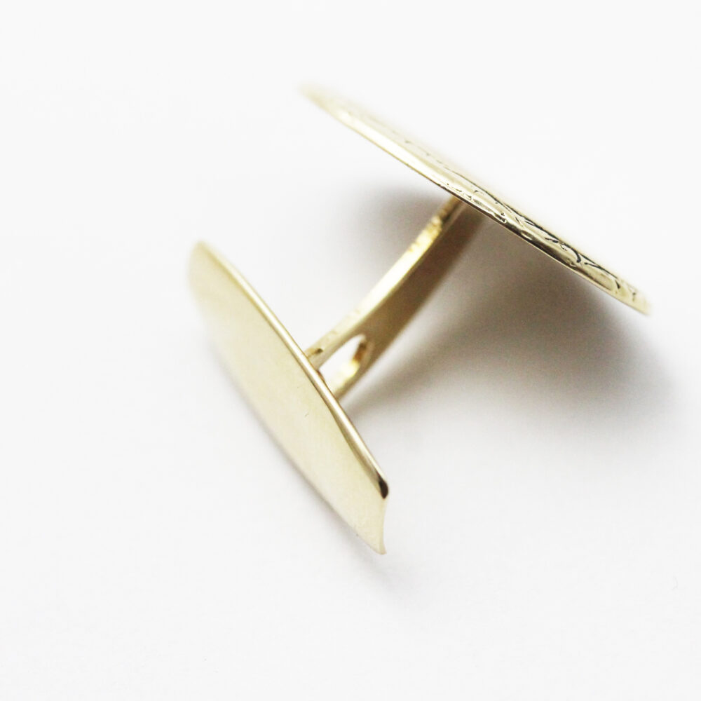 Ring i gult gull med hematitt 14kt gult gull største breddemål 12,12 mm totalvekt 4,41 gram dimensjoner sten 10,41×9,02 mm