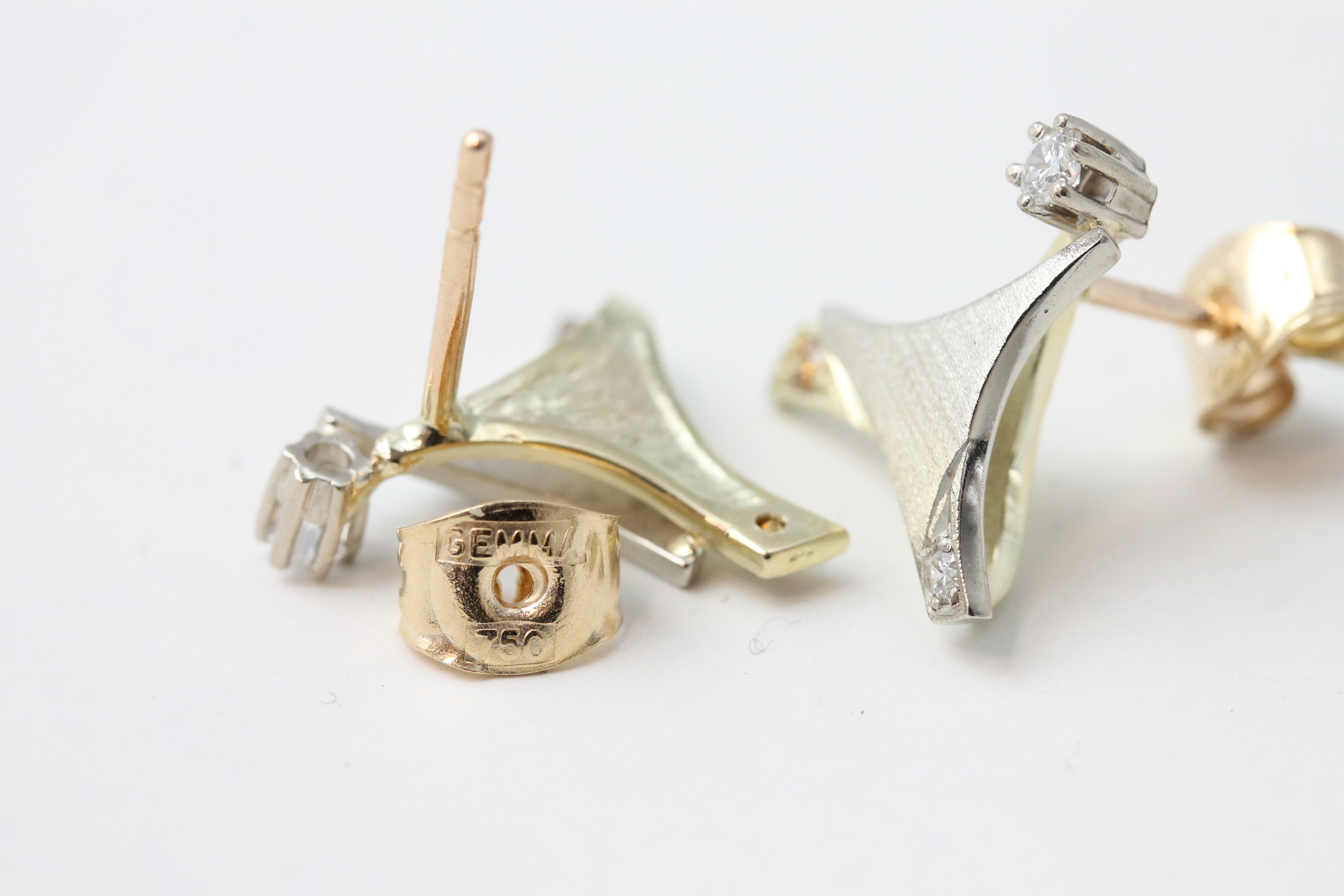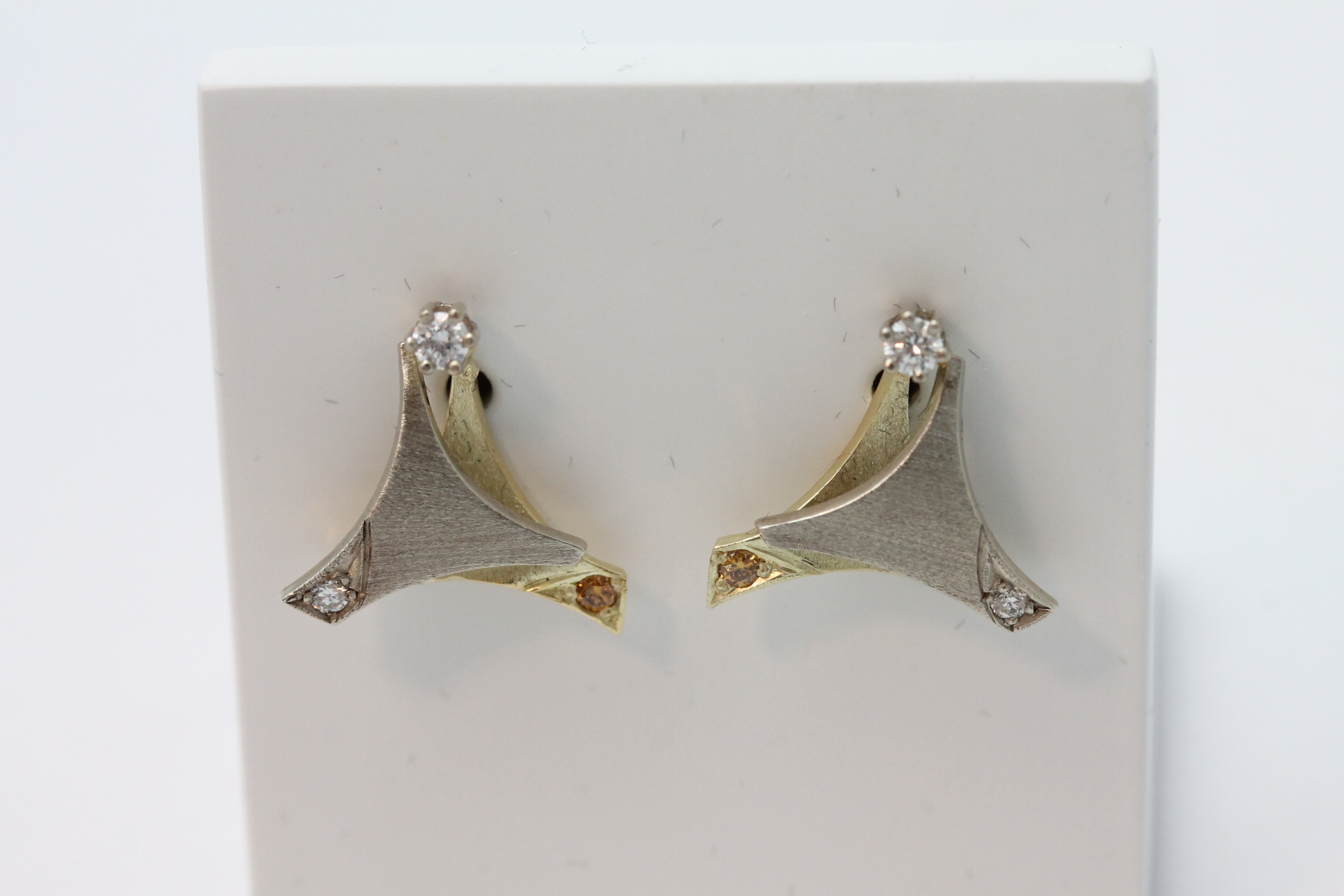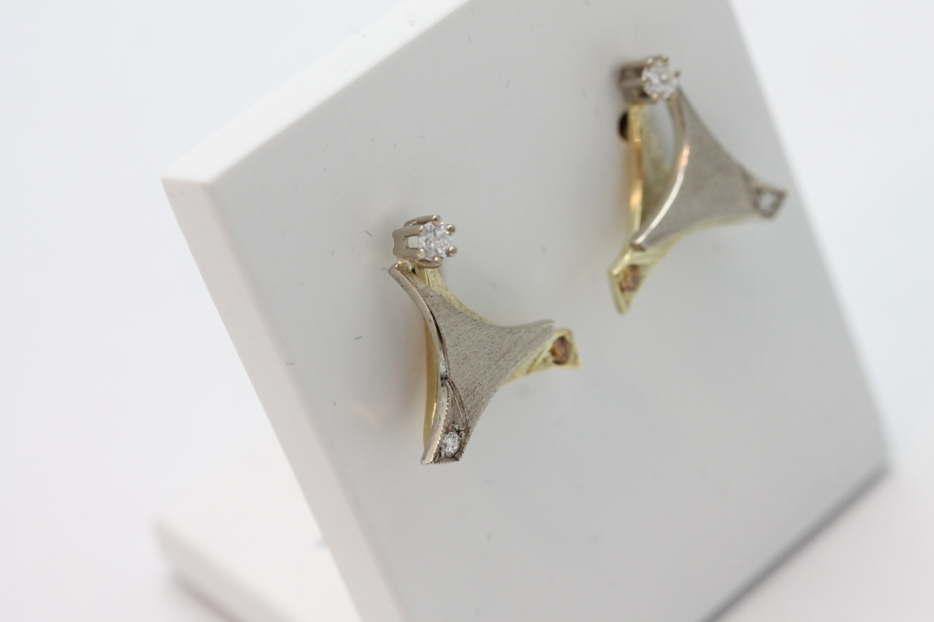Diamantørepynt i hvitt og gult gull