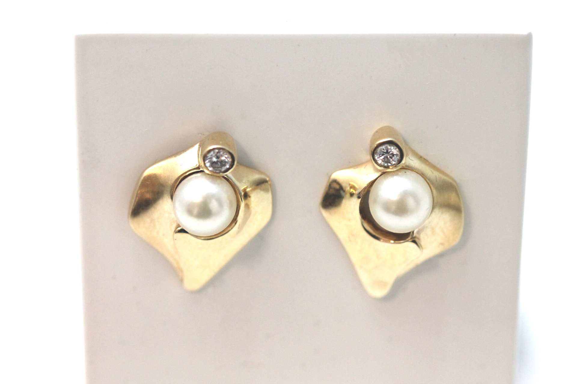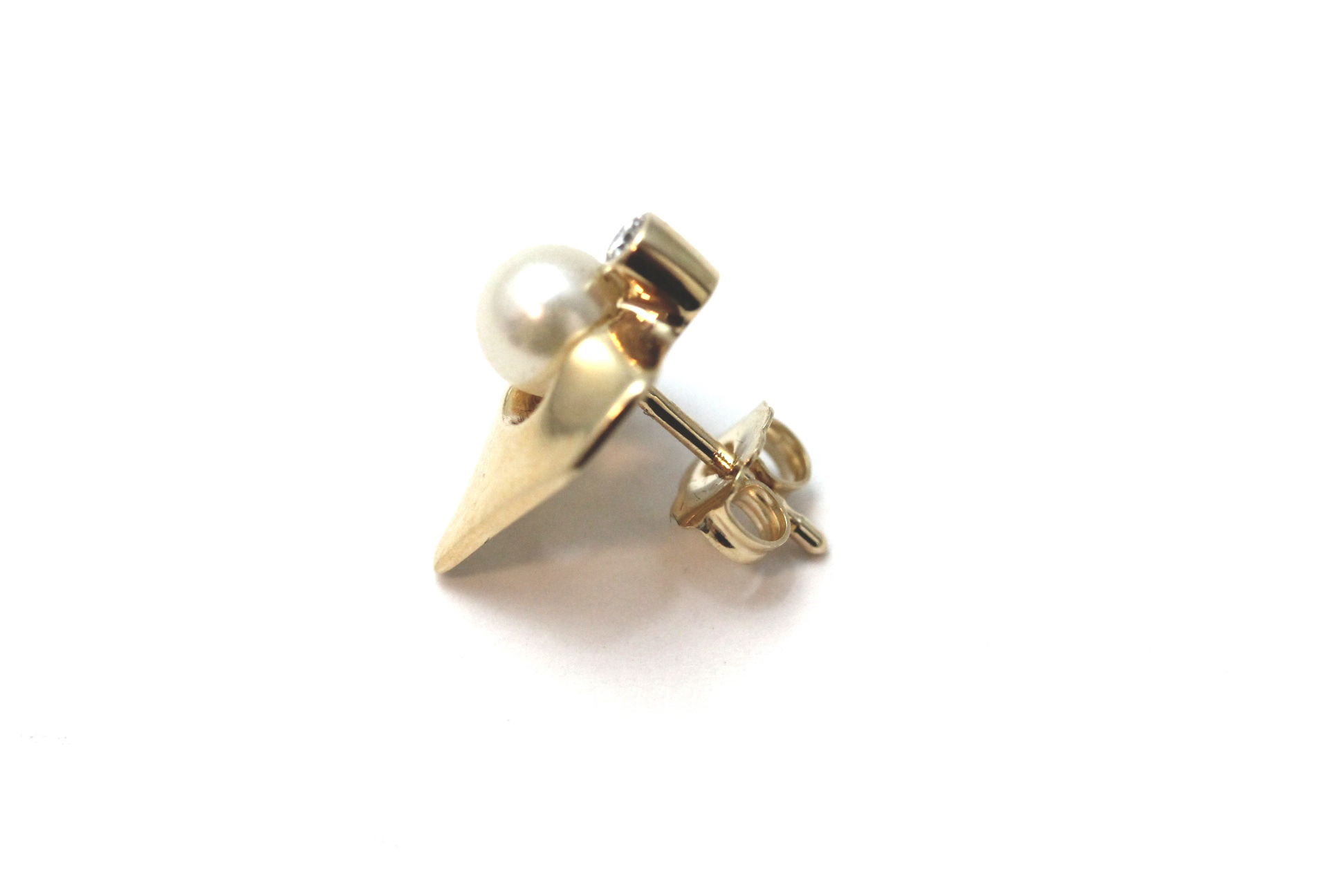 Ørepynt i gult gull med perle og diamant