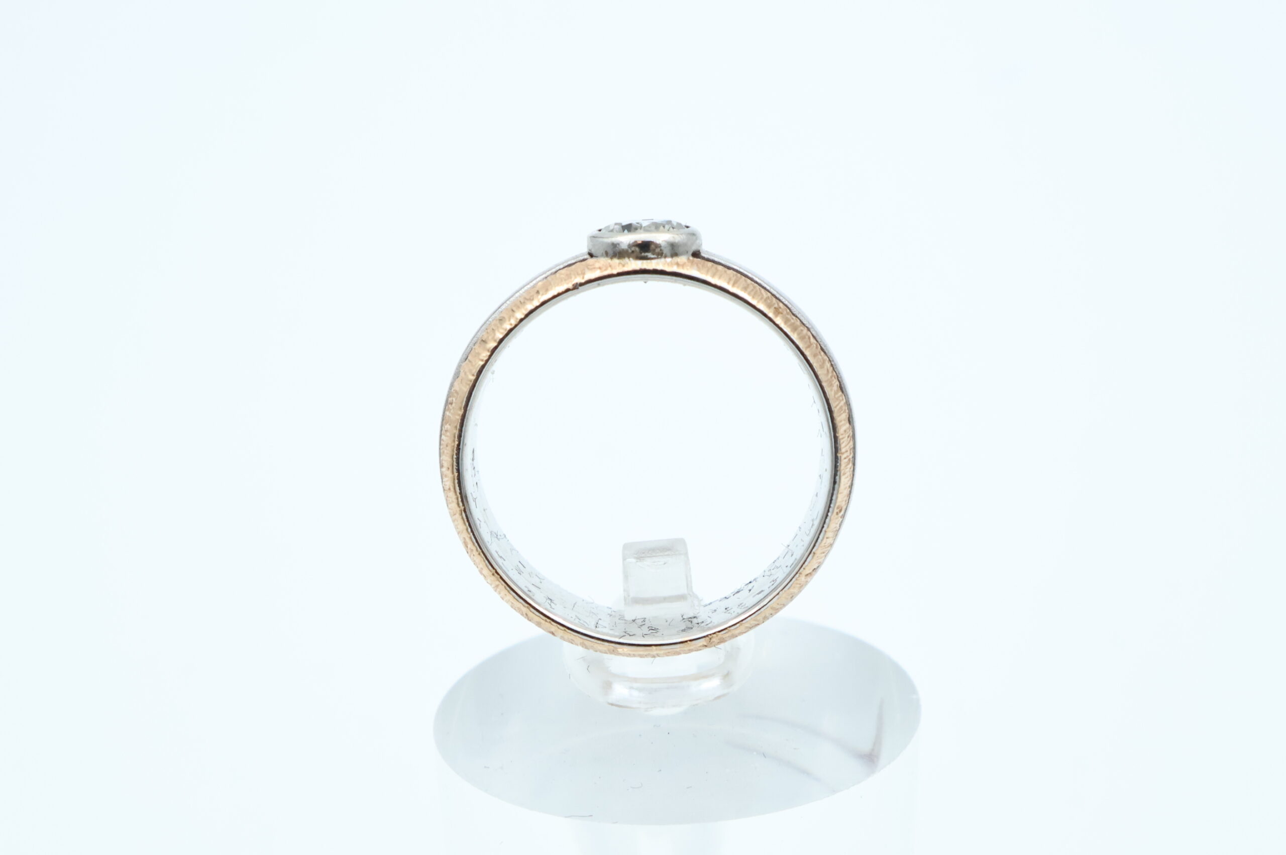 Ring i gult gull med diamanter 14kt gult gull største breddemål 16,61 mm totalvekt 3,09 gram estimert 0.03ct fordelt på