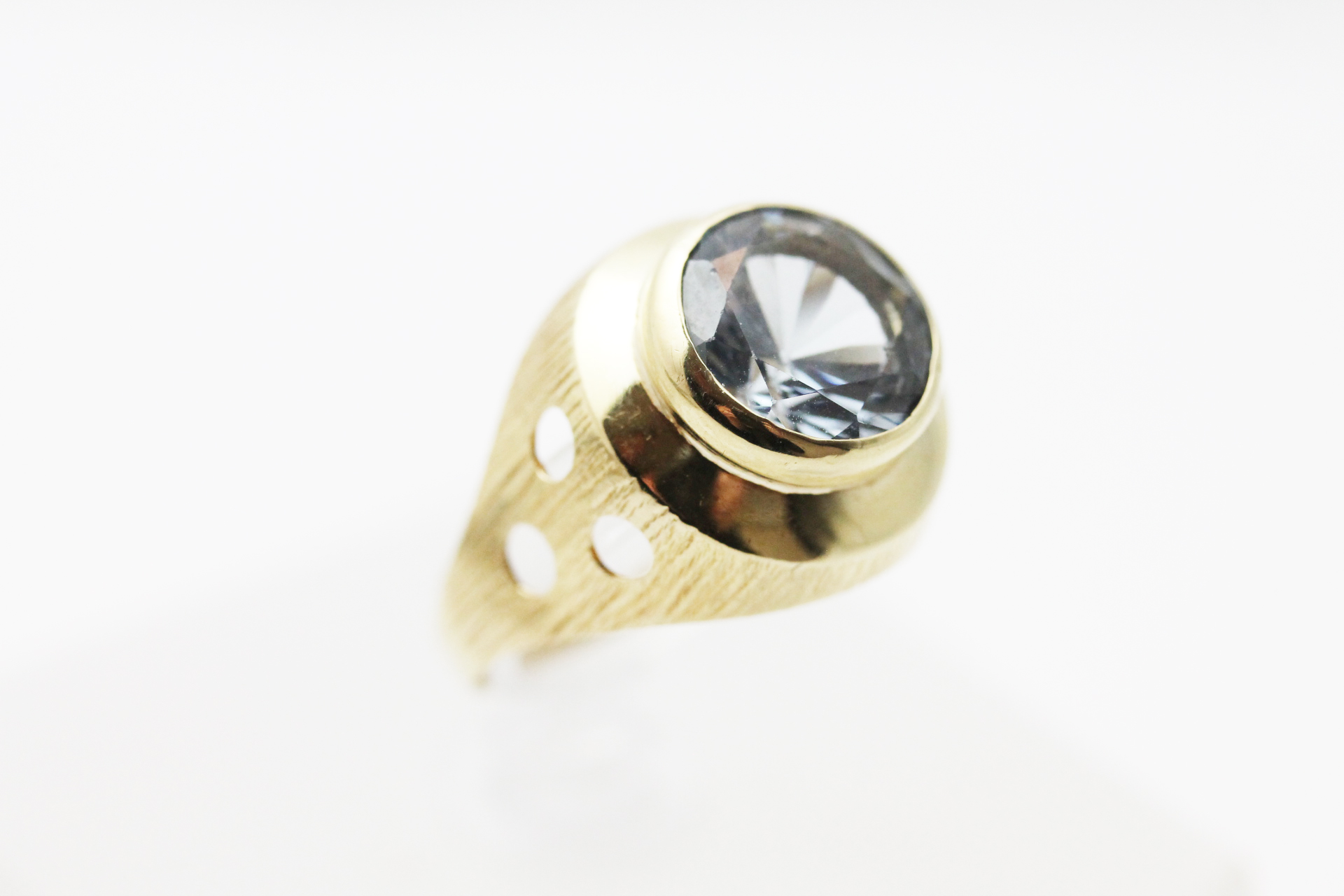 Ring i hvitt gull med diamant 14kt hvitt gull største breddemål 5,1 mm totalvekt 2,07 gram estimert diamantvekt 0.16ct estimert