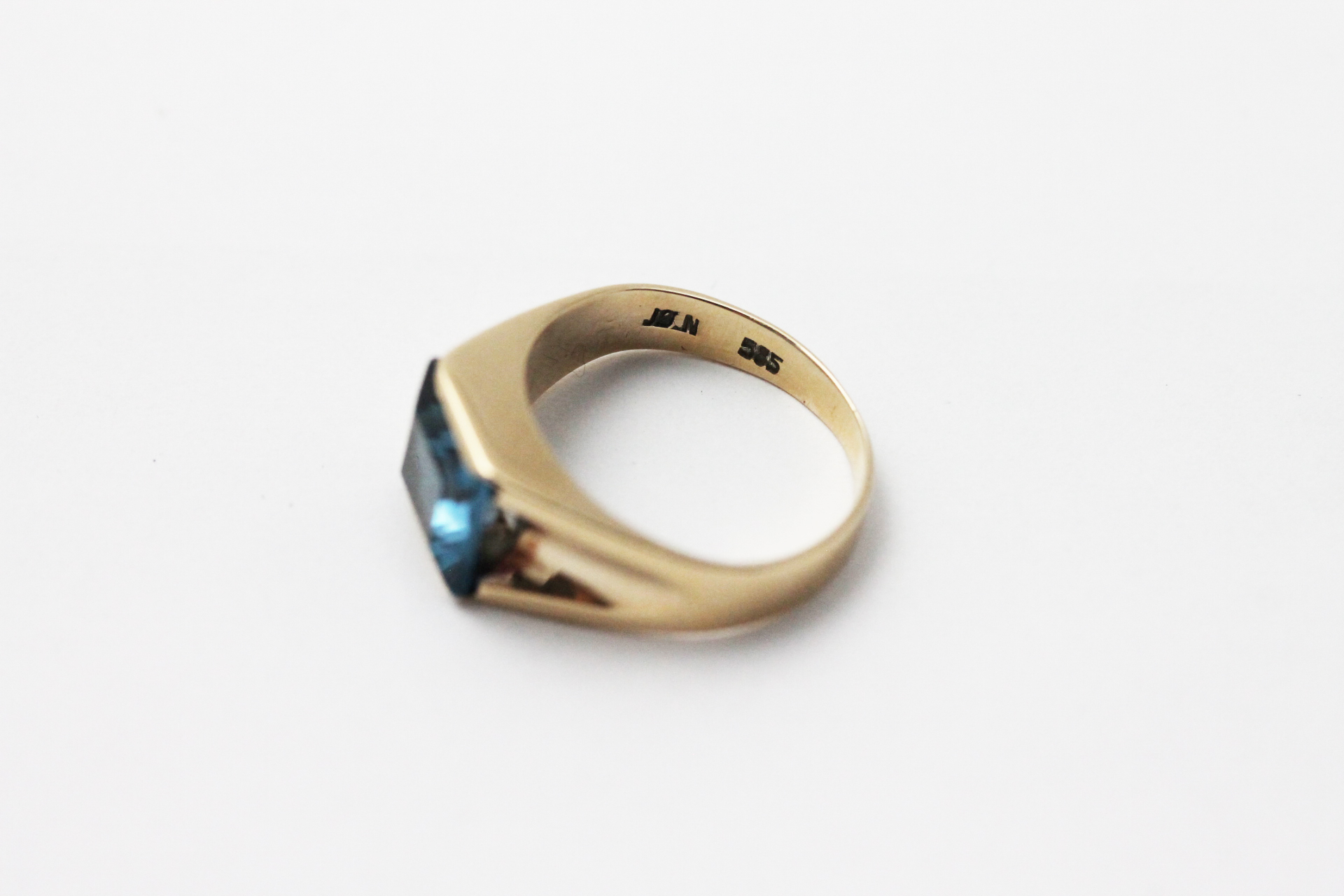 Ring i gult gull med diamant 14kt gult gull Glenn Jordheim, Lillestrøm største breddemål 7,24 mm totalvekt 3,20 gram estimert