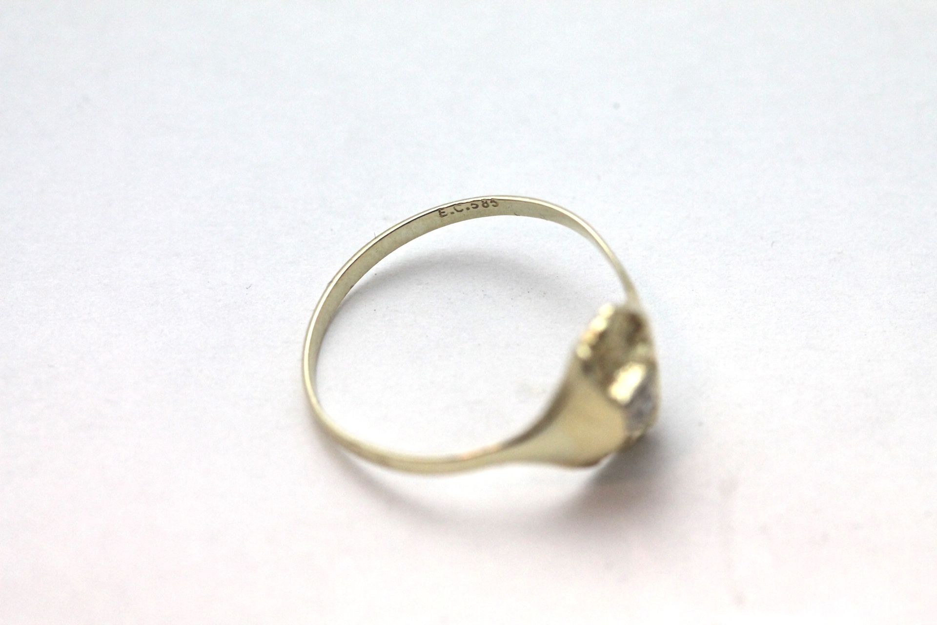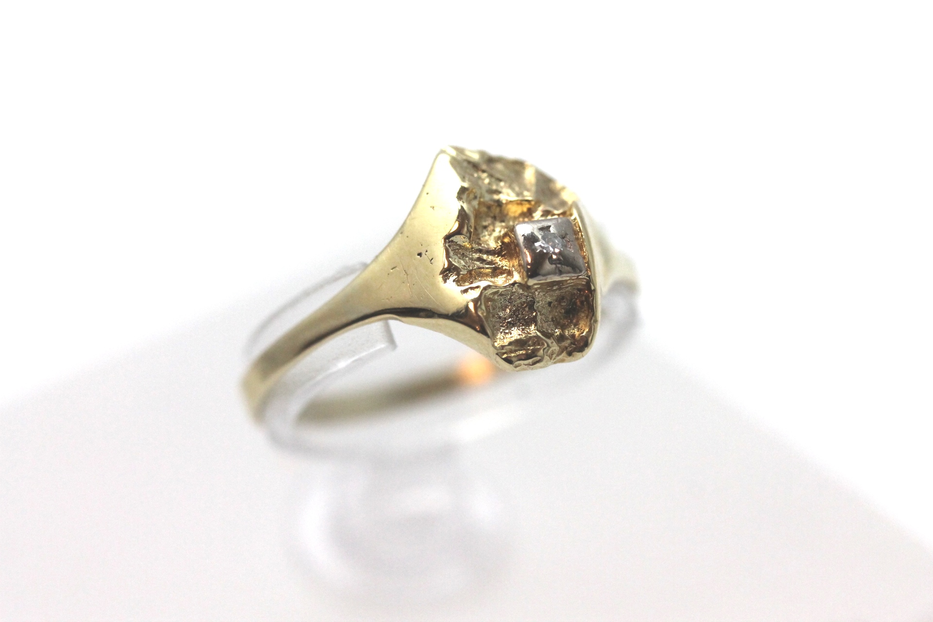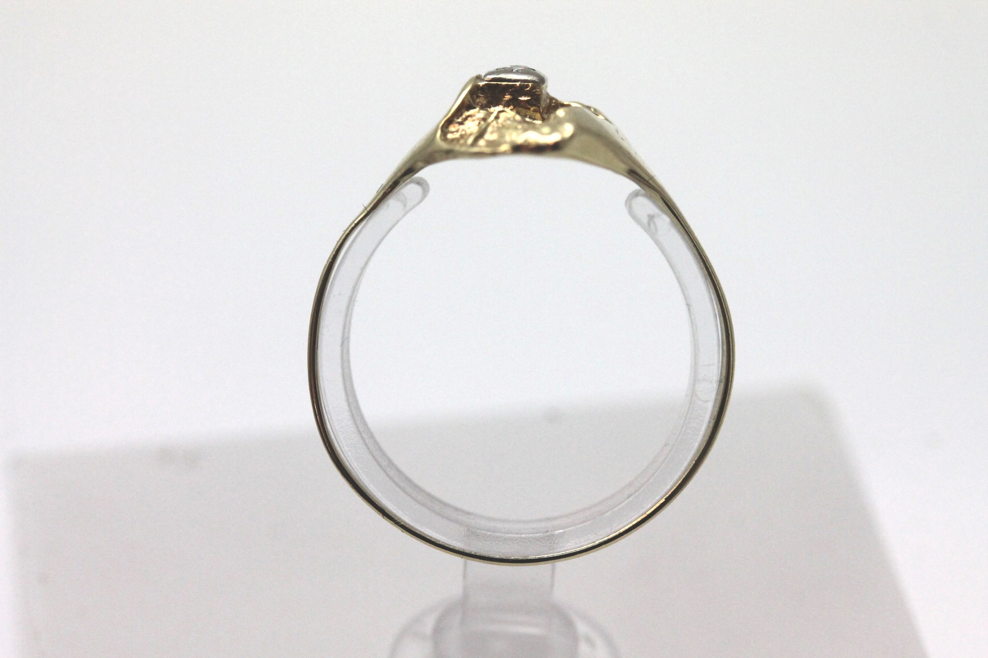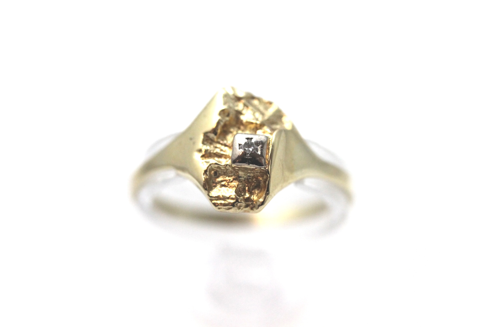 Ring i gult gull med diamant 14kt gult gull Glenn Jordheim, Lillestrøm største breddemål 7,24 mm totalvekt 3,20 gram estimert