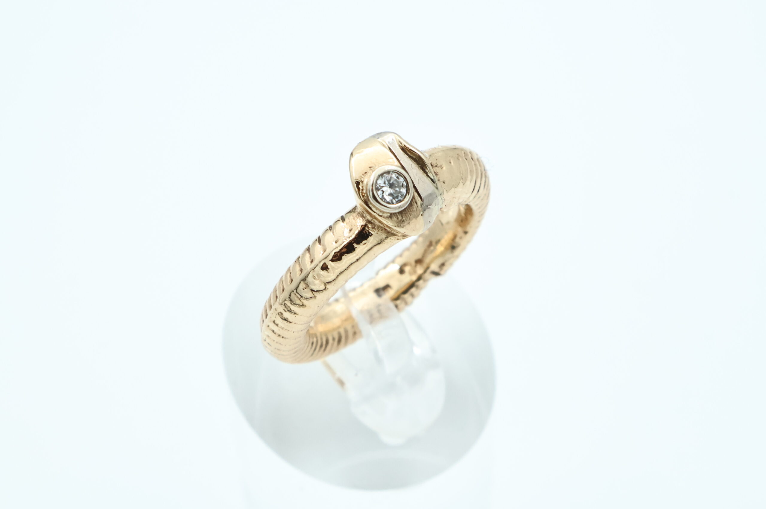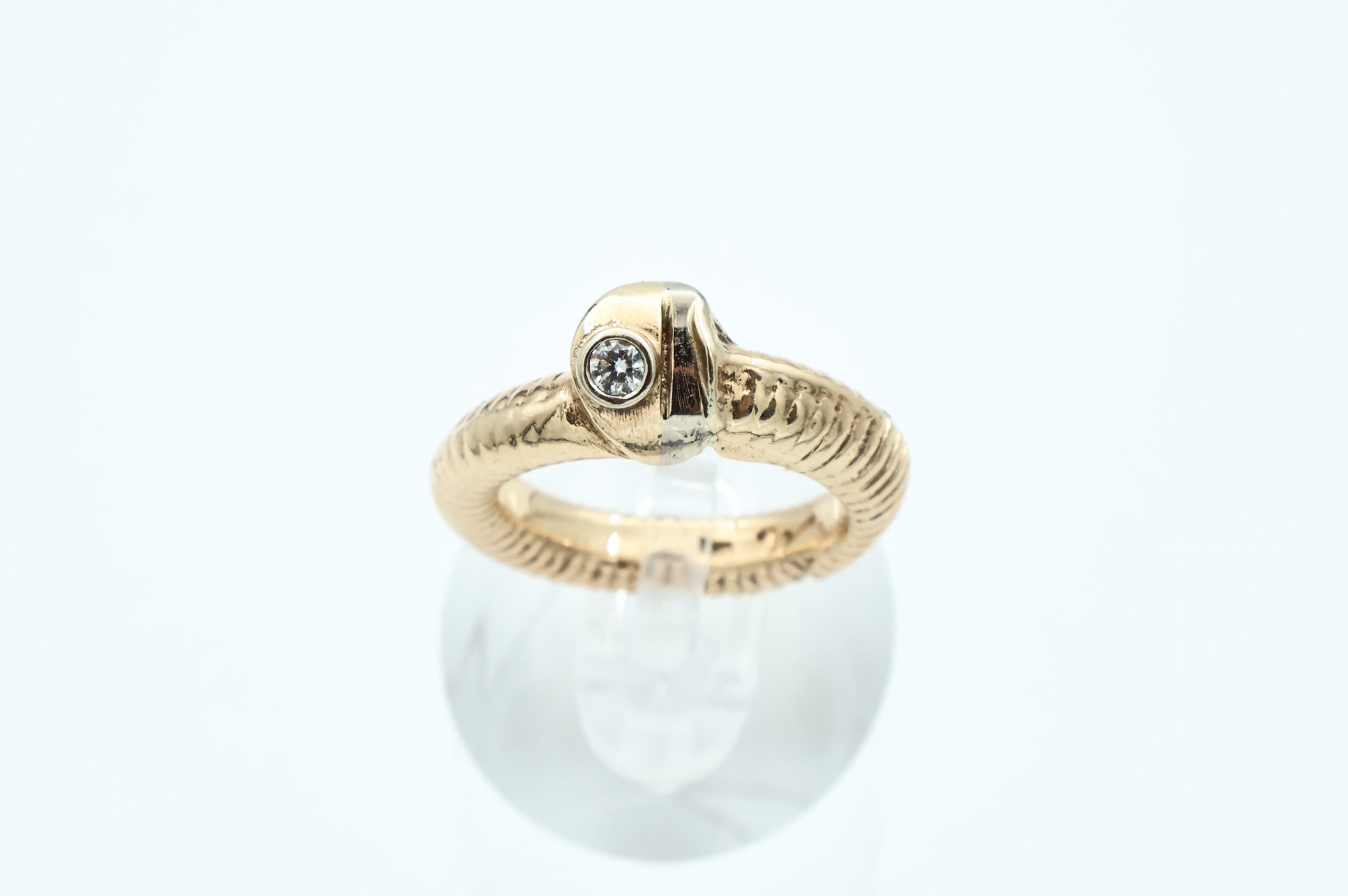 Ring i hvitt gull med diamant 14kt hvitt gull største breddemål 5,1 mm totalvekt 2,07 gram estimert diamantvekt 0.16ct estimert