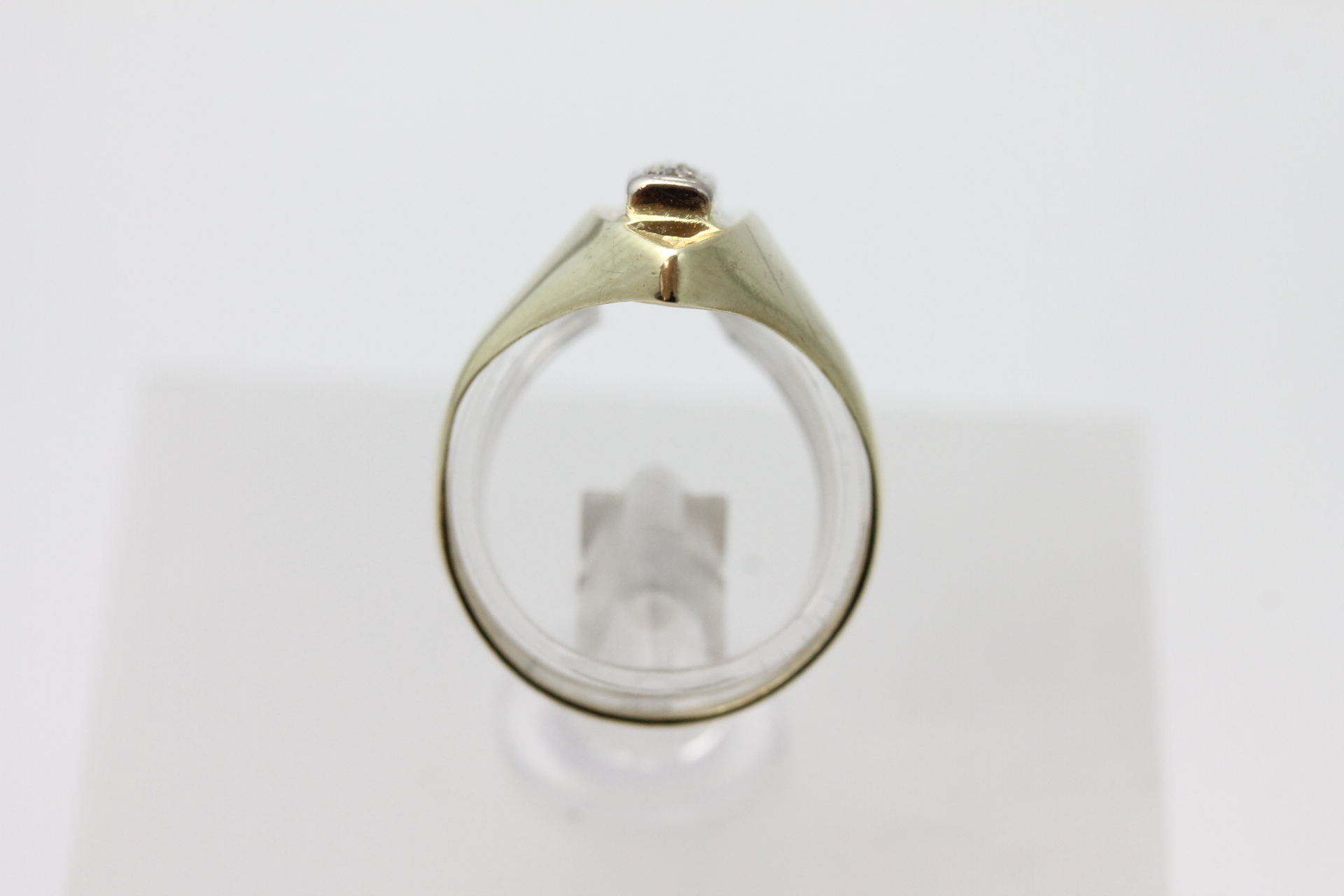 Ring i gult gull med diamant 14kt gult gull Glenn Jordheim, Lillestrøm største breddemål 7,24 mm totalvekt 3,20 gram estimert