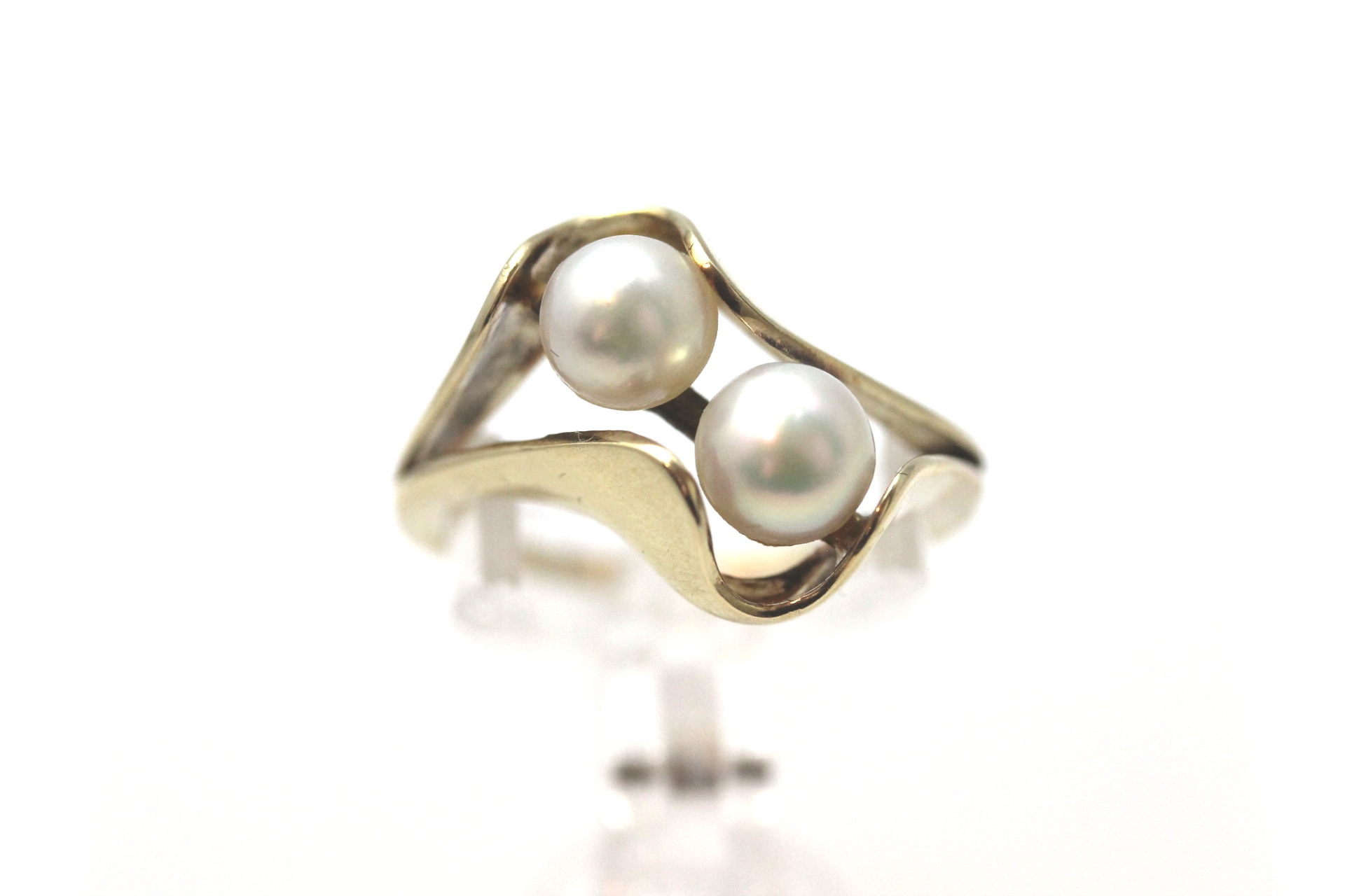 Ring i hvitt gull med diamanter og sydhavsperle 14kt hvitt gull design Hammer & Søhne, Tyskland totalvekt 4,6 gram estimert