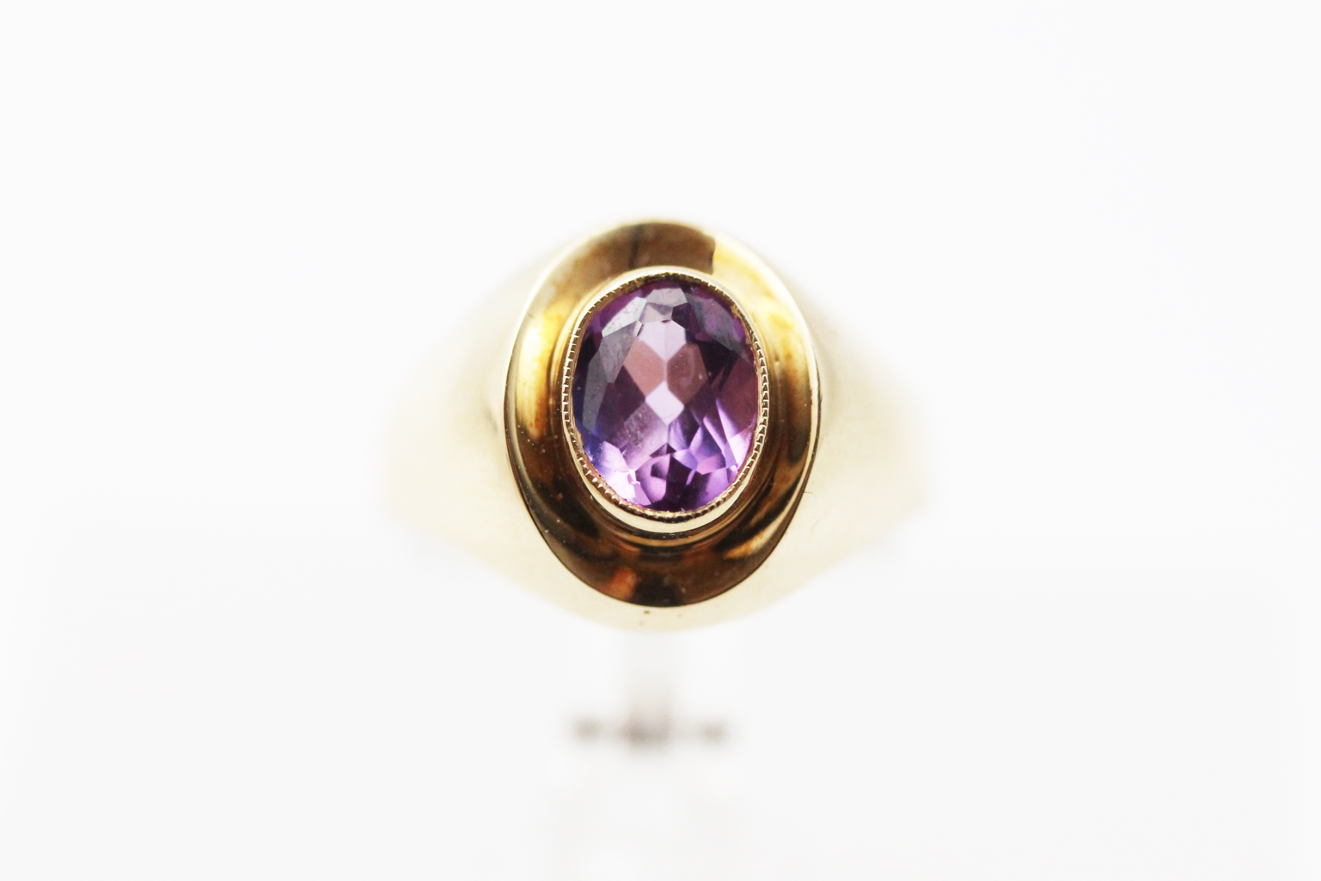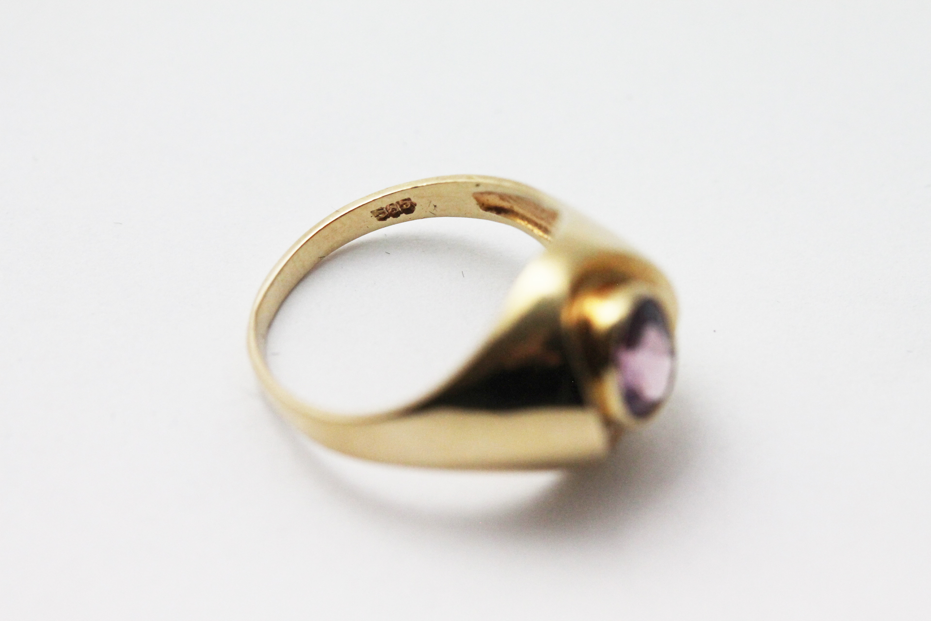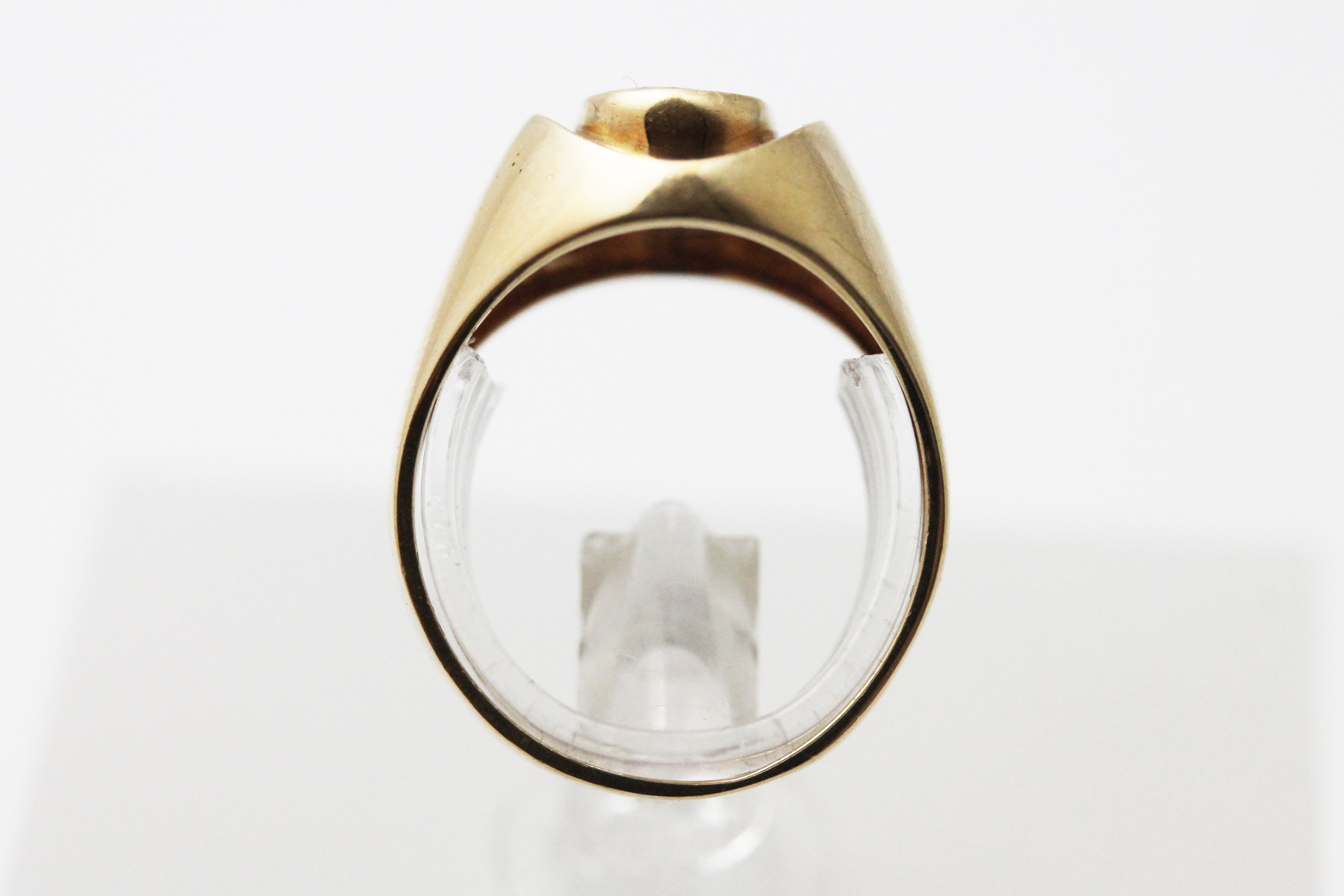 Ring i flerfarget gull med diamant 14kt gult, rødt og hvitt gull største breddemål 6,10 mm totalvekt 3,08 gram estimert