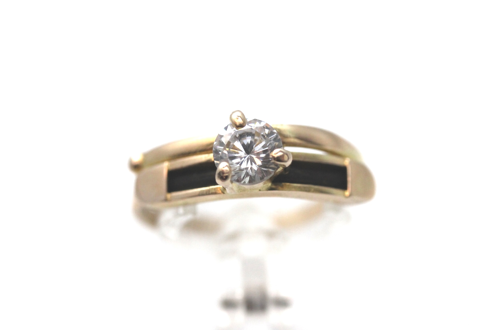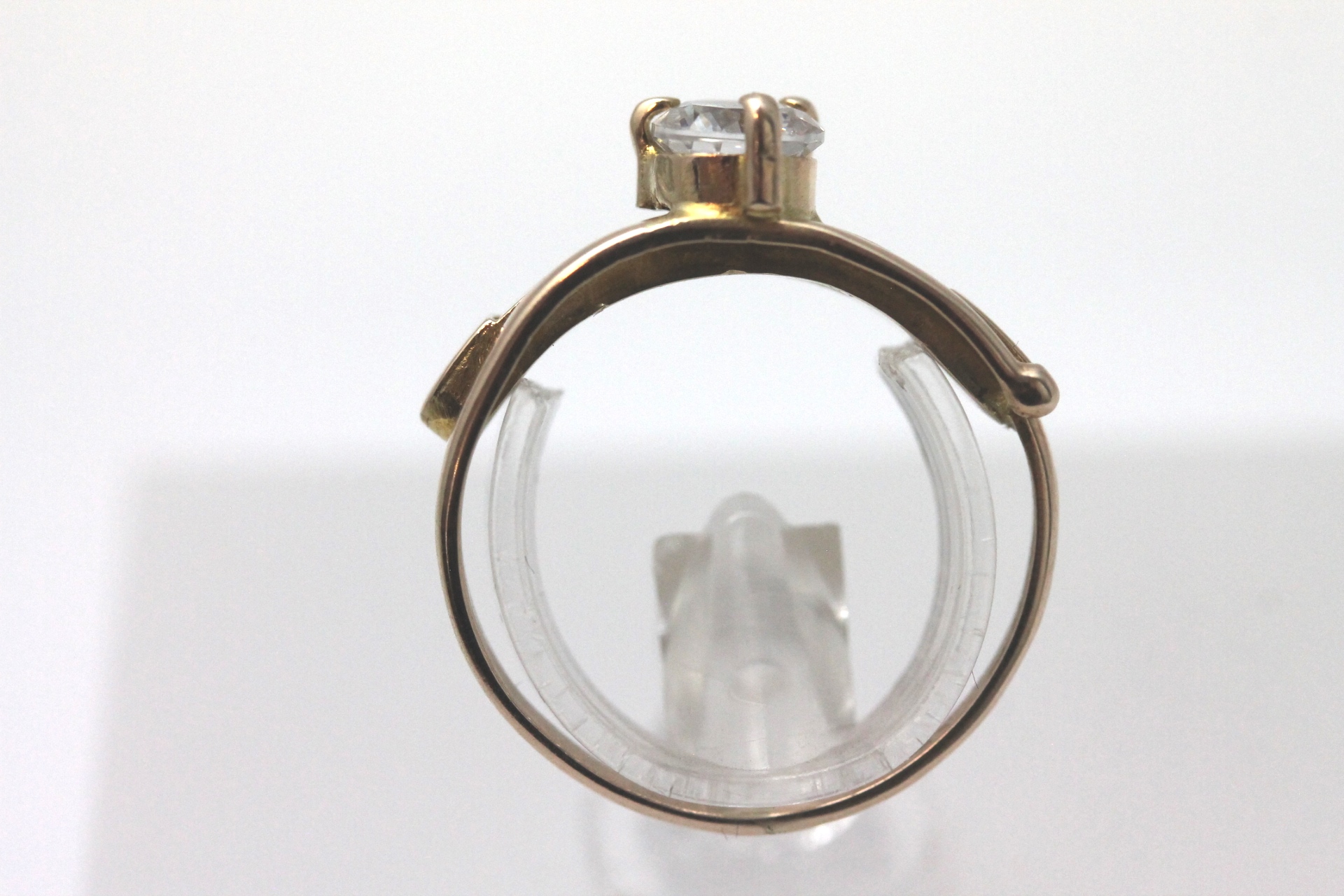 Ring i flerfarget gull med diamant 14kt gult, rødt og hvitt gull største breddemål 6,10 mm totalvekt 3,08 gram estimert