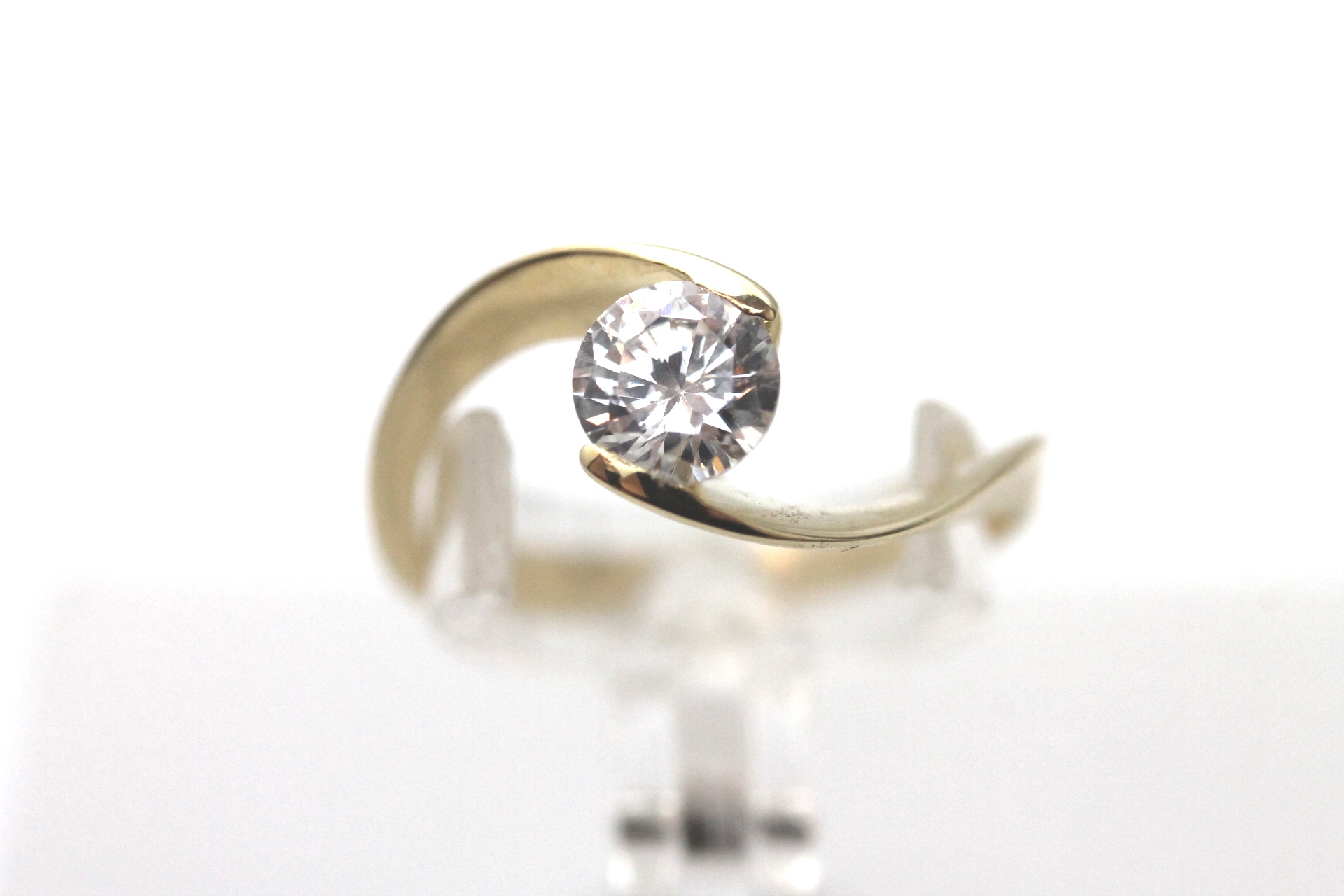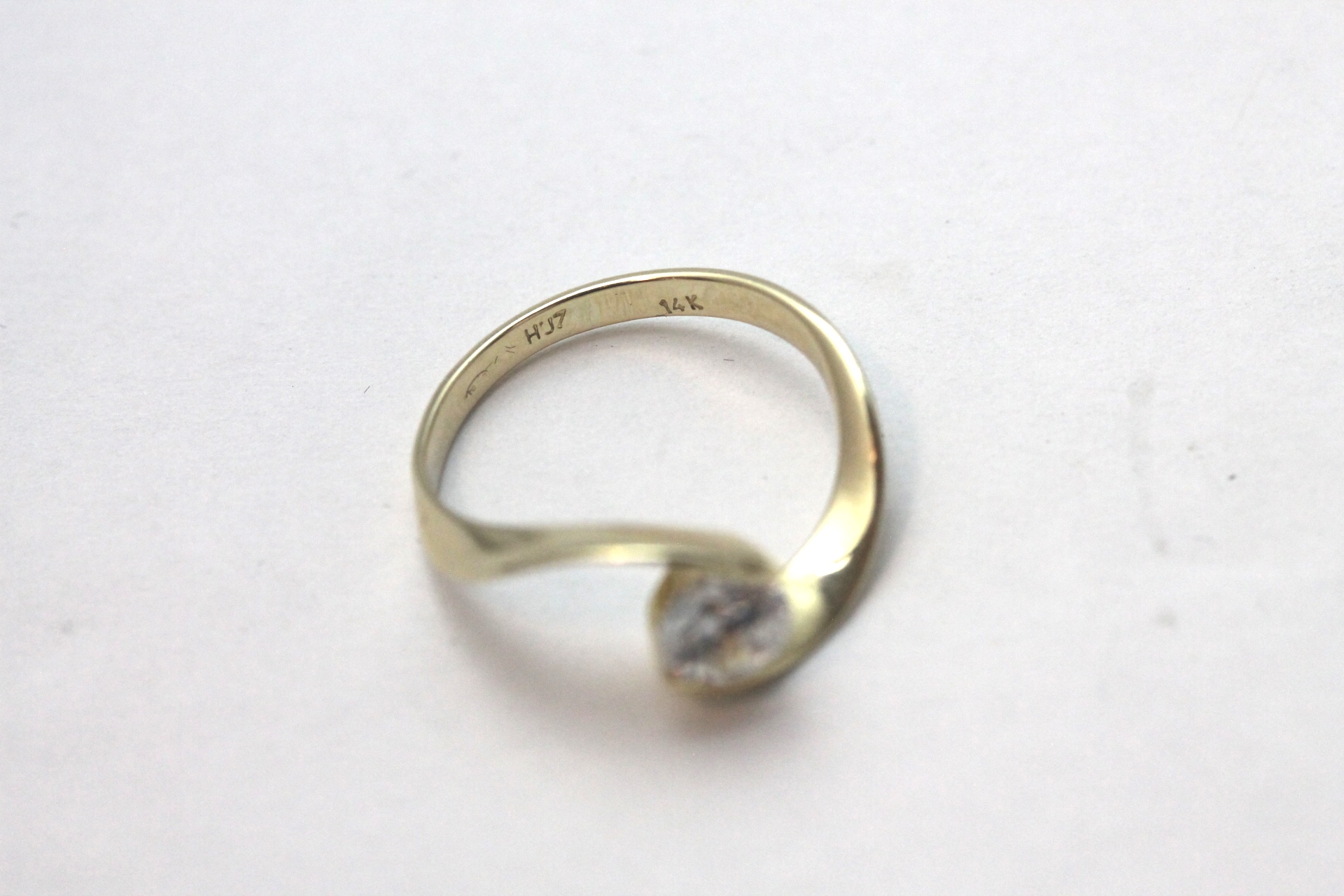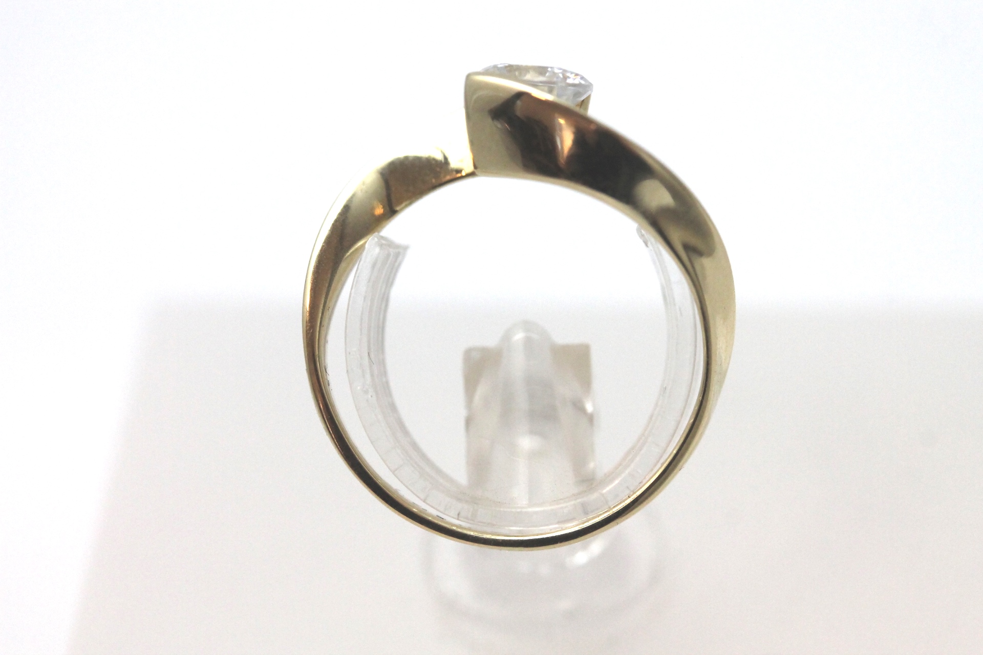 Ring i gult gull med diamanter 14kt gult gull største breddemål 16,61 mm totalvekt 3,09 gram estimert 0.03ct fordelt på