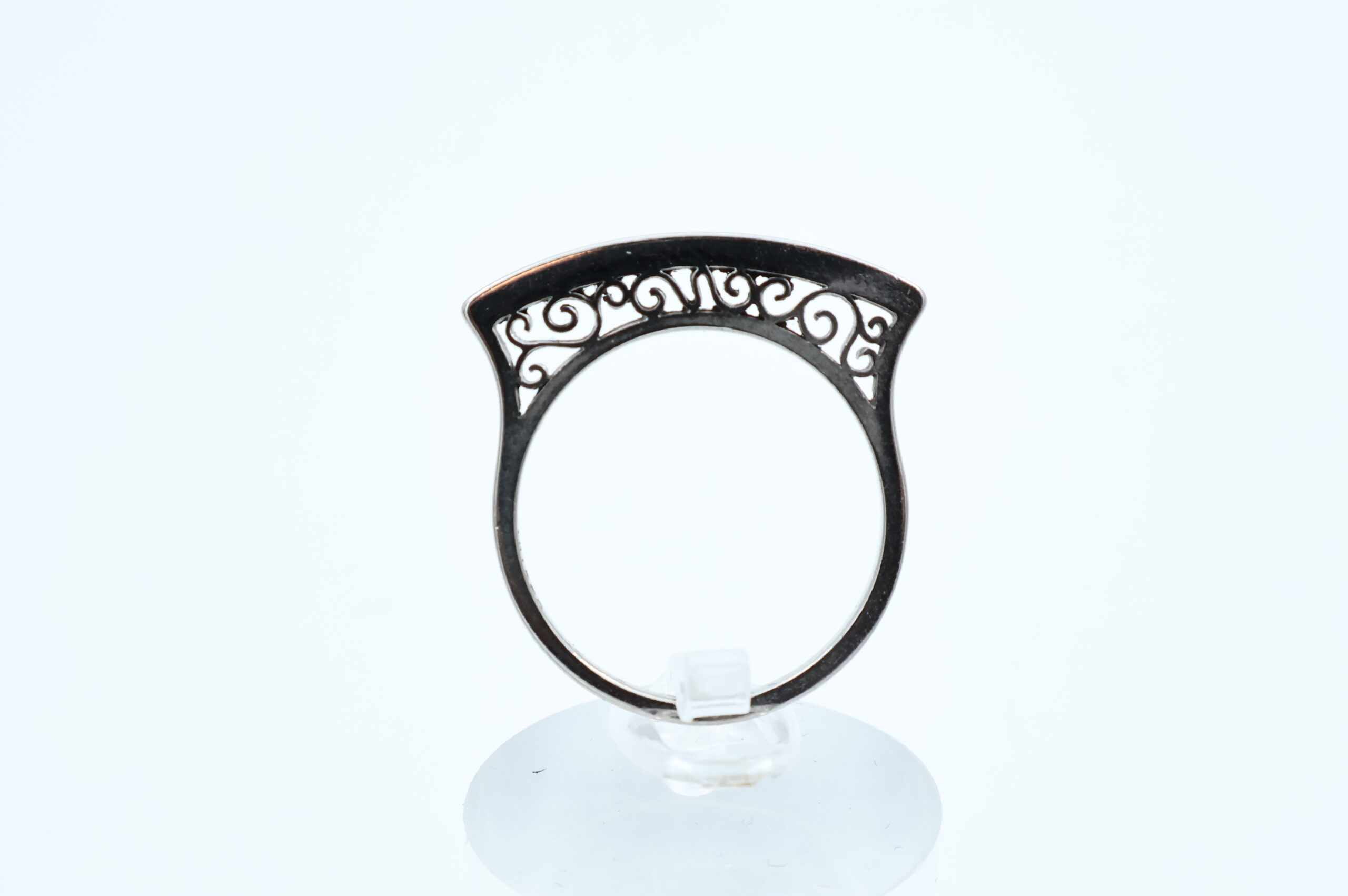 Ring i hvitt gull med diamanter 14kt hvitt gull Ivar T. Holth AS, Oslo største breddemål 14,4 mm totalvekt 2,9