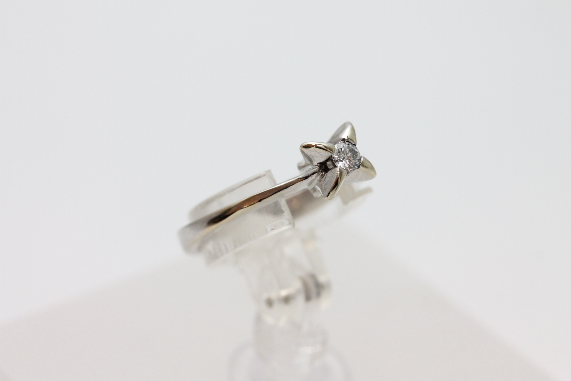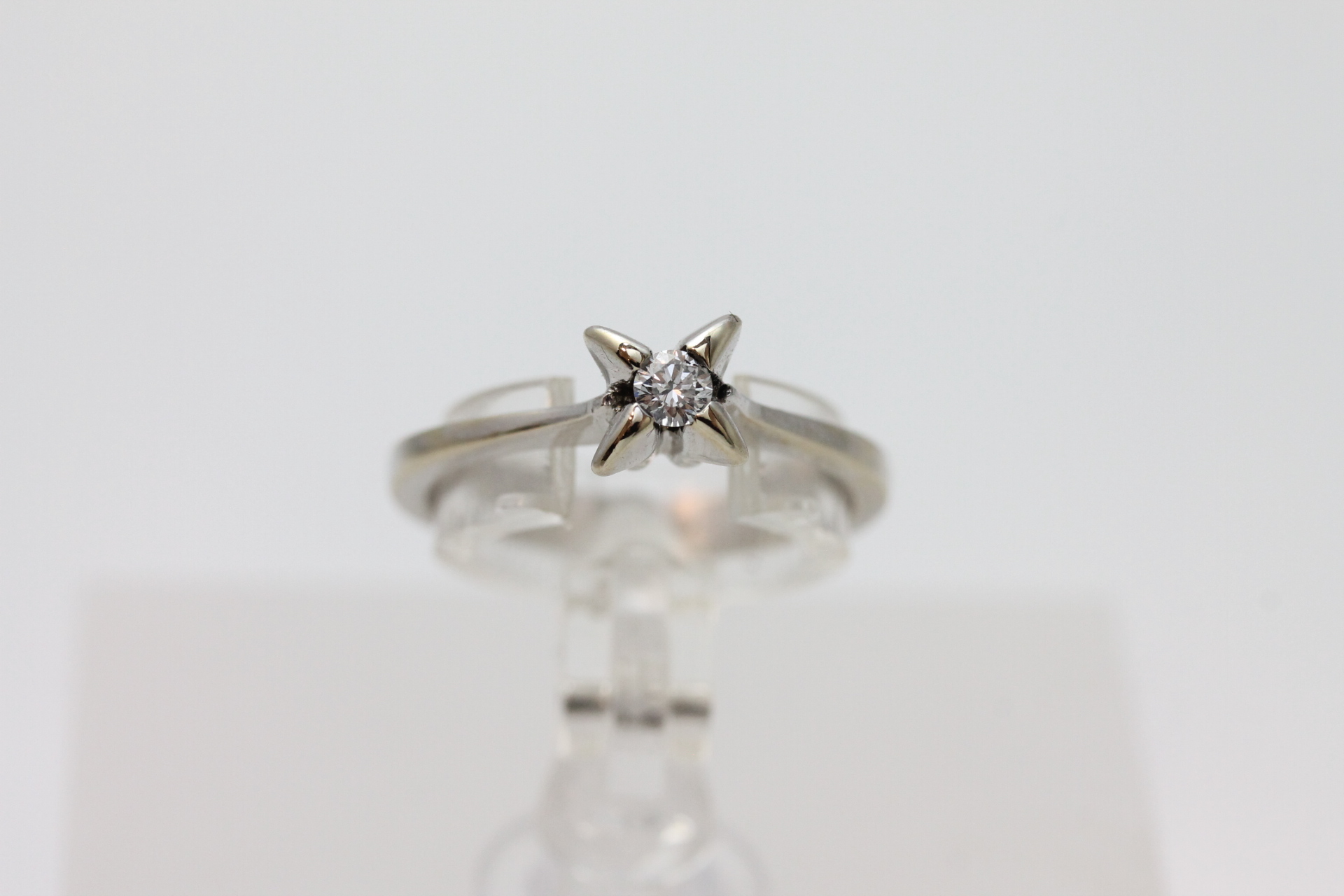 Ring i hvitt gull med diamant 14kt hvitt gull design Sigurd Homstvedt AS, Bergen største breddemål 3,4 mm totalvekt 4,2