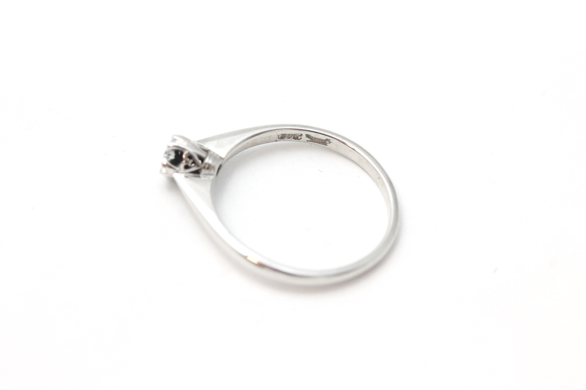Ring i hvitt gull med diamanter fattet i skinne 18kt hvitt gull største breddemål 3,8 mm totalvekt 3,1 gram estimert