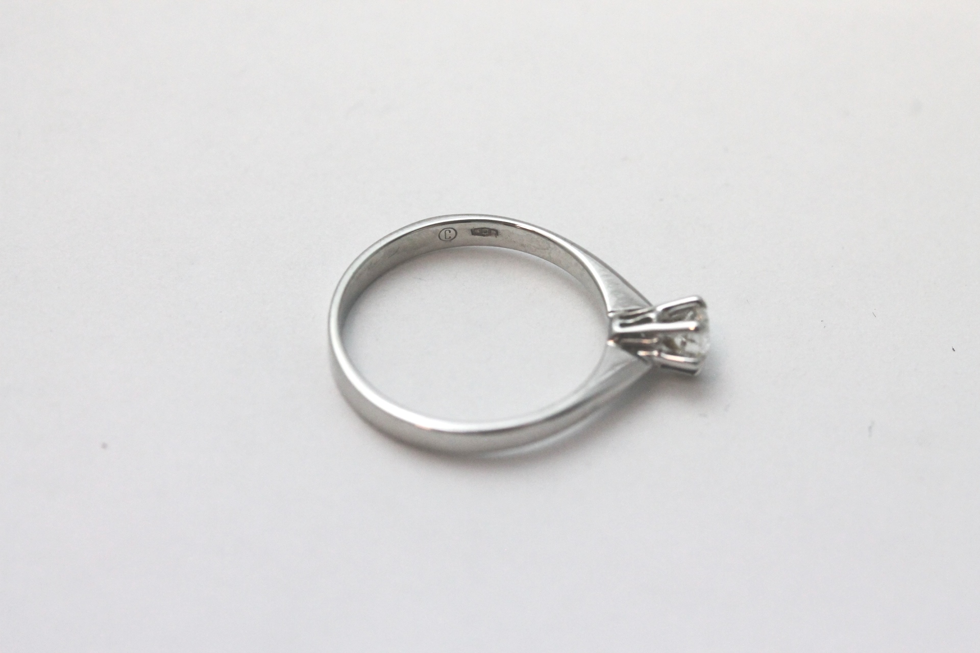 Ring i hvitt gull med diamant 14kt hvitt gull design Sigurd Homstvedt AS, Bergen største breddemål 3,4 mm totalvekt 4,2
