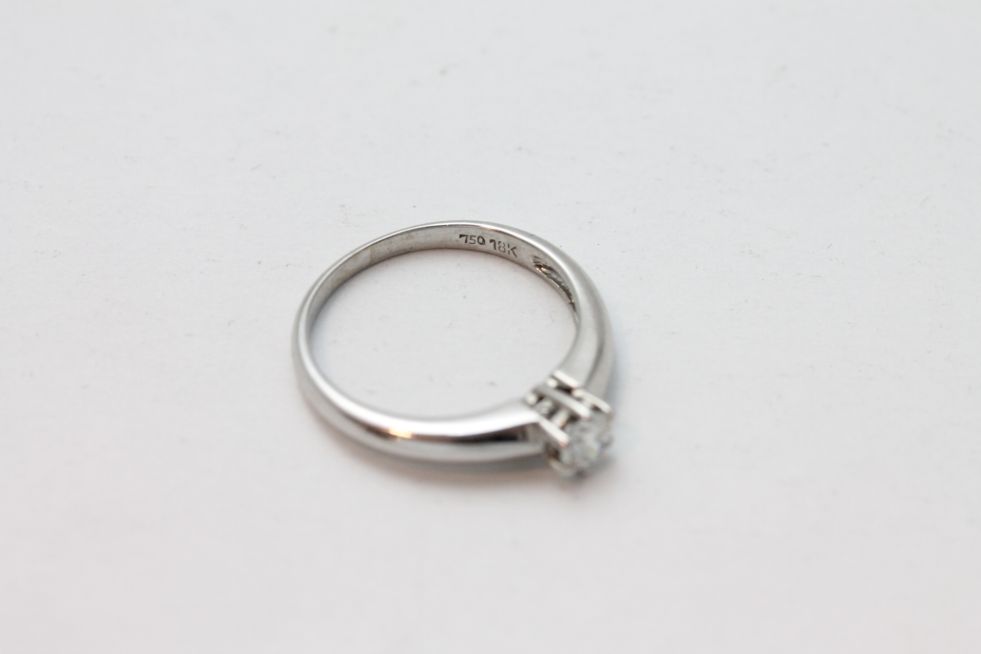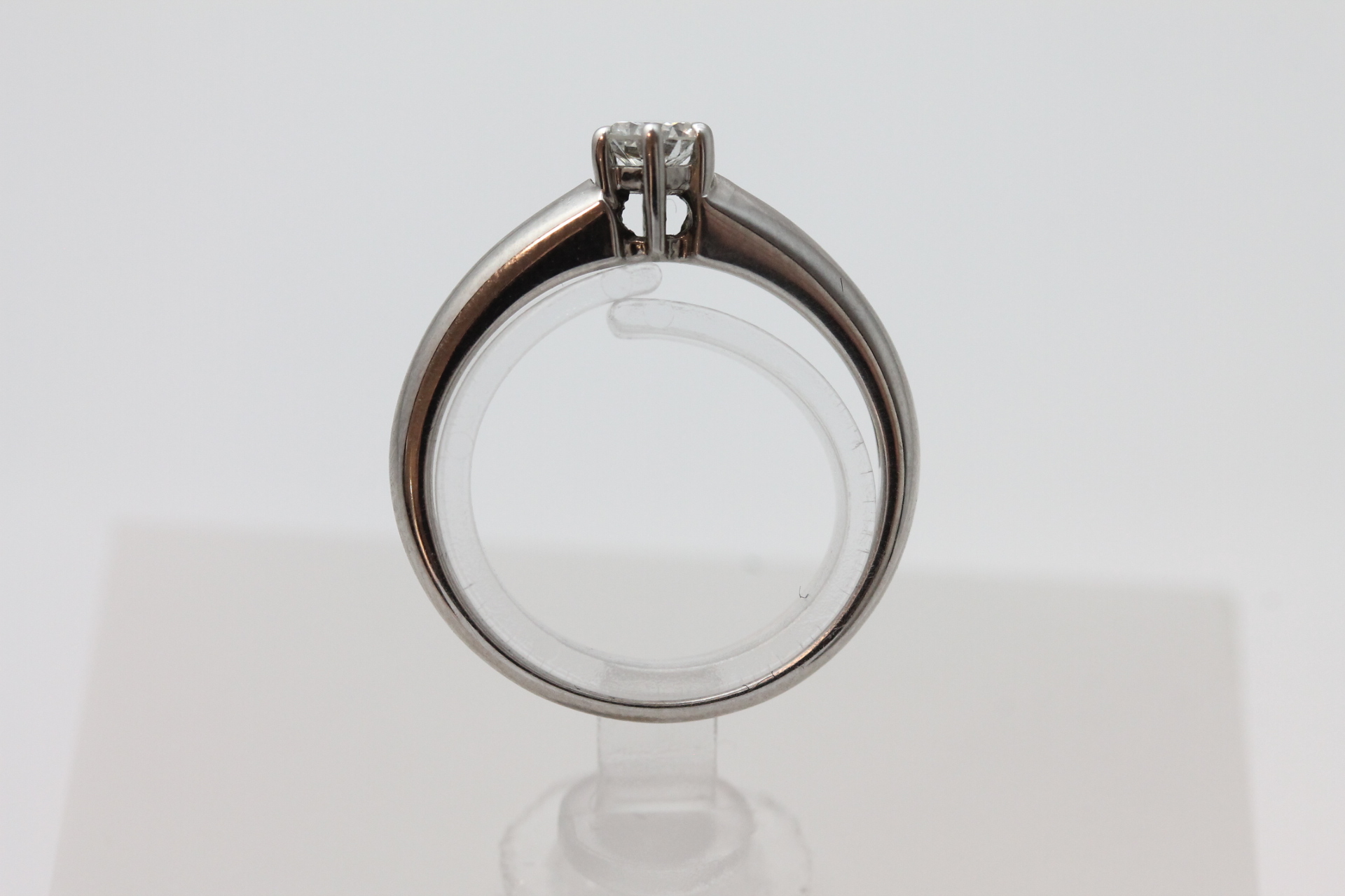 Ring i hvitt gull med diamant 14kt hvitt gull største breddemål 3,9 mm totalvekt 2,20 gram diamantvekt 0.17ct farge og