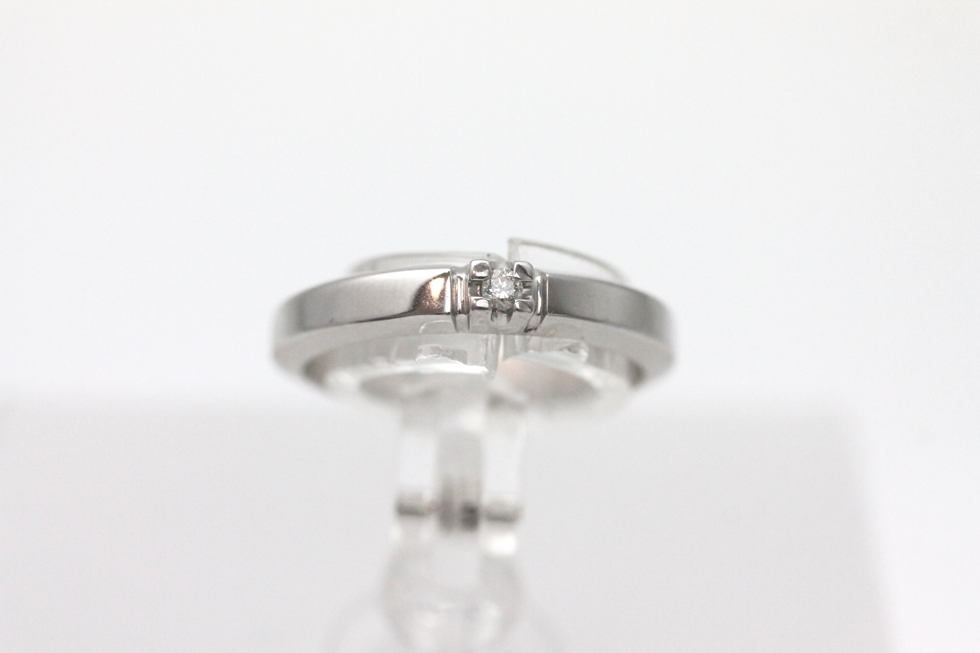 Ring i hvitt gull med diamanter fattet i skinne 18kt hvitt gull største breddemål 3,8 mm totalvekt 3,1 gram estimert