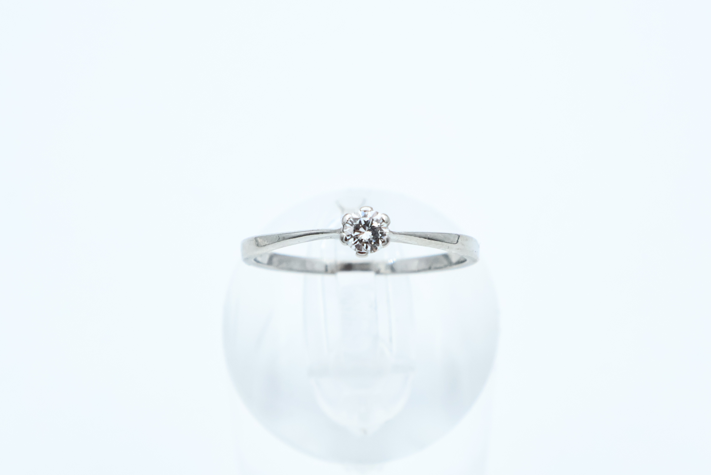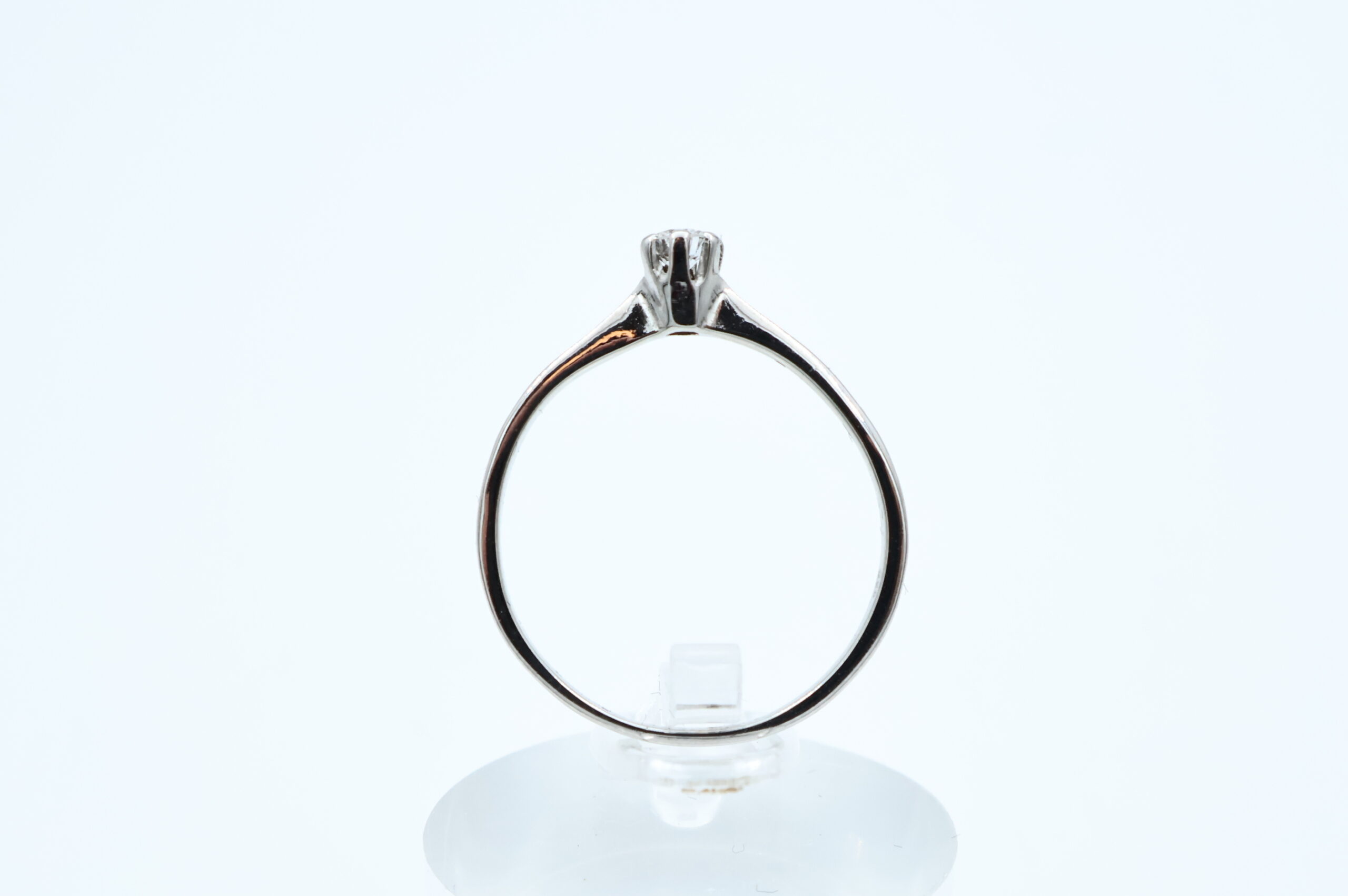 Ring i hvitt gull med diamant 14kt hvitt gull største breddemål 3,70 mm totalvekt 1,9 gram estimert diamantvekt 0.06ct estimert