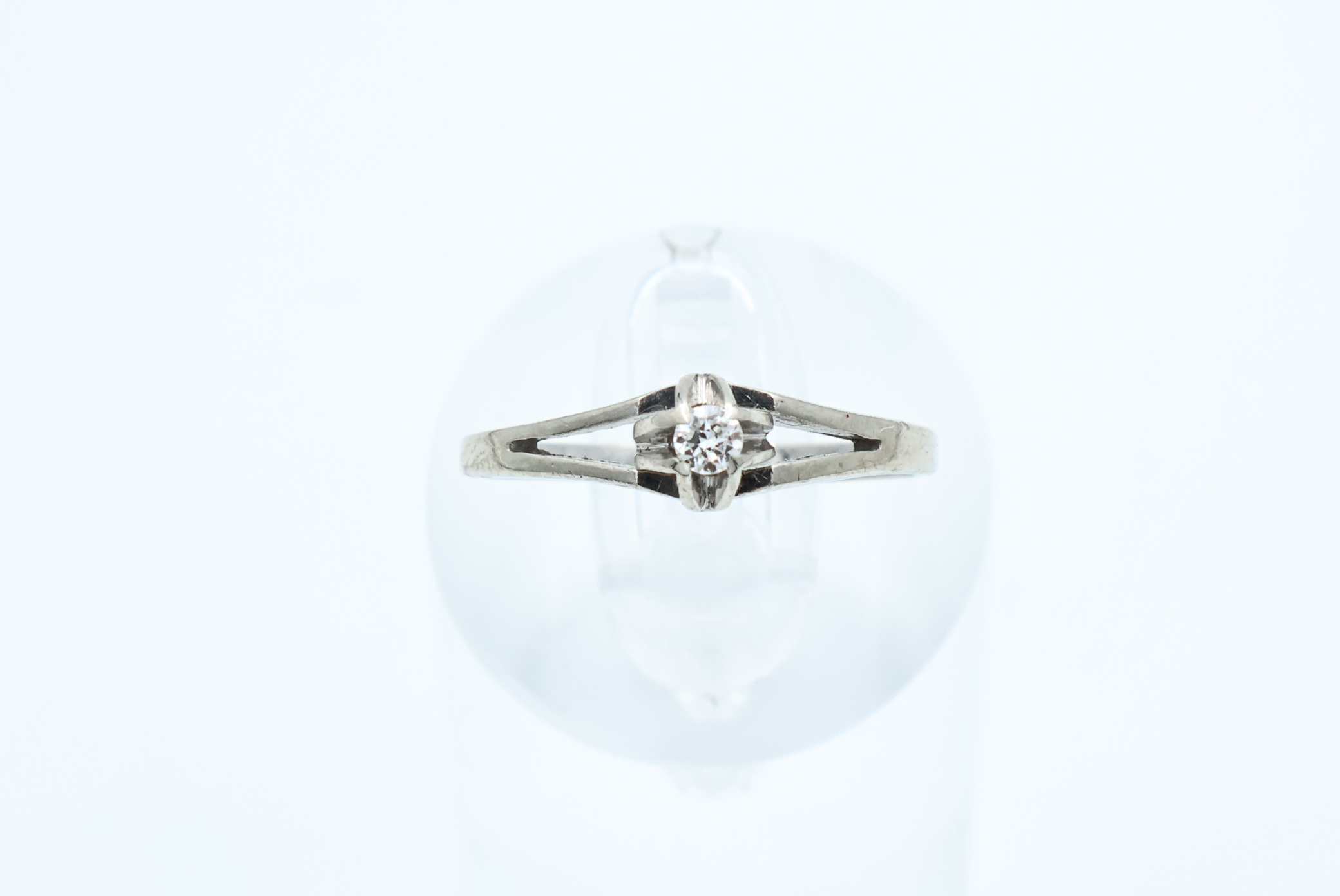 Ring i hvitt gull med diamanter fattet i skinne 18kt hvitt gull største breddemål 3,8 mm totalvekt 3,1 gram estimert