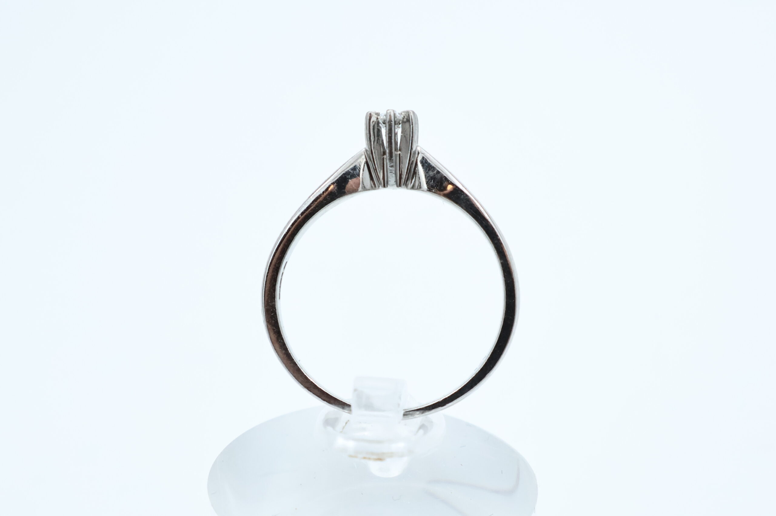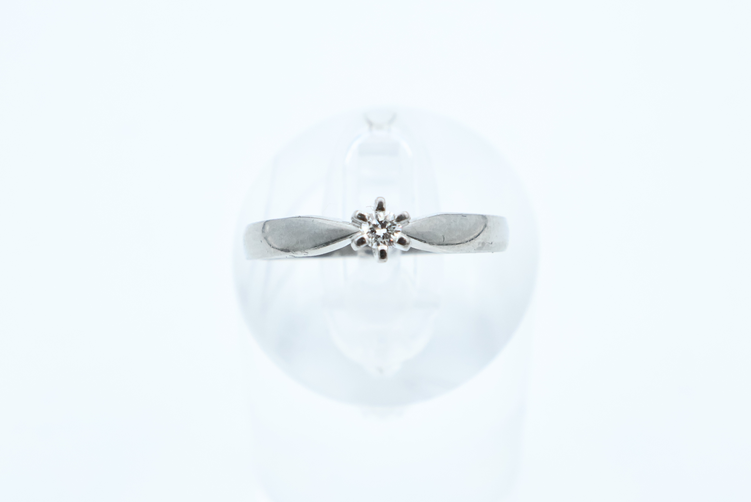 Ring i hvitt gull med diamanter 14kt hvitt gull, syretestet største breddemål 7,0 mm totalvekt 2,7 gram estimert 0.27ct fordelt