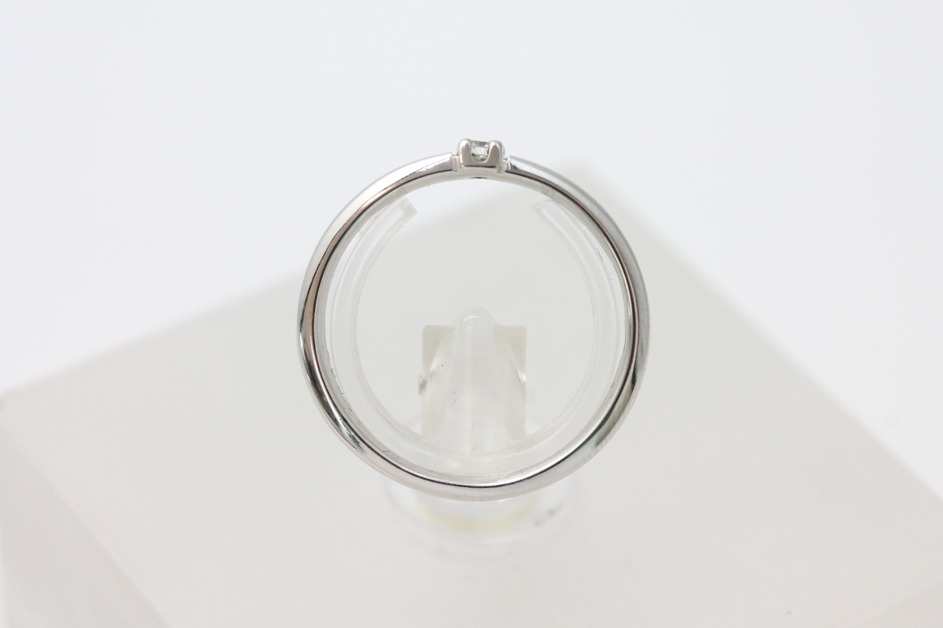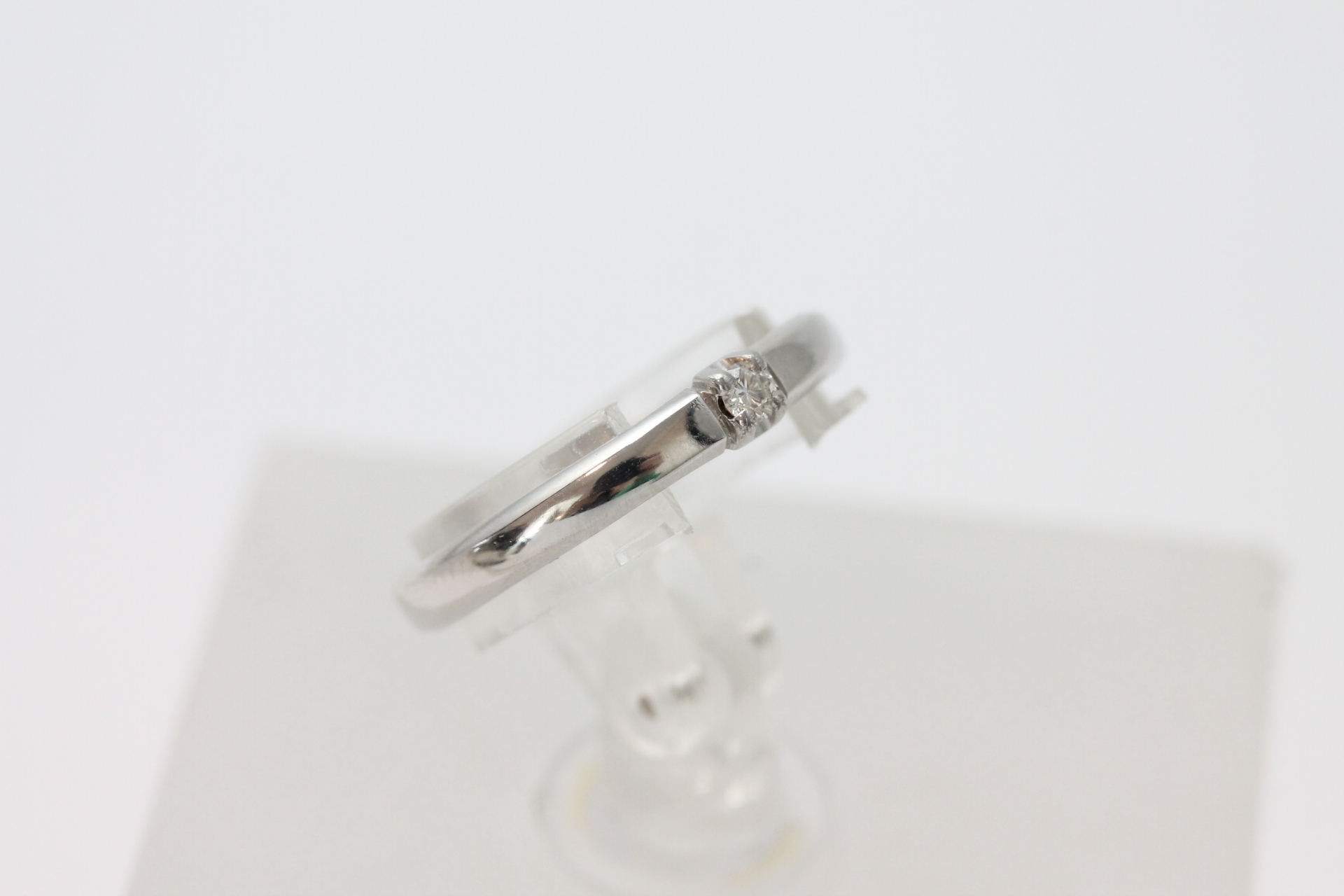 Ring i hvitt gull med diamanter 14kt hvitt gull største breddemål 2,52 mm totalvekt 1,73 gram estimert 0,18ct fordelt på