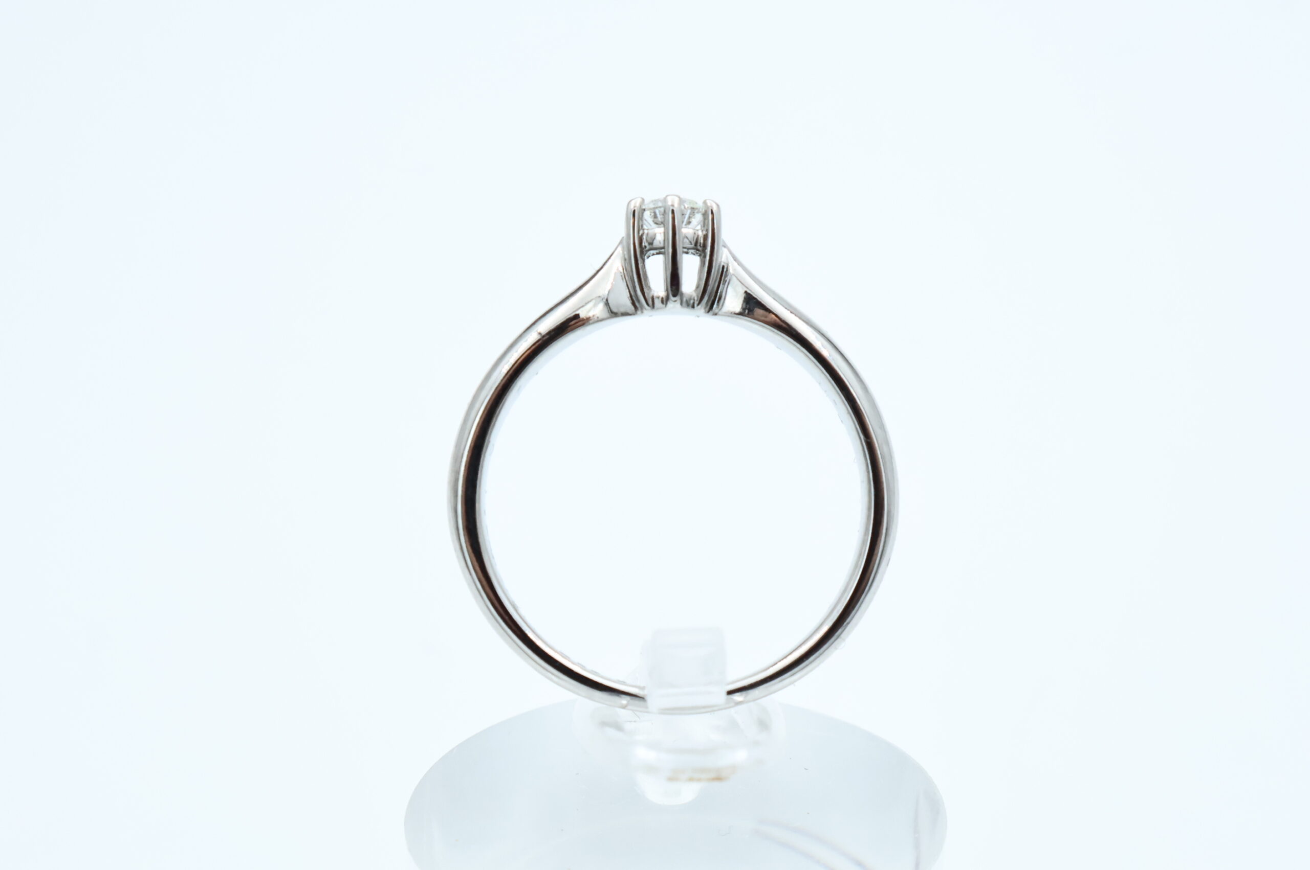 Ring i hvitt gull med diamanter 14kt hvitt gull største breddemål 2,52 mm totalvekt 1,73 gram estimert 0,18ct fordelt på