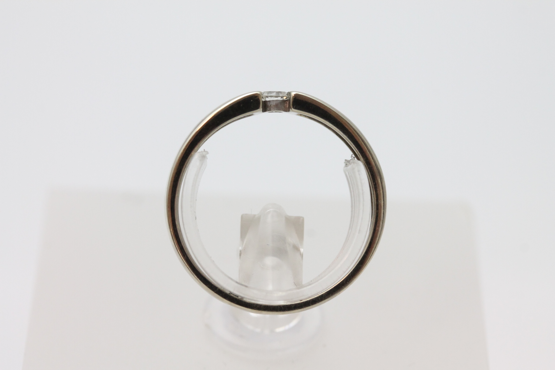 Ring i hvitt gull med diamanter 14kt hvitt gull største breddemål 11,93 mm totalvekt 3,94 gram estimert diamantvekt 0,06ct fordelt
