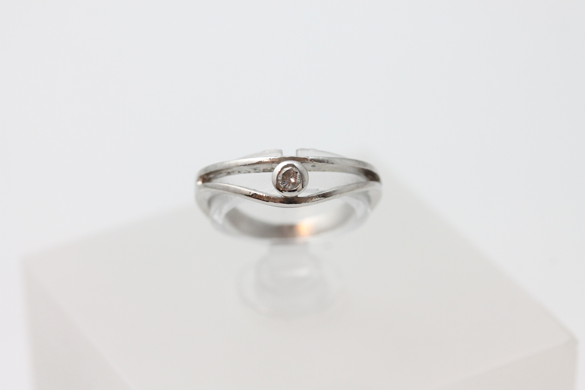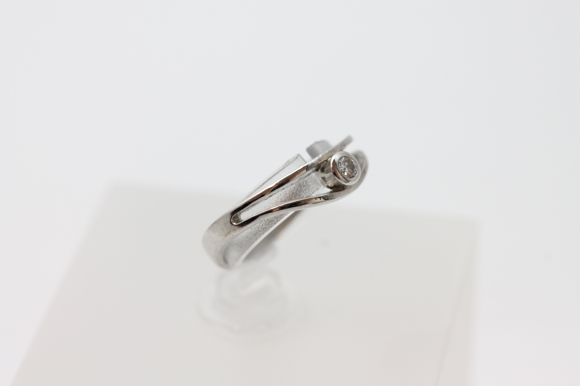 Ring i hvitt gull med diamant 14kt hvitt gull design Sigurd Homstvedt AS, Bergen største breddemål 3,4 mm totalvekt 4,2
