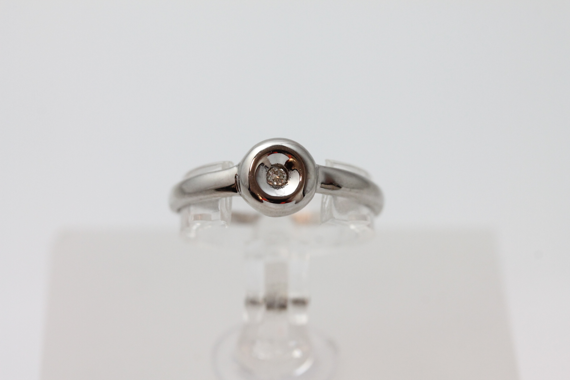 Ring i hvitt gull med diamant 14kt hvitt gull design Sigurd Homstvedt AS, Bergen største breddemål 3,4 mm totalvekt 4,2