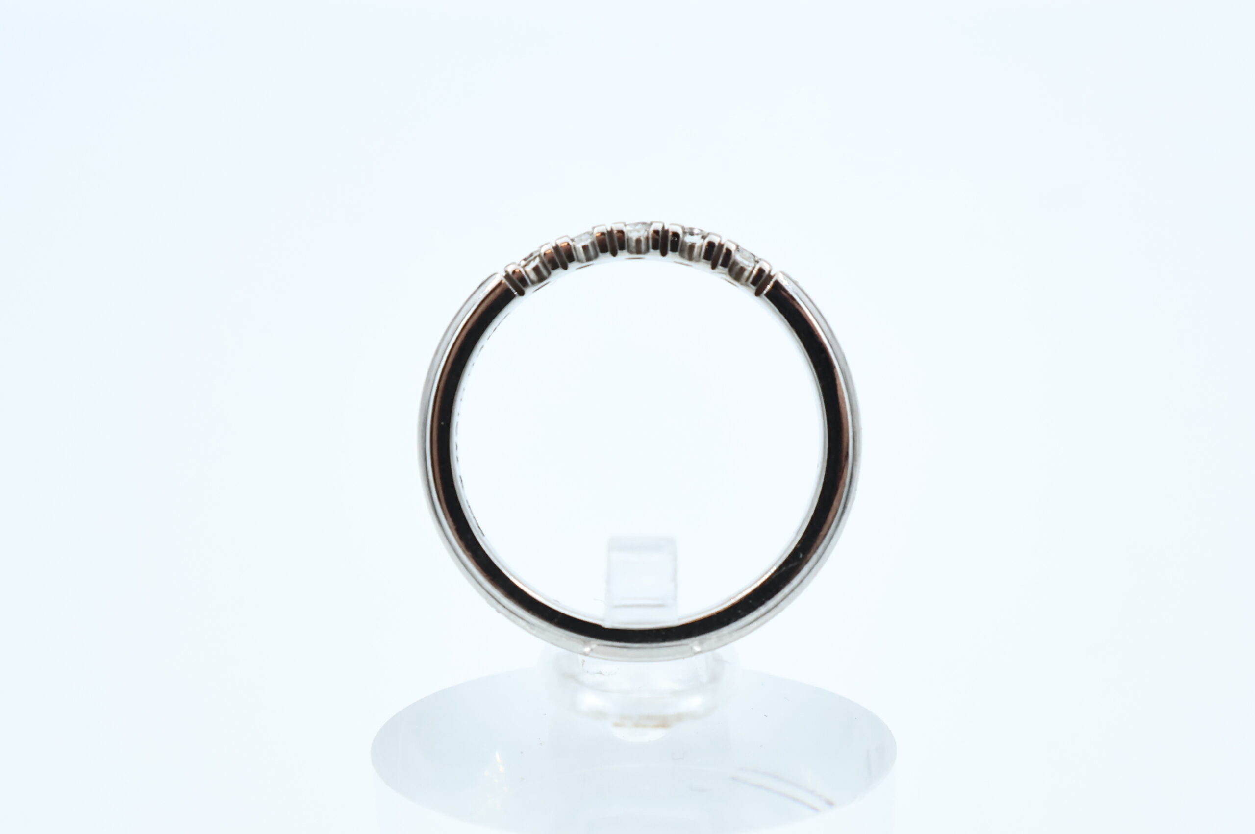 Ring i hvitt gull med diamanter 14kt hvitt gull største breddemål 2,52 mm totalvekt 1,73 gram estimert 0,18ct fordelt på