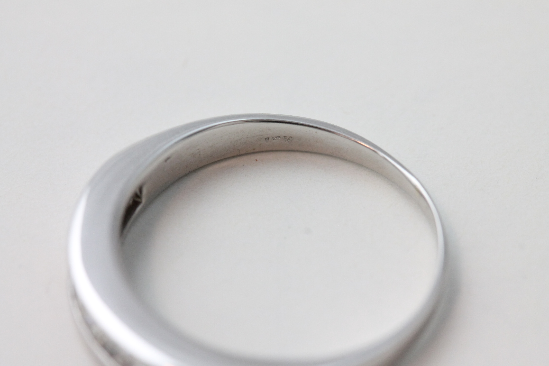Ring i hvitt gull med diamanter 14kt hvitt gull største breddemål 2,52 mm totalvekt 1,73 gram estimert 0,18ct fordelt på