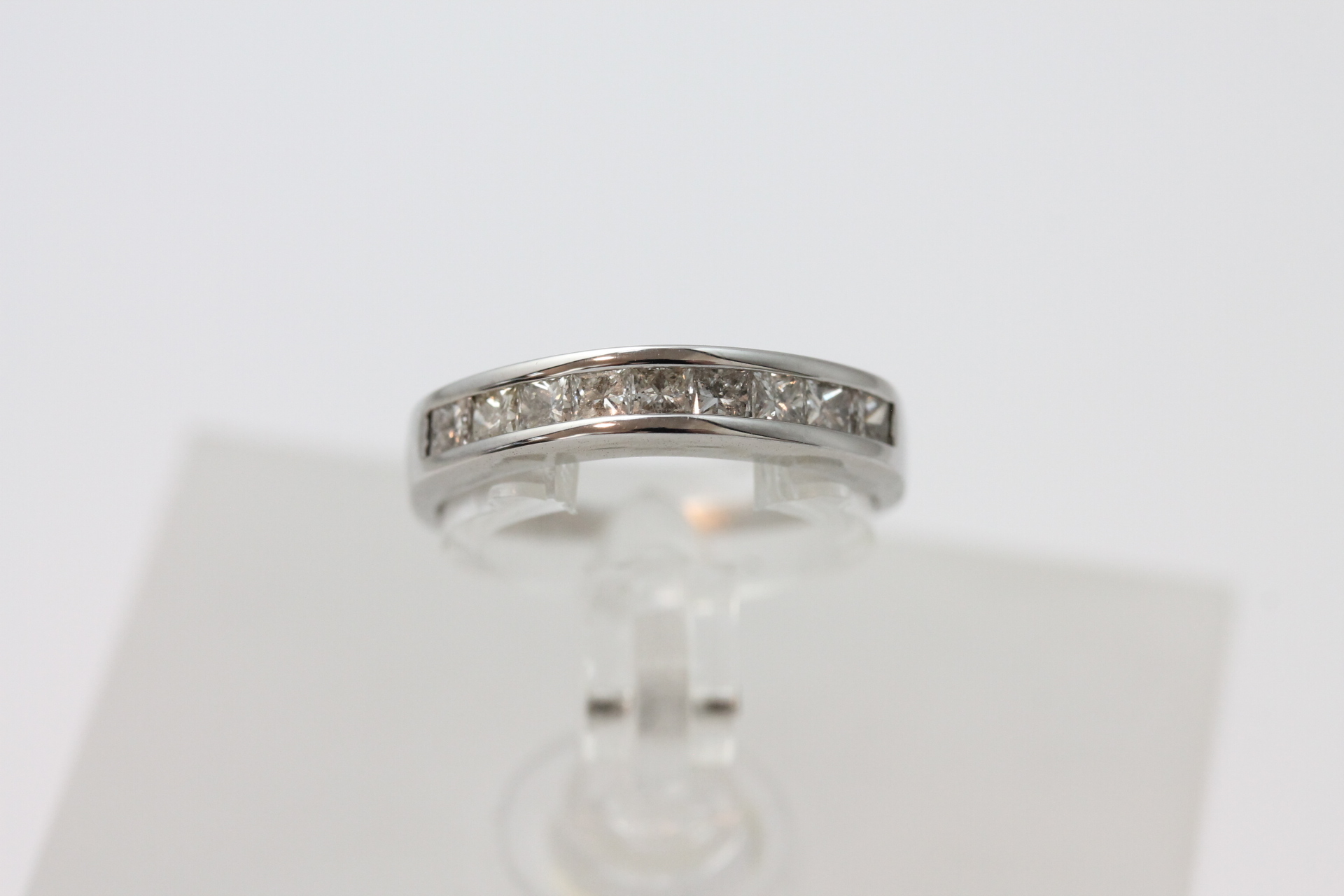 Ring i hvitt gull med diamanter 18kt hvitt gull største breddemål 6,92 mm totalvekt 3,62 gram estimert 1,17ct fordelt på
