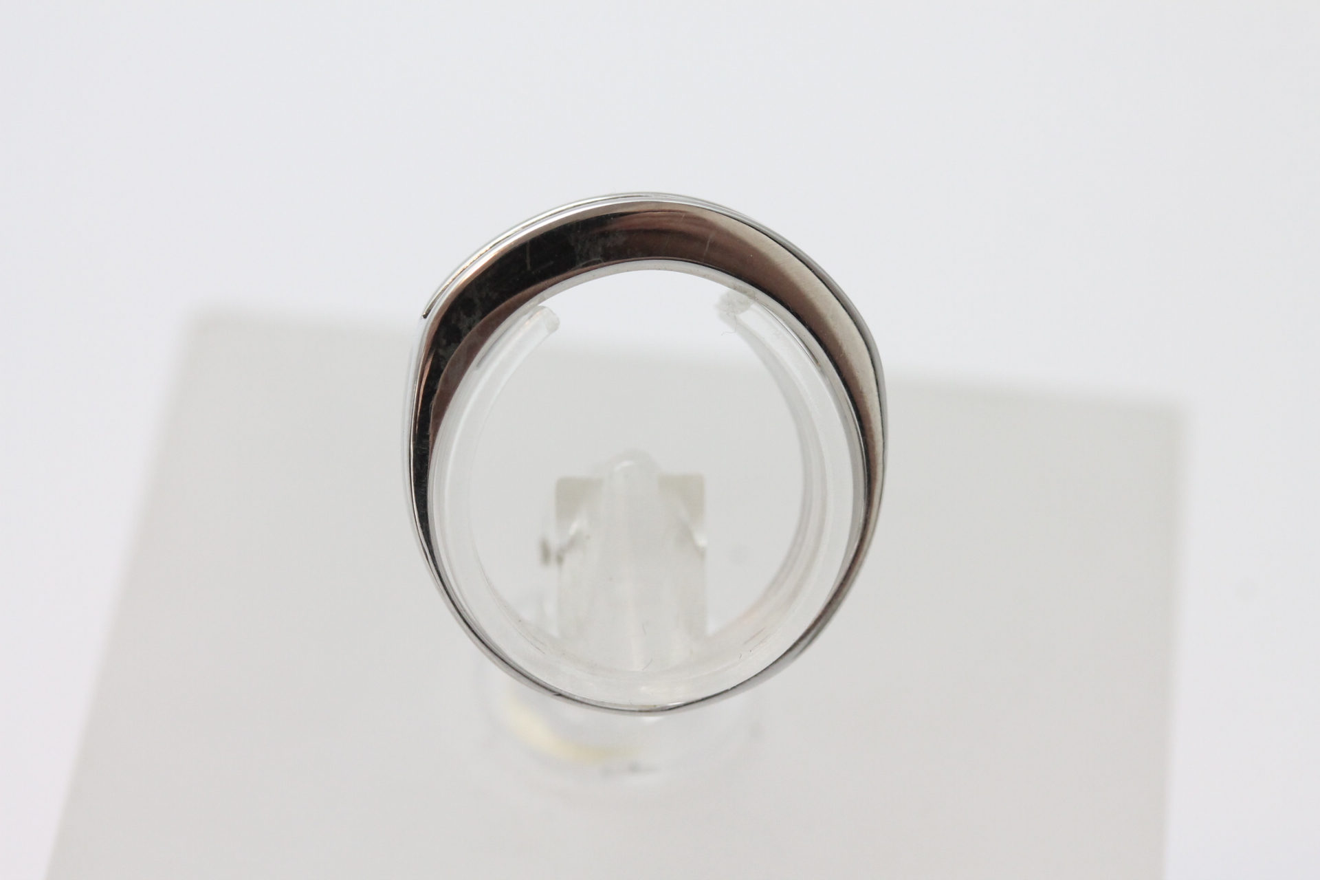 Ring i hvitt gull med diamanter 14kt hvitt gull, syretestet største breddemål 7,0 mm totalvekt 2,7 gram estimert 0.27ct fordelt