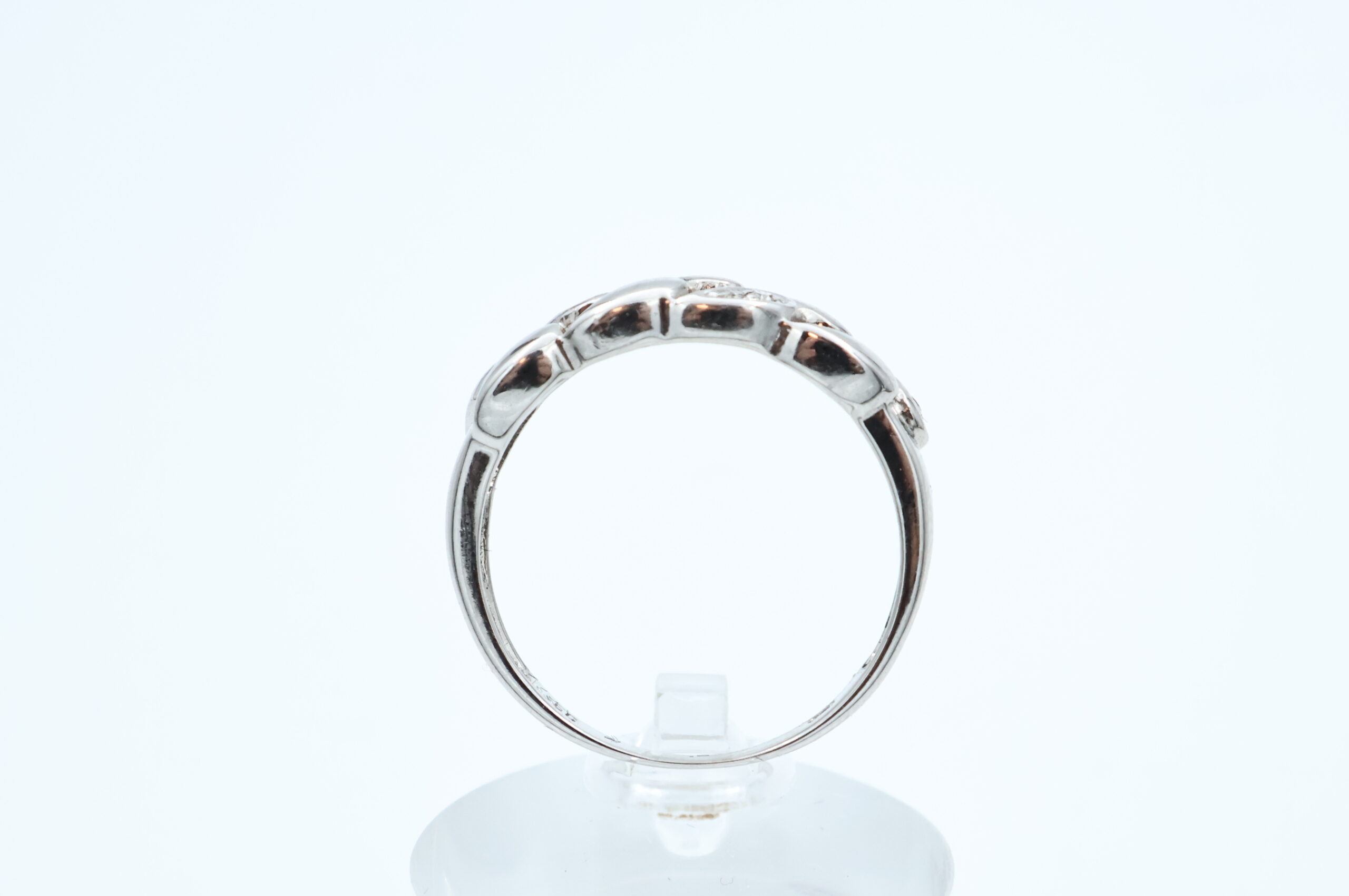 Ring i hvitt gull med diamant 14kt hvitt gull største breddemål 3,70 mm totalvekt 1,9 gram estimert diamantvekt 0.06ct estimert