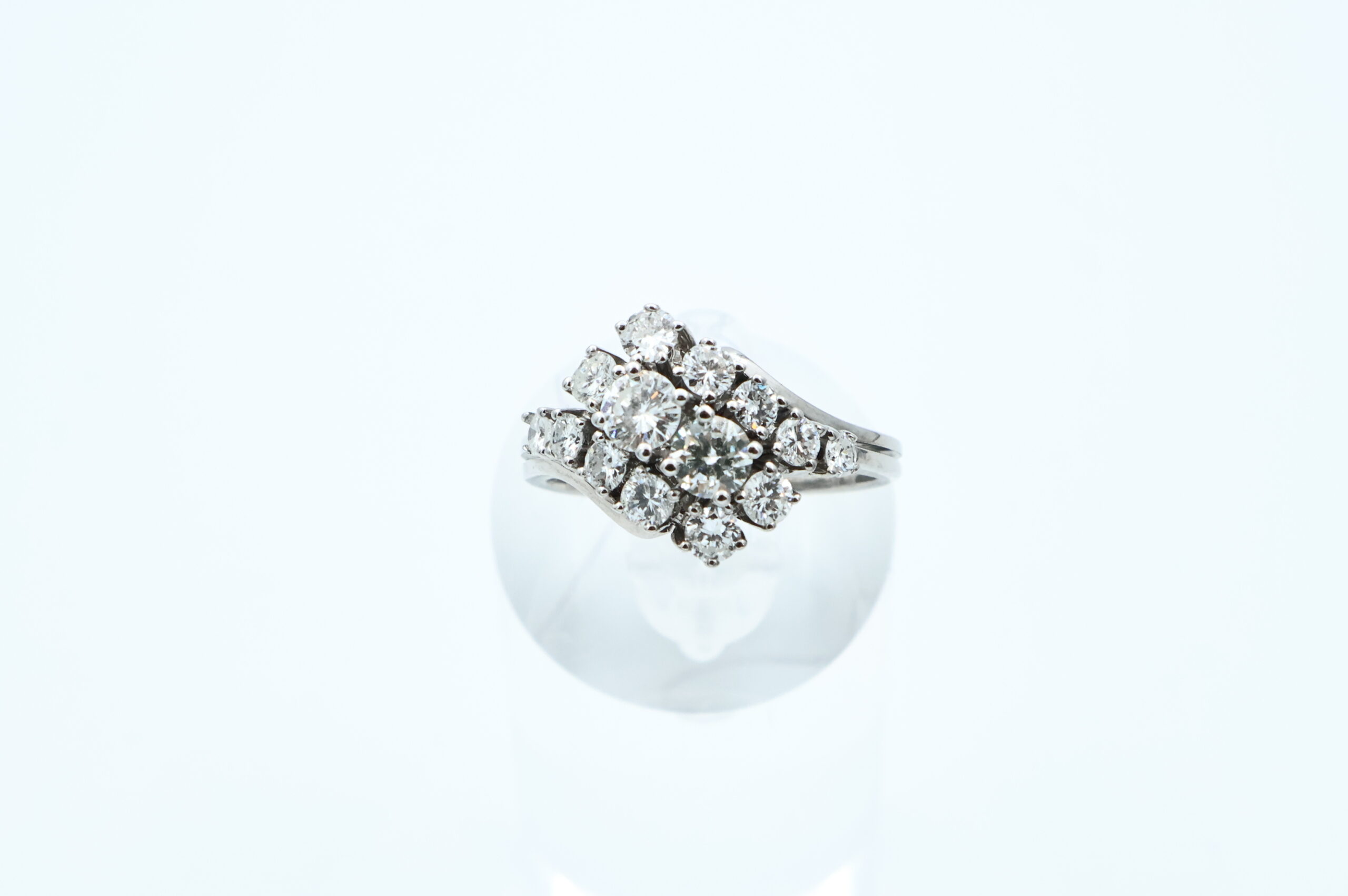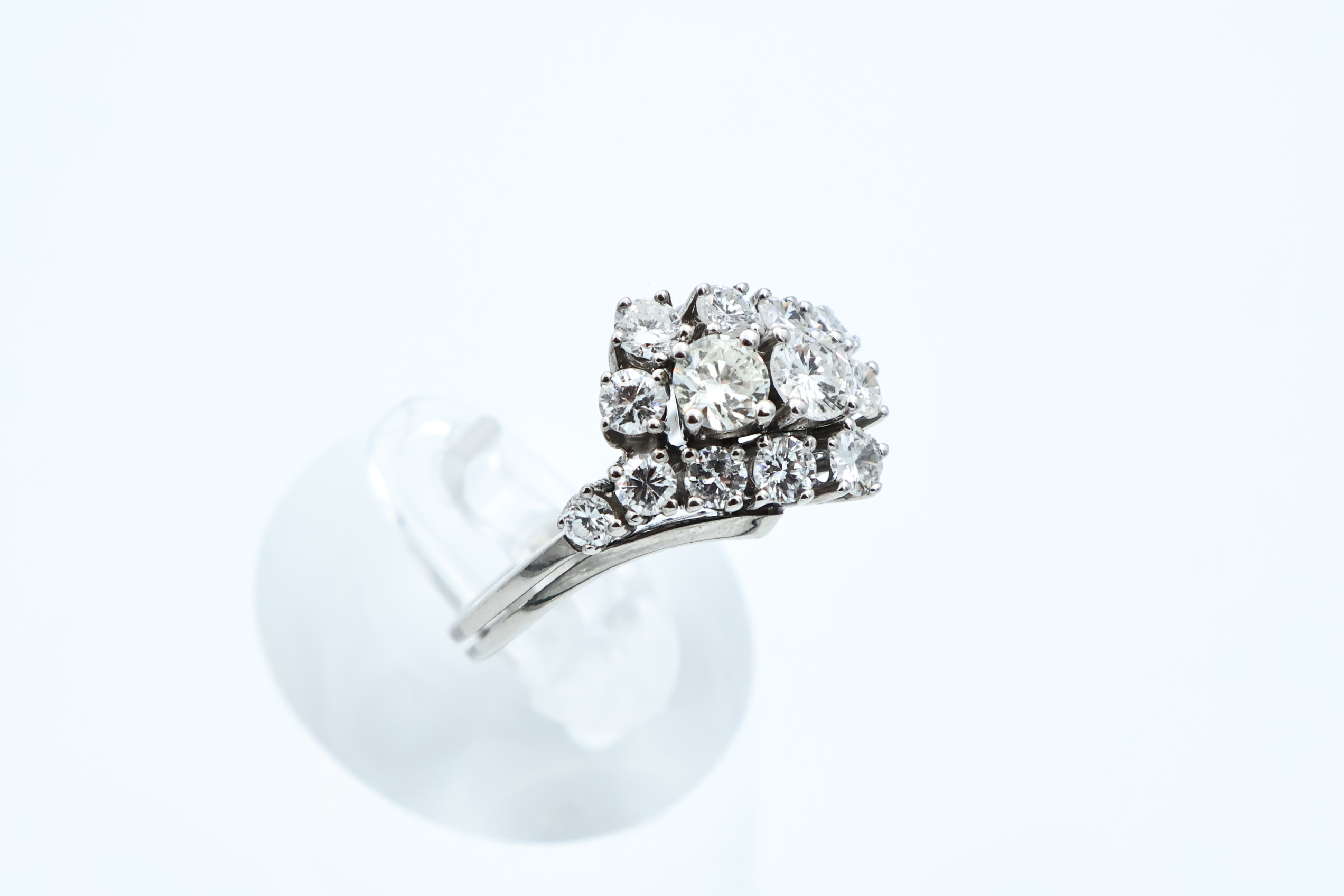 Ring i hvitt gull med diamanter 14kt hvitt gull Ivar T. Holth AS, Oslo største breddemål 14,4 mm totalvekt 2,9