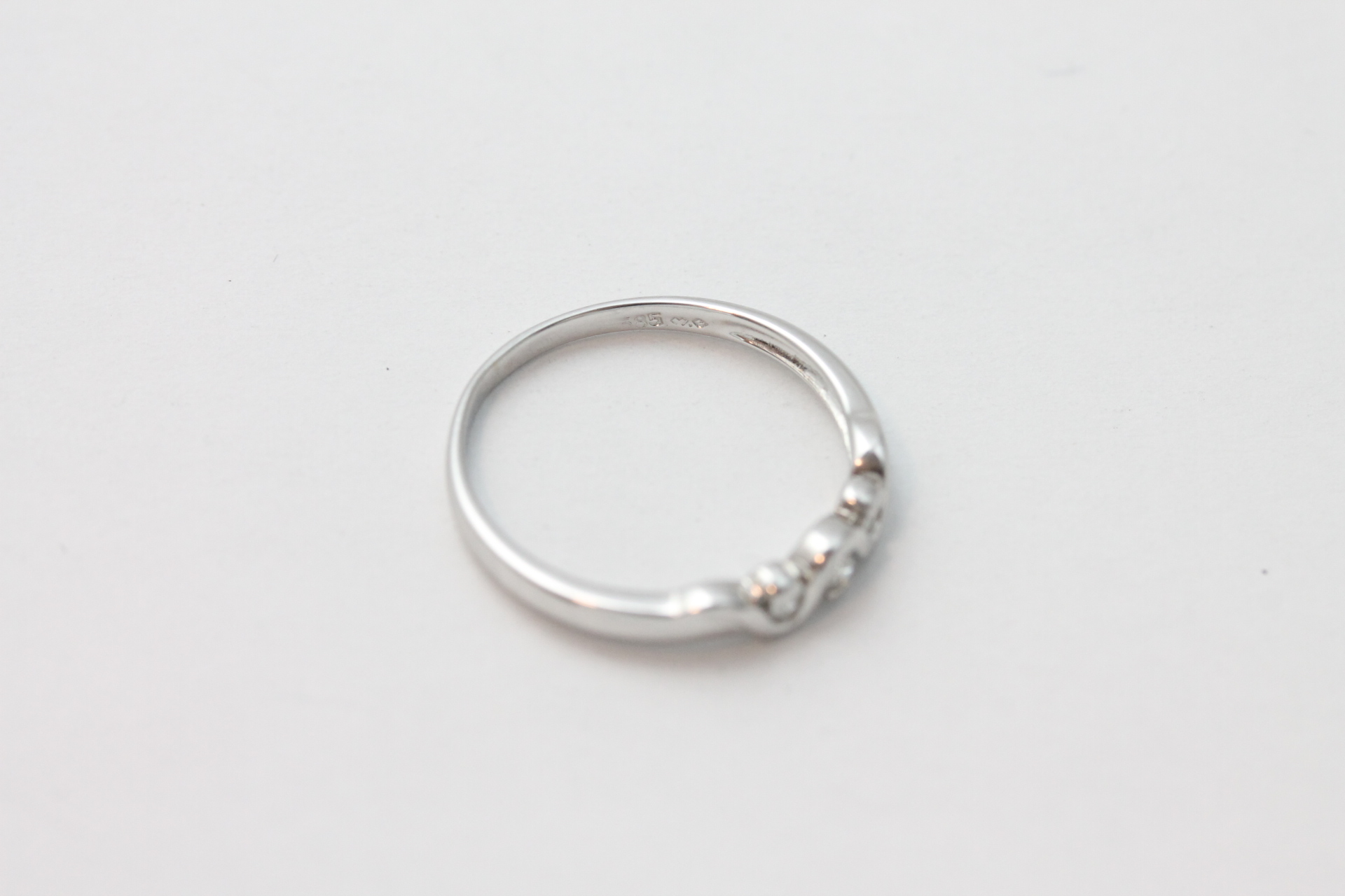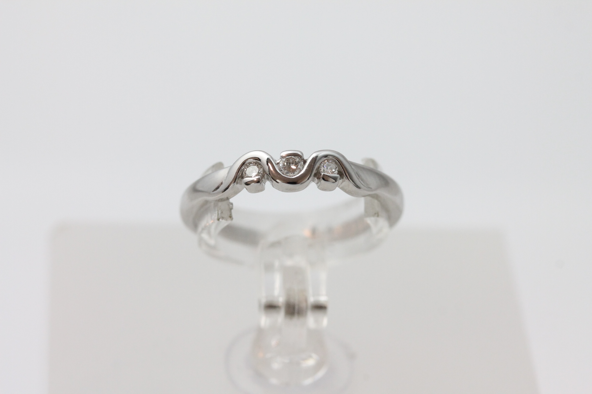 Ring i hvitt gull med diamant 14kt hvitt gull største breddemål 3,9 mm totalvekt 2,20 gram diamantvekt 0.17ct farge og
