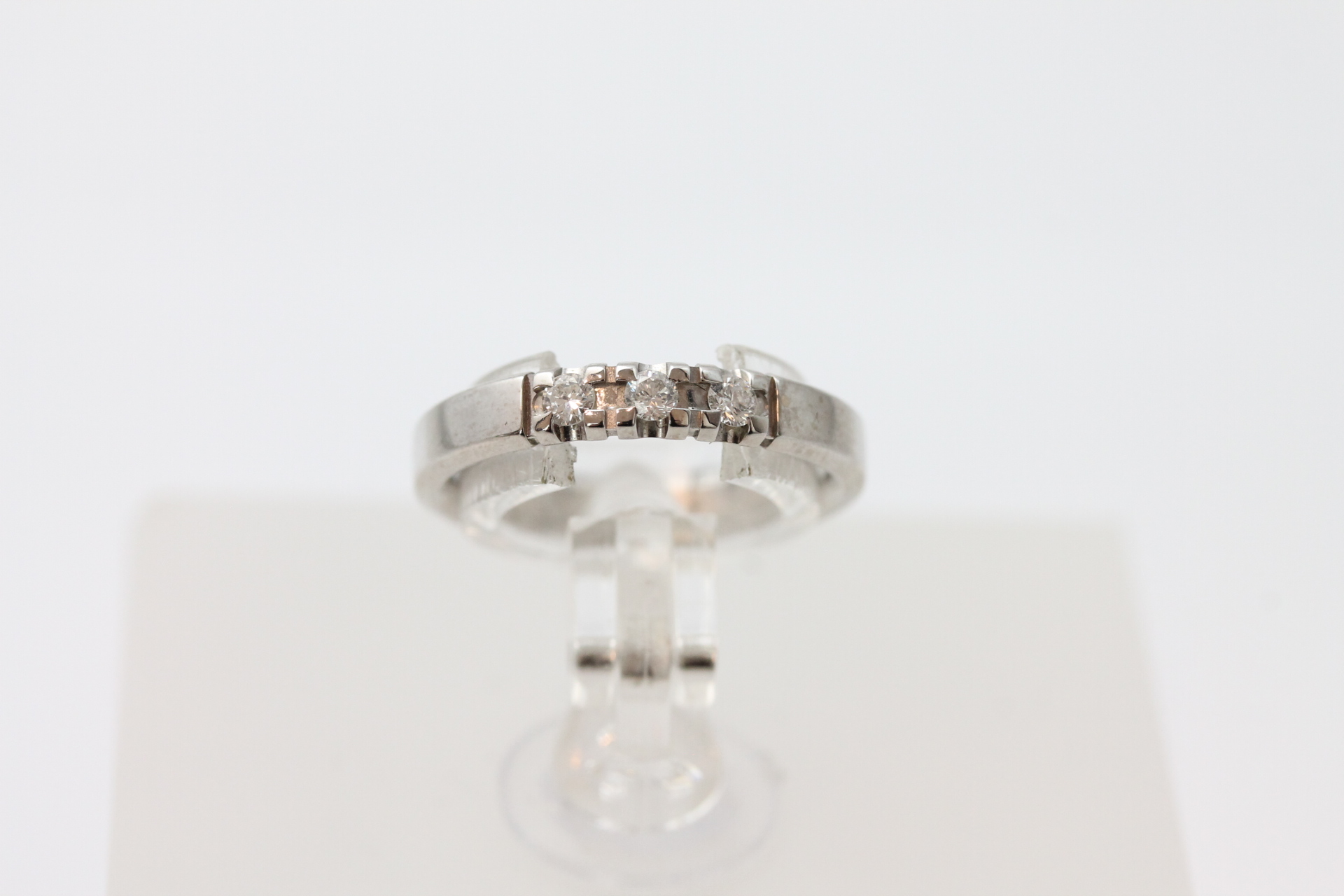 Ring i hvitt gull med diamanter 14kt hvitt gull Ivar T. Holth AS, Oslo største breddemål 14,4 mm totalvekt 2,9