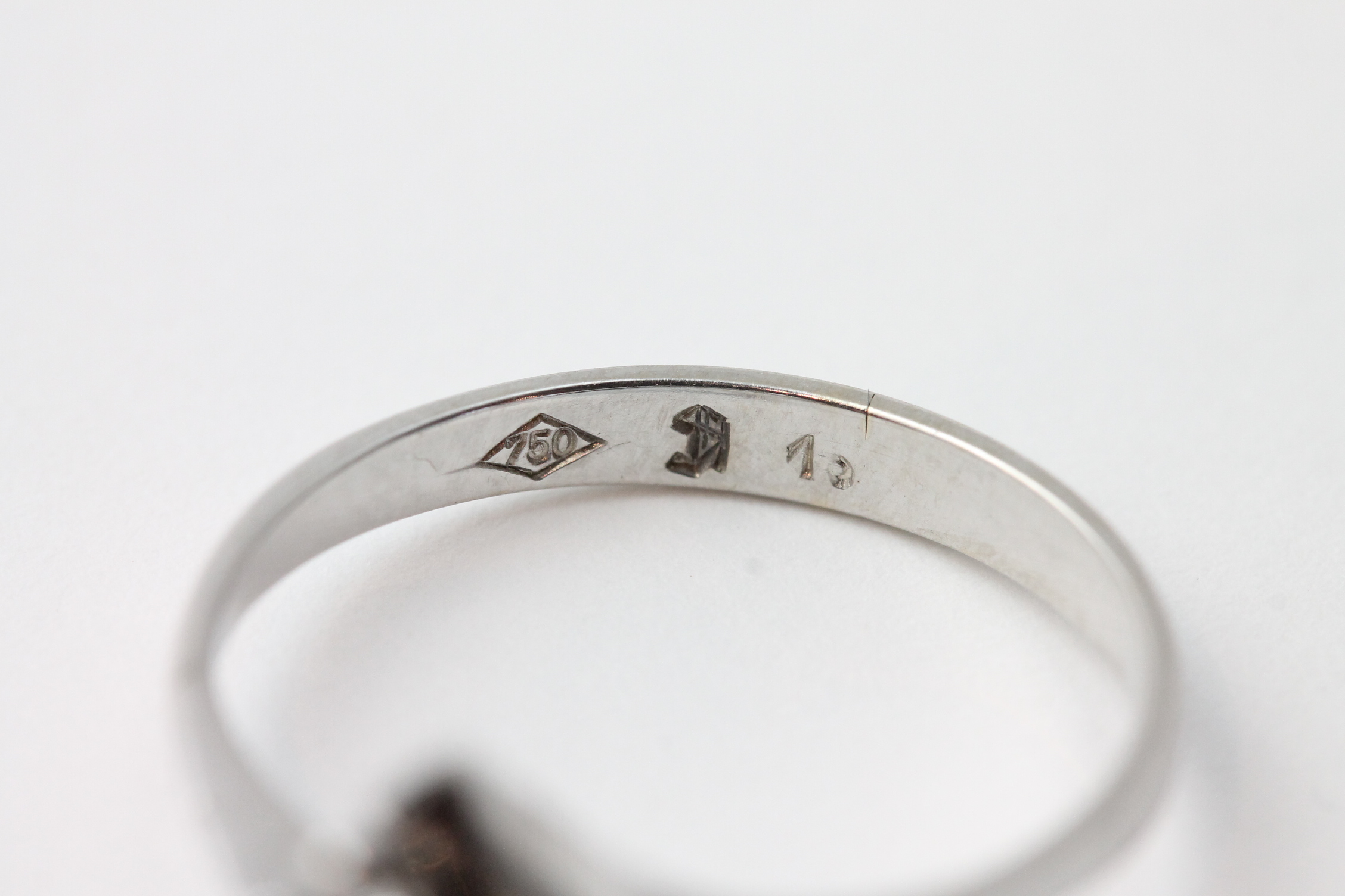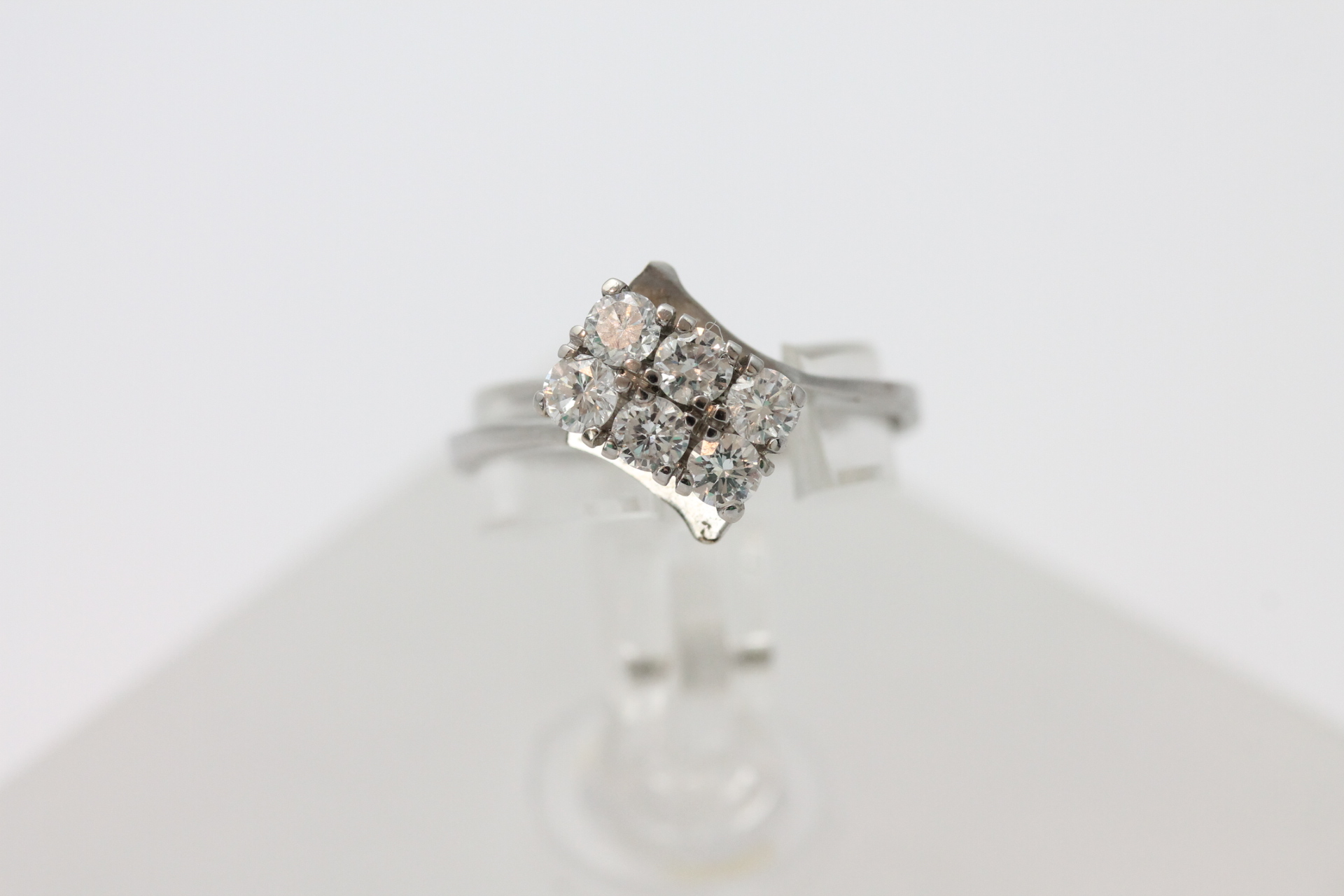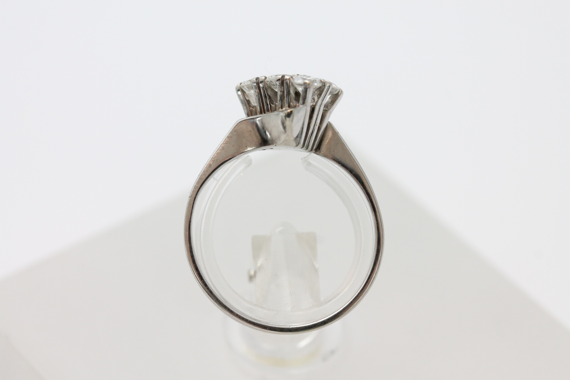 Ring i hvitt gull med diamanter 14kt hvitt gull Ivar T. Holth AS, Oslo største breddemål 14,4 mm totalvekt 2,9