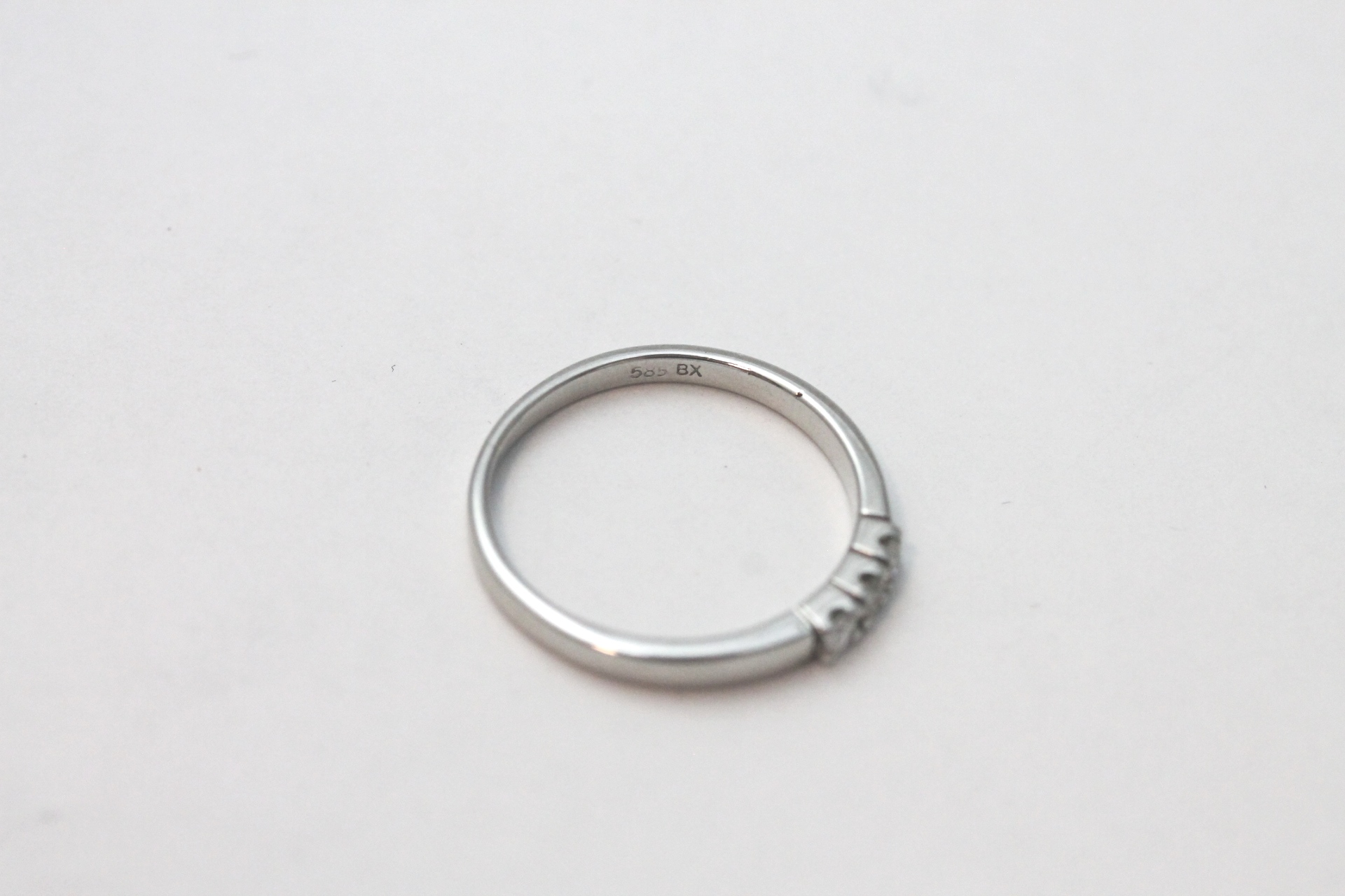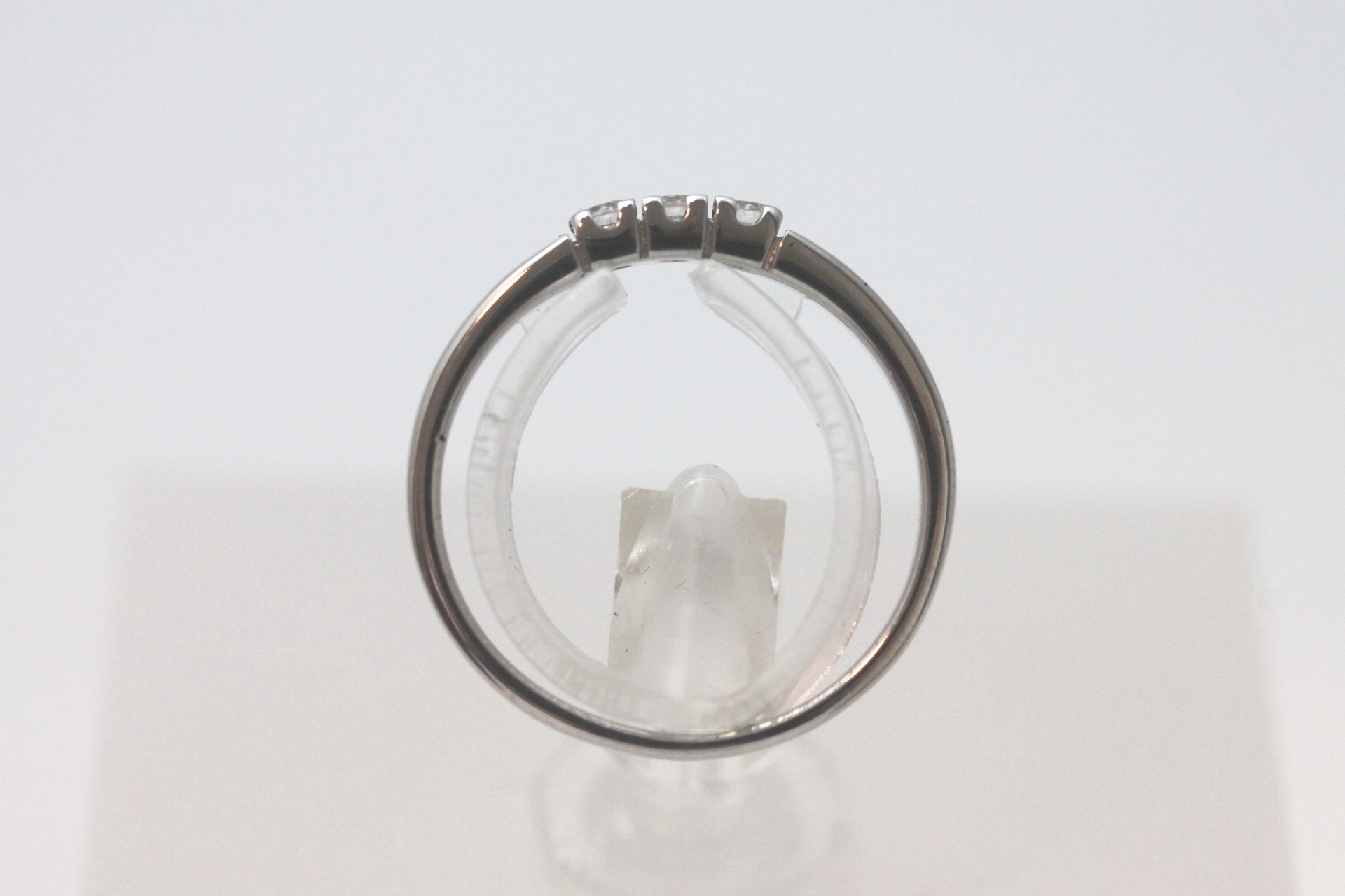 Ring i hvitt gull med diamanter fattet i skinne 18kt hvitt gull største breddemål 3,8 mm totalvekt 3,1 gram estimert
