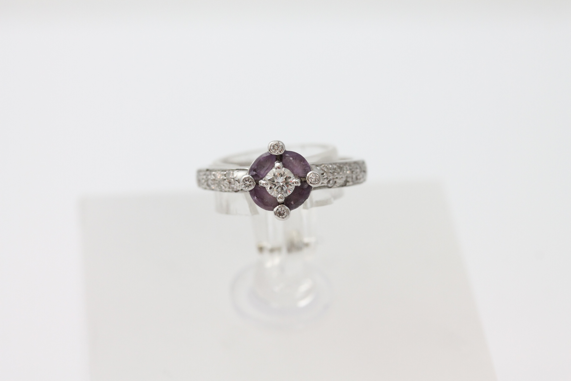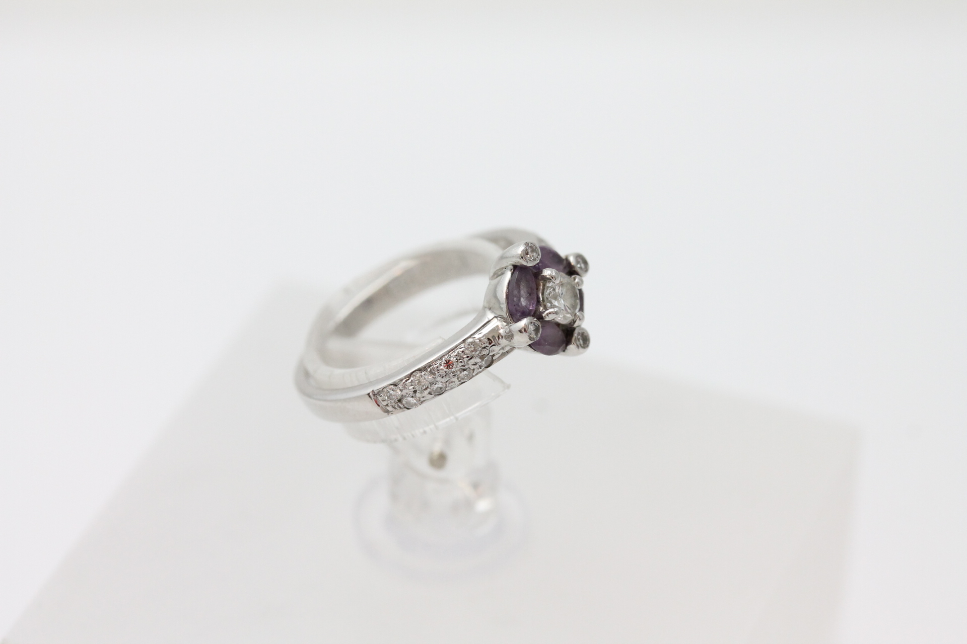 Ring i hvitt gull med diamanter 14kt hvitt gull Ivar T. Holth AS, Oslo største breddemål 14,4 mm totalvekt 2,9