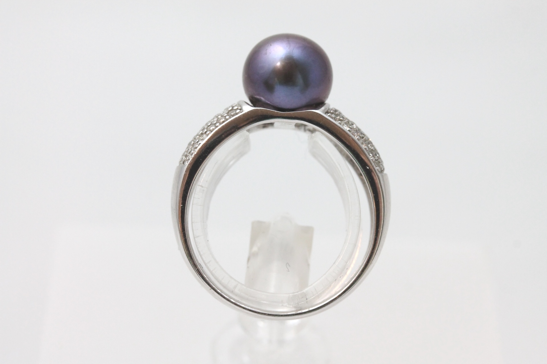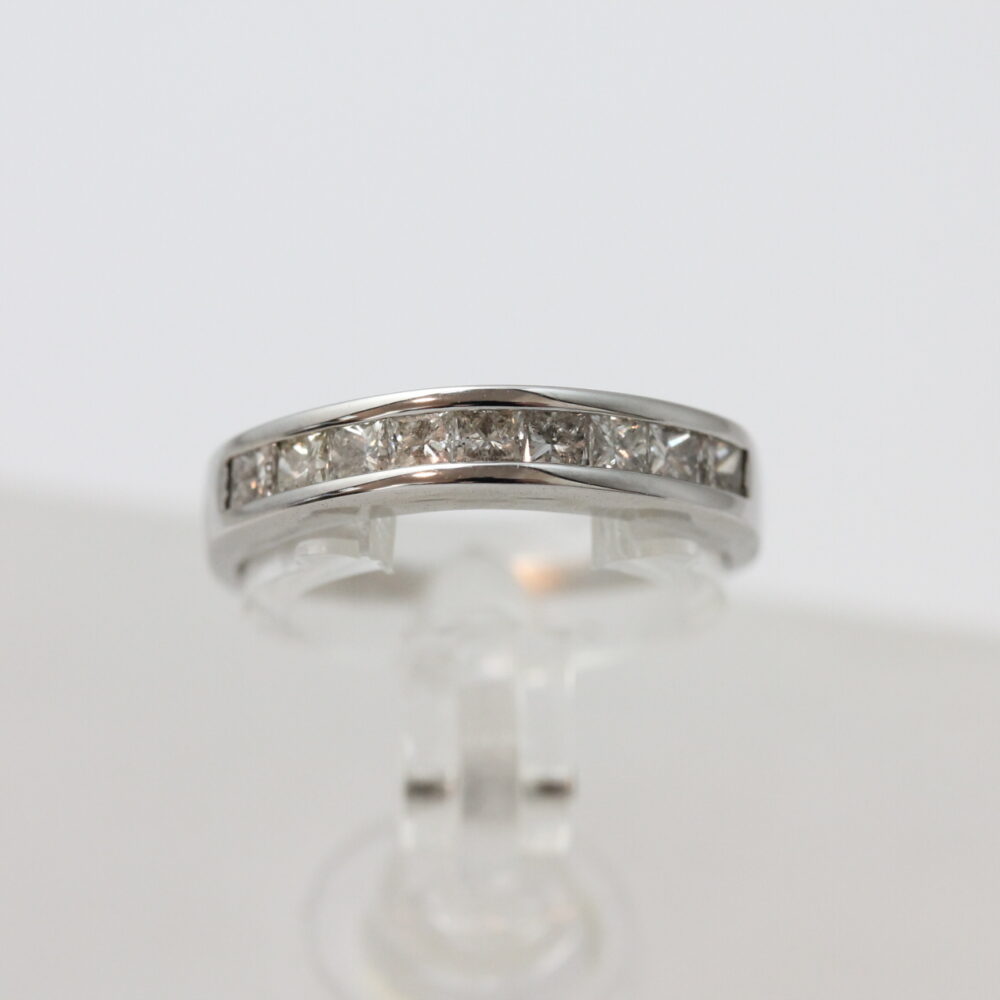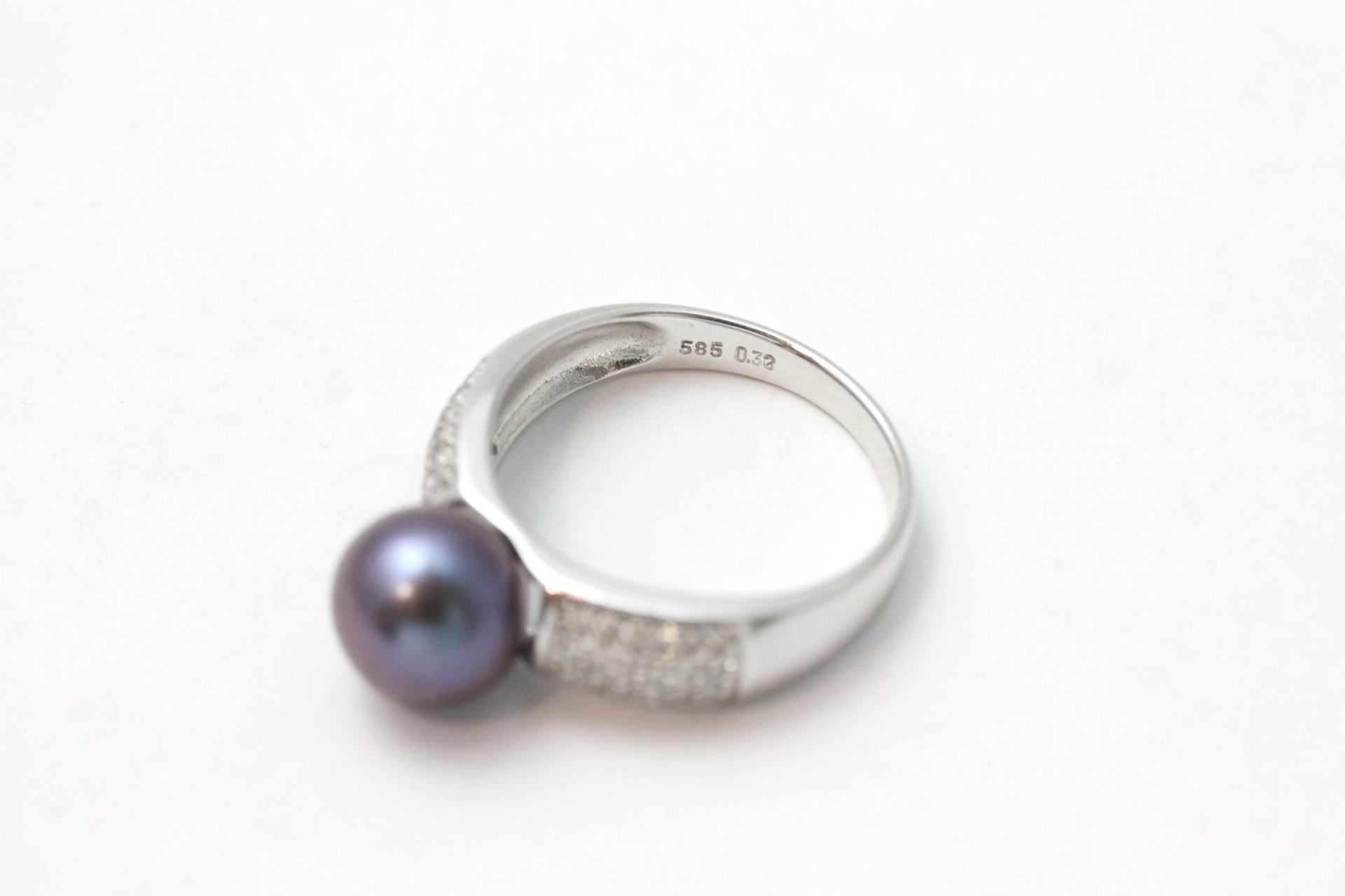 Ring i hvitt gull med diamanter 14kt hvitt gull Ivar T. Holth AS, Oslo største breddemål 14,4 mm totalvekt 2,9