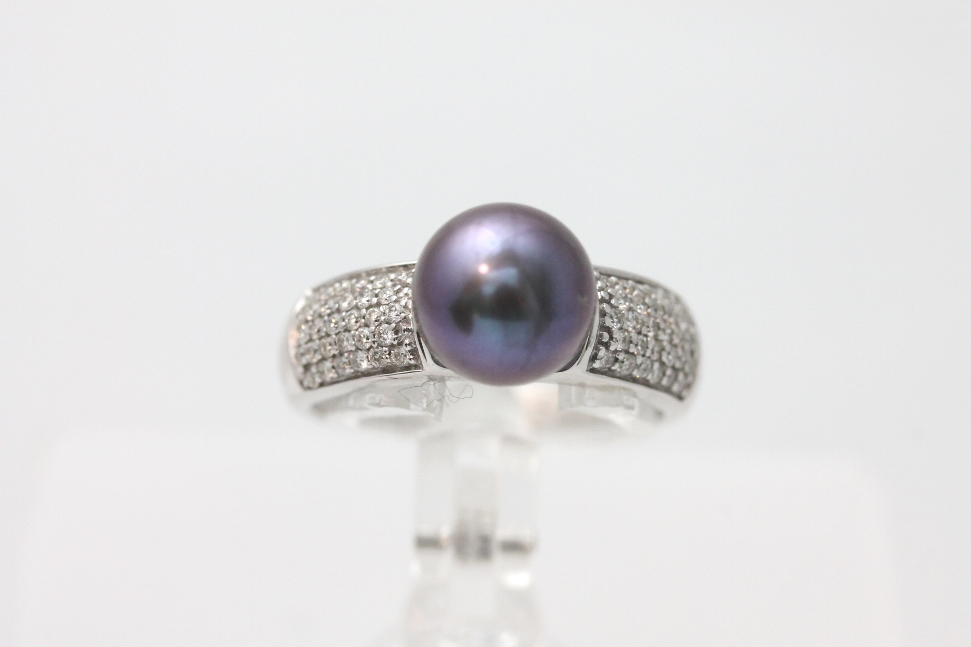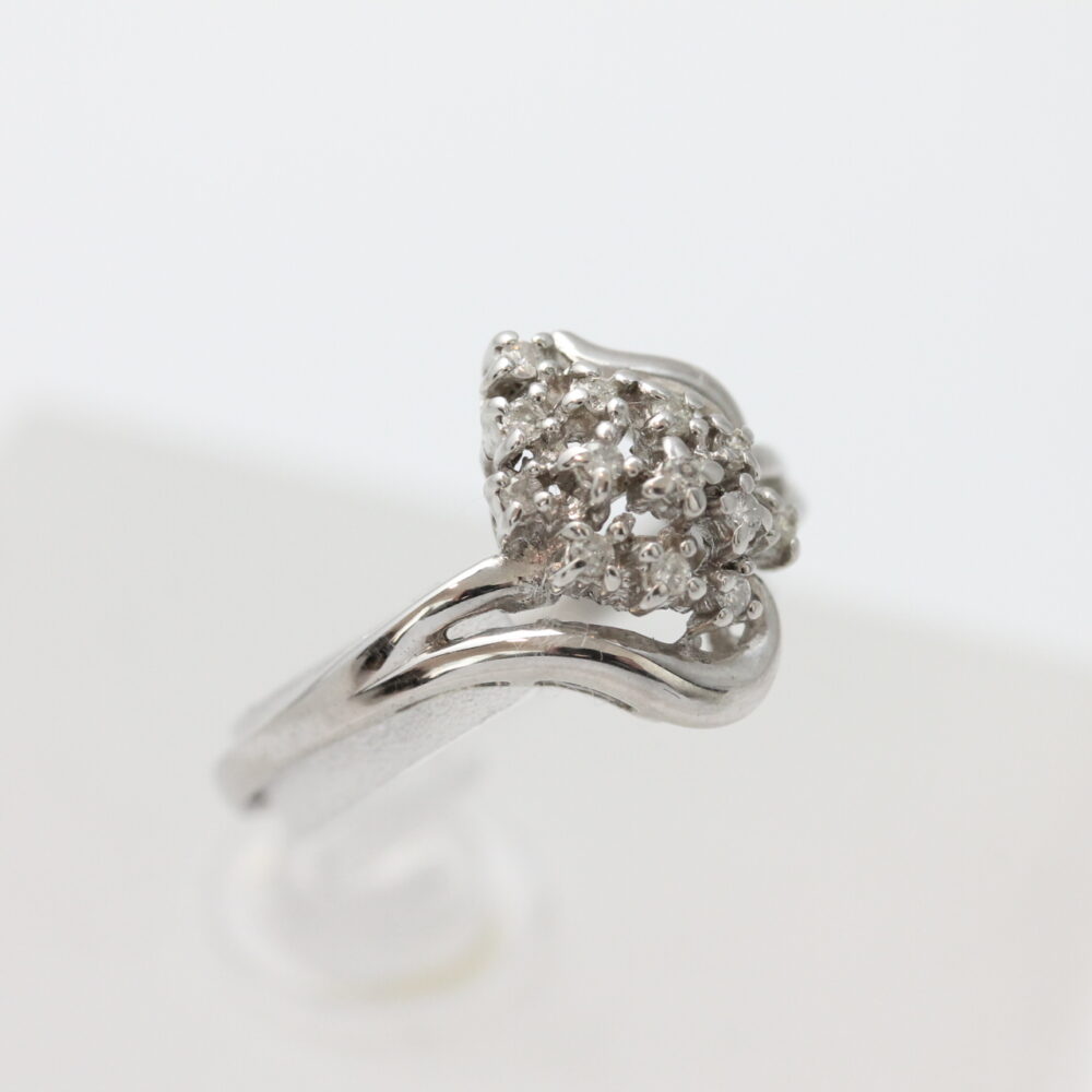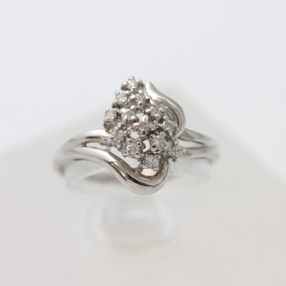 Ring i hvitt gull med diamanter 14kt hvitt gull Ivar T. Holth AS, Oslo største breddemål 14,4 mm totalvekt 2,9