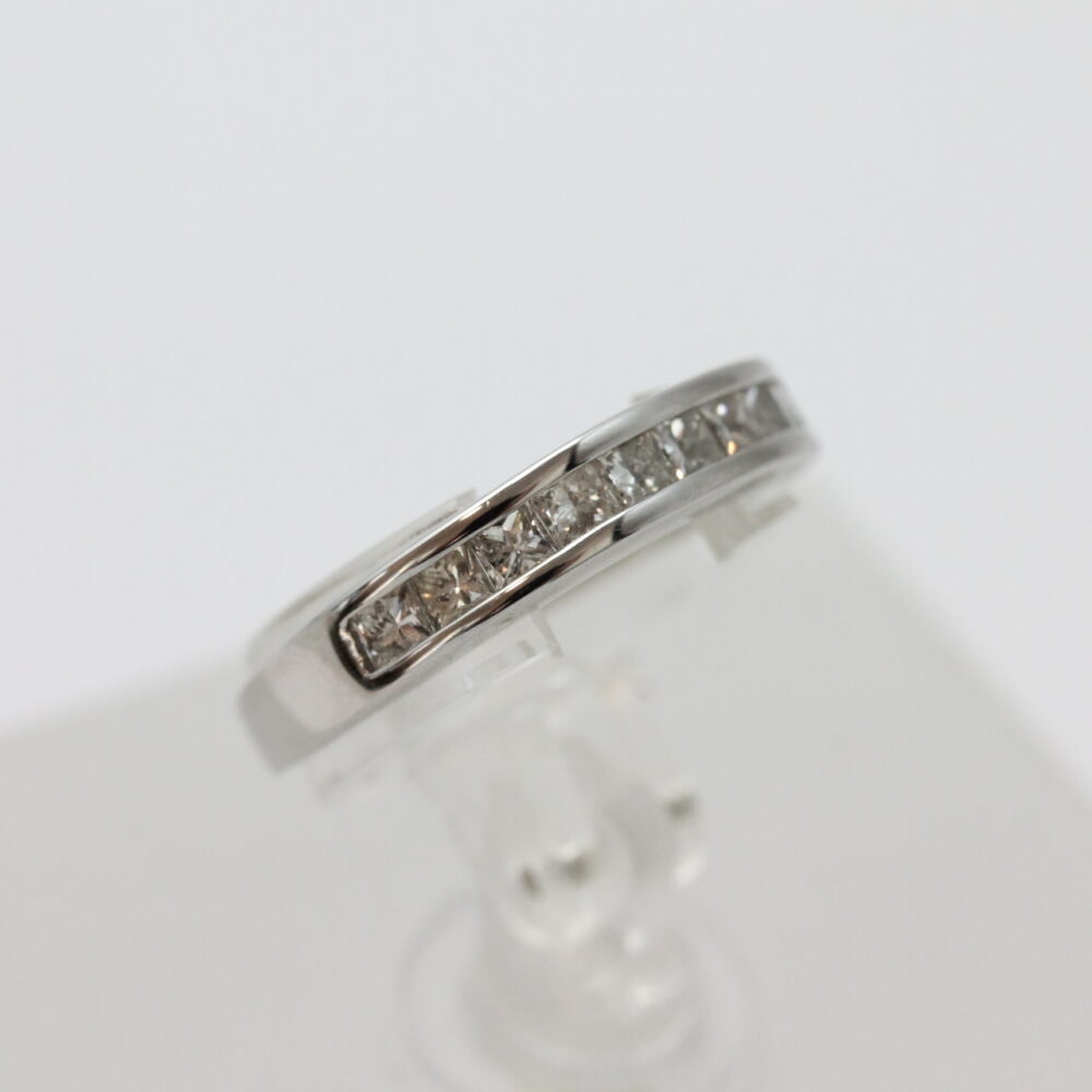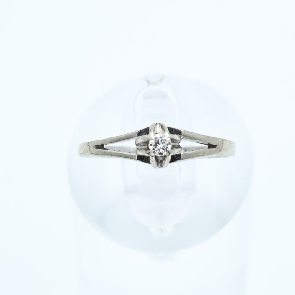 Ring i hvitt gull med diamanter fattet i skinne 18kt hvitt gull største breddemål 3,8 mm totalvekt 3,1 gram estimert
