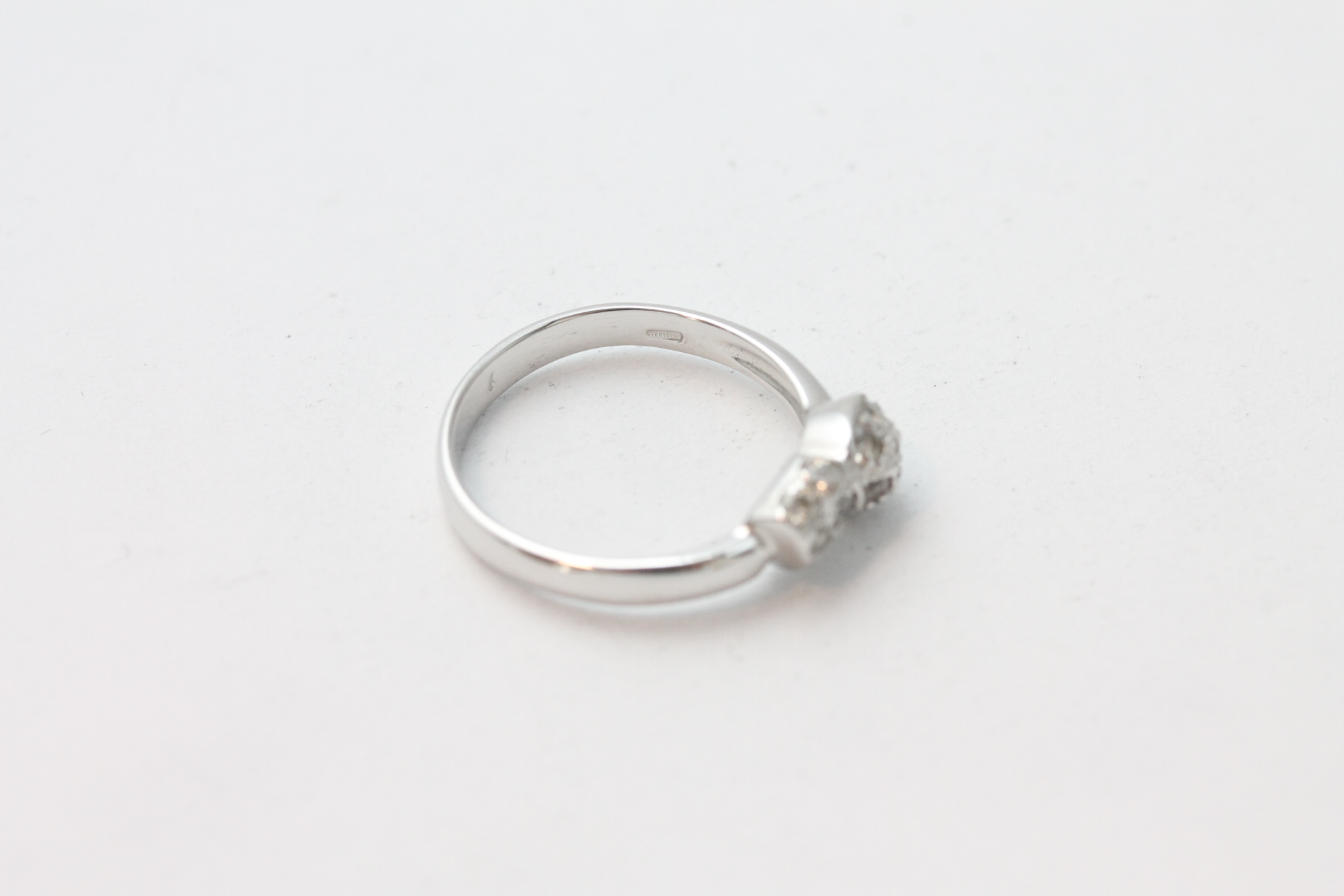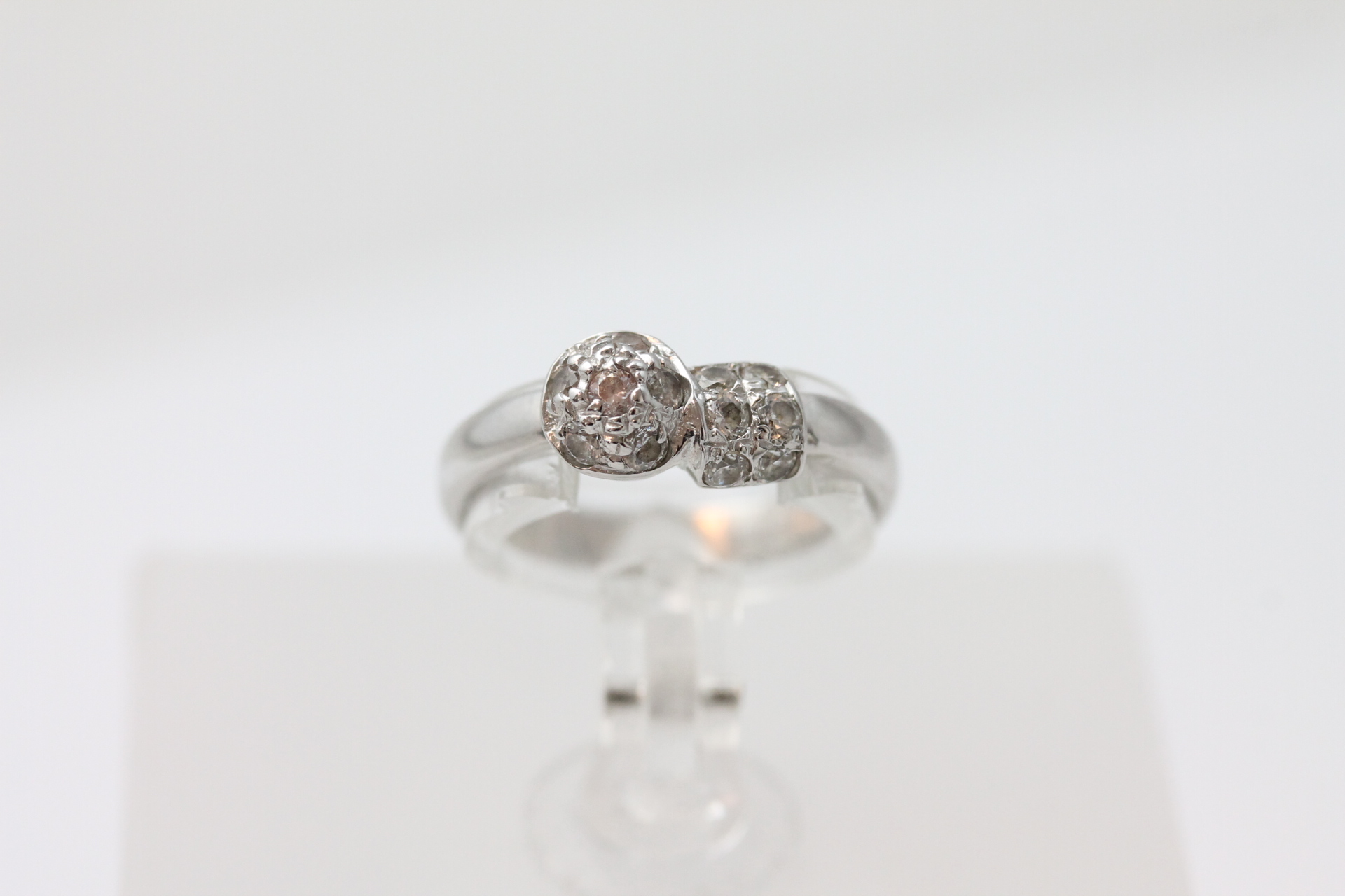 Ring i hvitt gull med diamanter 14kt hvitt gull Ivar T. Holth AS, Oslo største breddemål 14,4 mm totalvekt 2,9