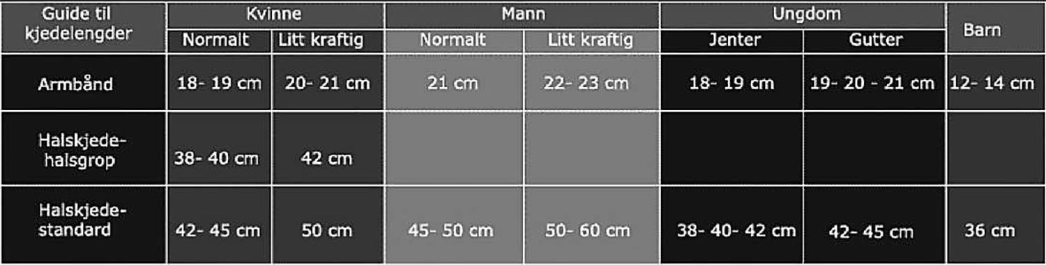 36 cm (standard barn) ,38 cm ,40 cm ,42 cm (standard dame) ,45 cm ,50 cm (standard herre) |