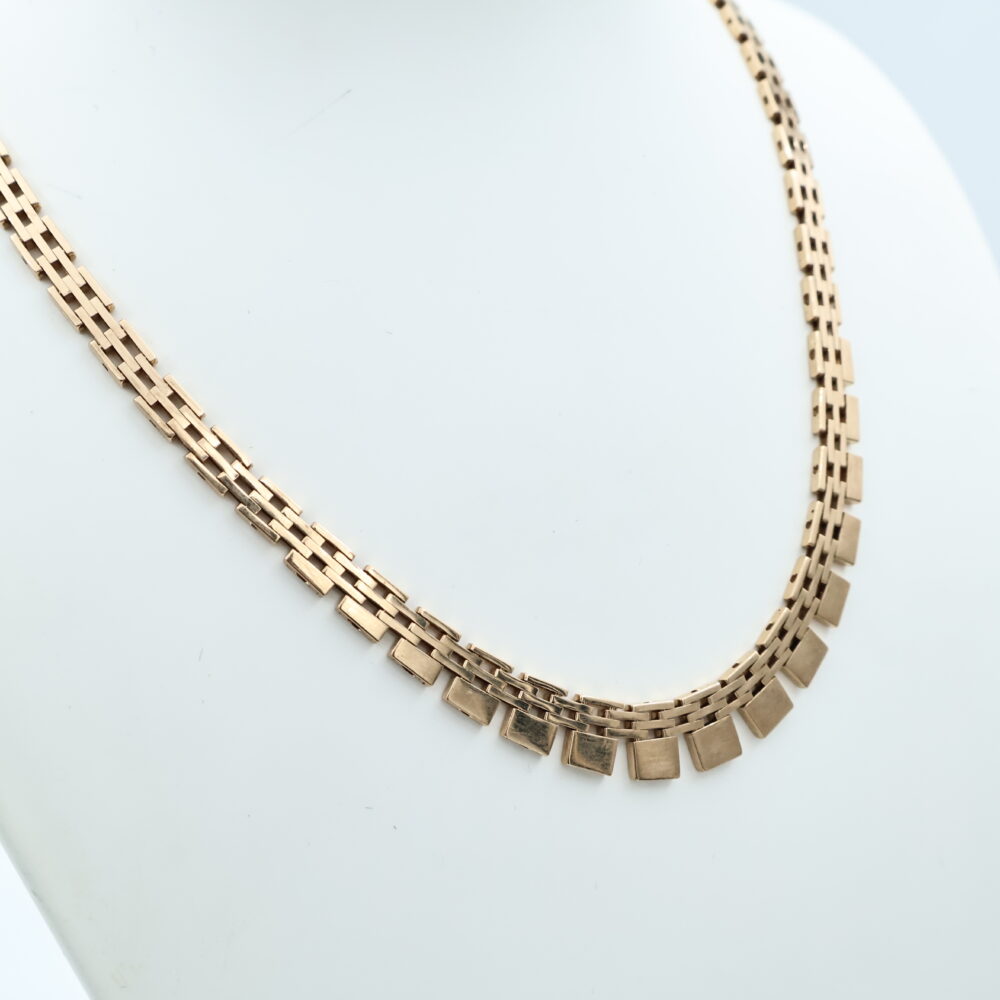 Collier i gult gull 14kt gult gull største breddemål 7.6 mm lengde 42 cm totalvekt 20.2 gram